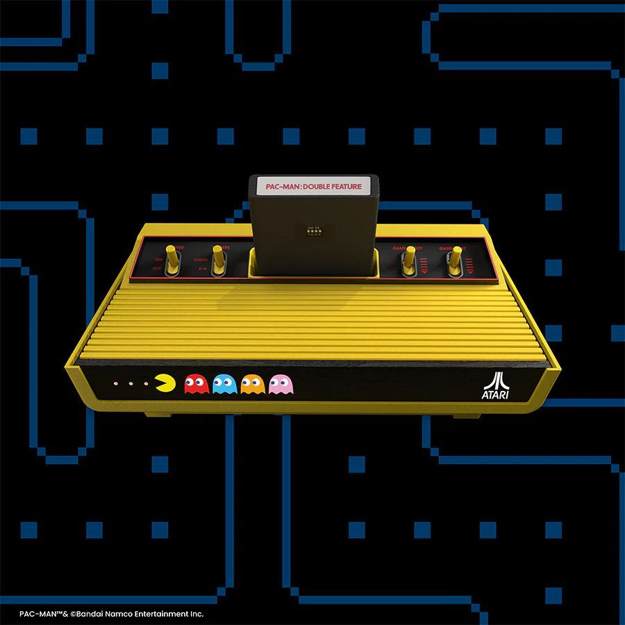 Součástí balení je také nový žlutý bezdrátový joystick CX-40+ ve speciální Pac-Man edici. Atari navíc nabídne i barevné varianty joysticků inspirované duchy Blinky, Pinky, Inky a Clyde, které si hráči mohou dokoupit samostatně. Nechybí ani exkluzivní herní obsah. Do balení se dostává cartridge Pac-Man: Double Feature, která v sobě kombinuje úplně první domácí verzi Pac-Mana pro Atari 2600 z roku 1982 a zcela nově vytvořenou arkádovou variantu pro Atari 7800.