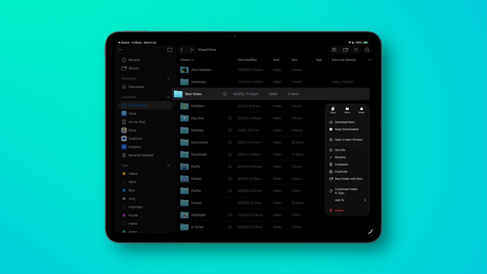 iPad konečně dostává aplikaci Preview, která umožňuje otevírat a upravovat obrázky, dokumenty a další soubory, a to s podporou Apple Pencil. Files se zase posouvá blíže Finderu. Nabízí nový listový pohled, rozbalovací složky, možnost změnit výchozí aplikaci pro jednotlivé typy souborů i přidávání složek přímo do Docku. Ty pak lze zobrazit v módu mřížky nebo „vějíře“.