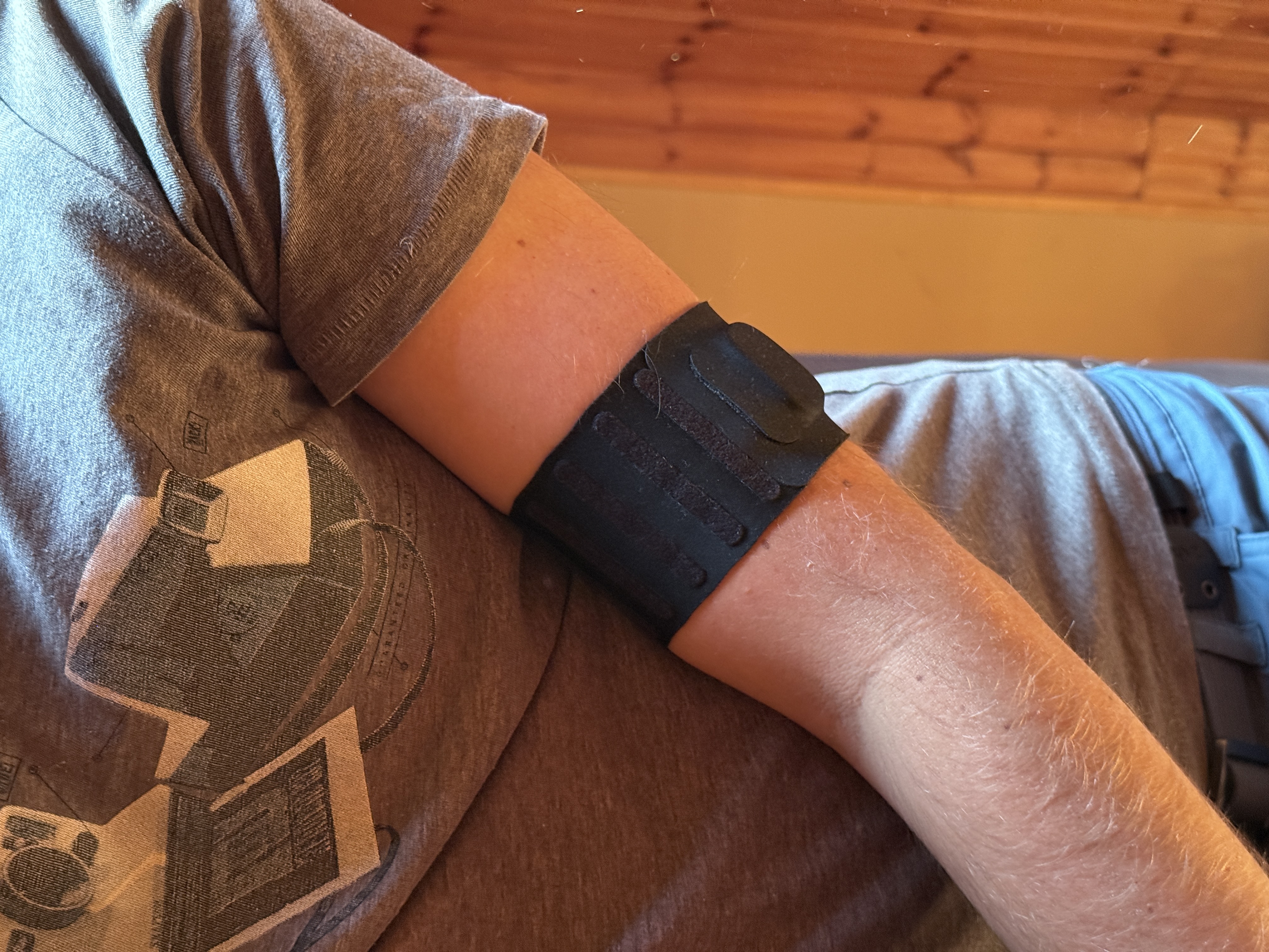 Na výběr jsou dvě velikosti podle průměru vašeho bicepsu. Volba velikosti nemusí být nijak složitá. Pokud nemáte nijak vypracované svaly, stačí vám velikost S-M, protože i tak má poměrně velký přesah v délce. Je to i varianta, kterou jsem s obvodem 27 cm volil já pro test (menší velikost má 32,6 cm, větší 45,2 cm). V balení máte i zobrazeno, jak si monitor na noc „obléct“. Technicky vzato ale může měřit spánek kdekoli, takže klidně na kotníku, jen právě na horní části paže to má být nejpřesnější.