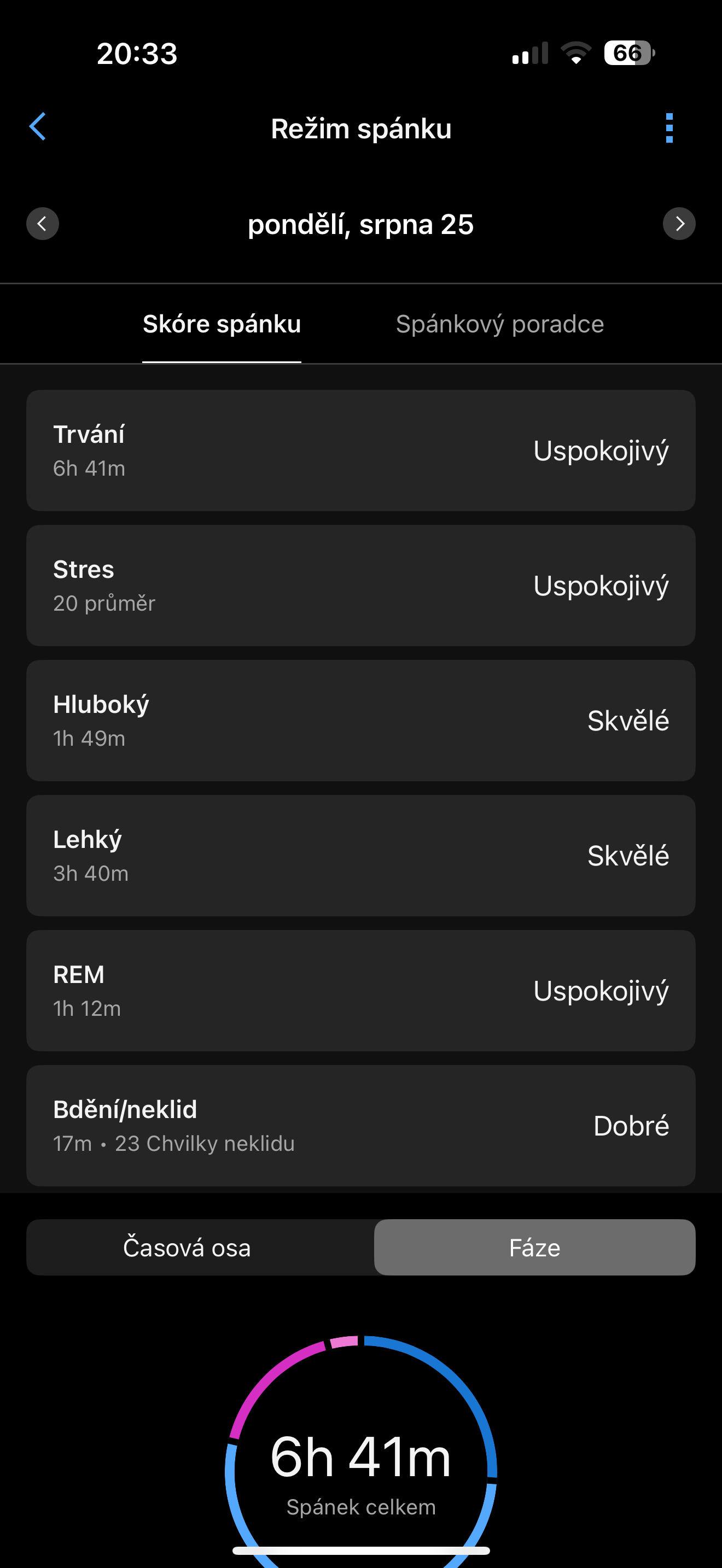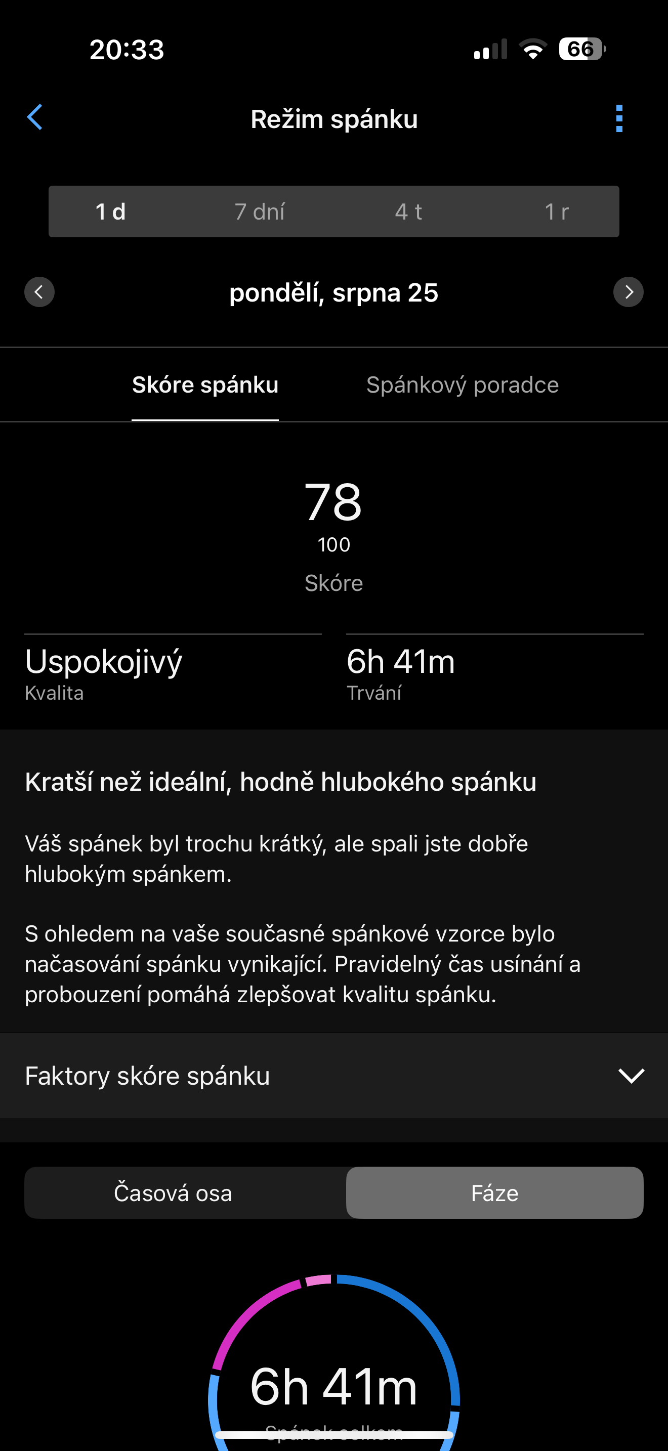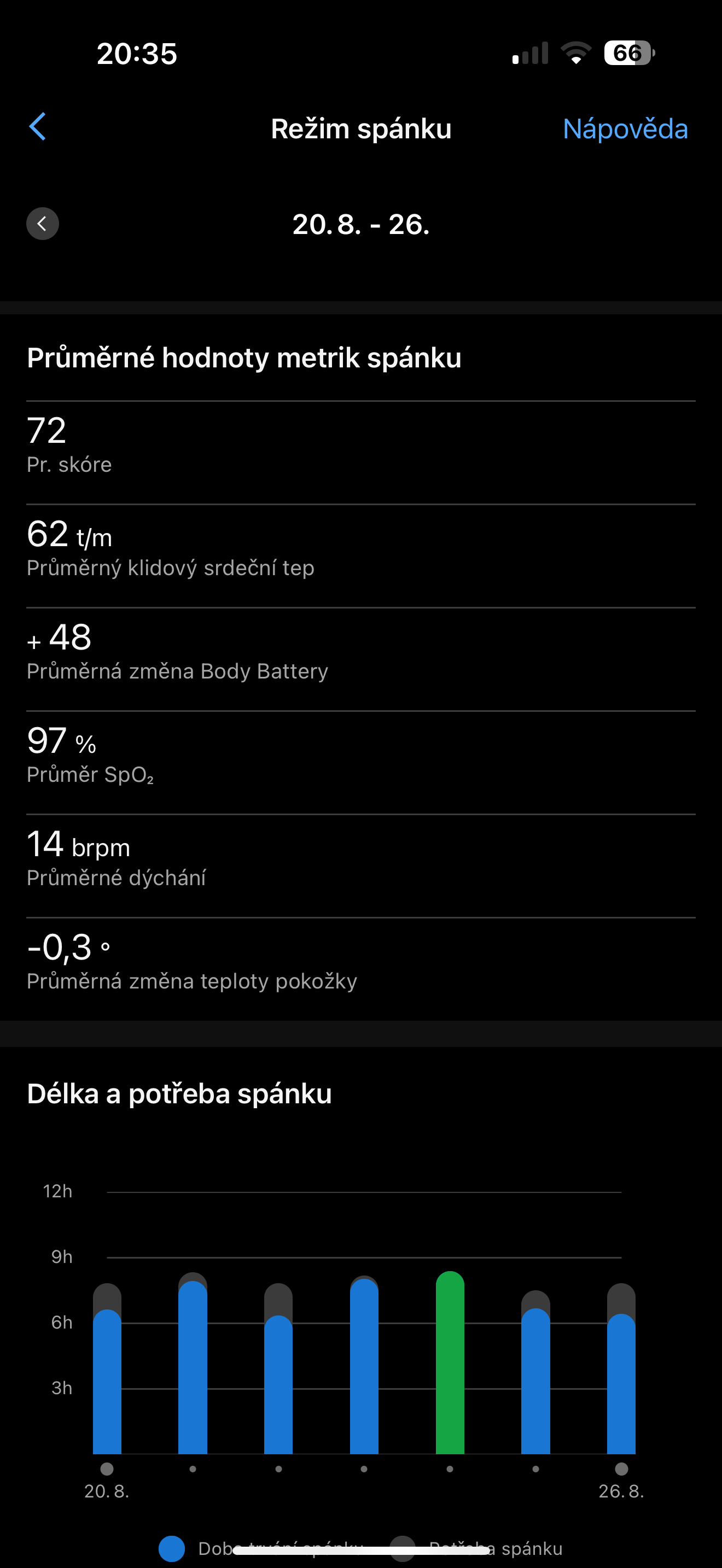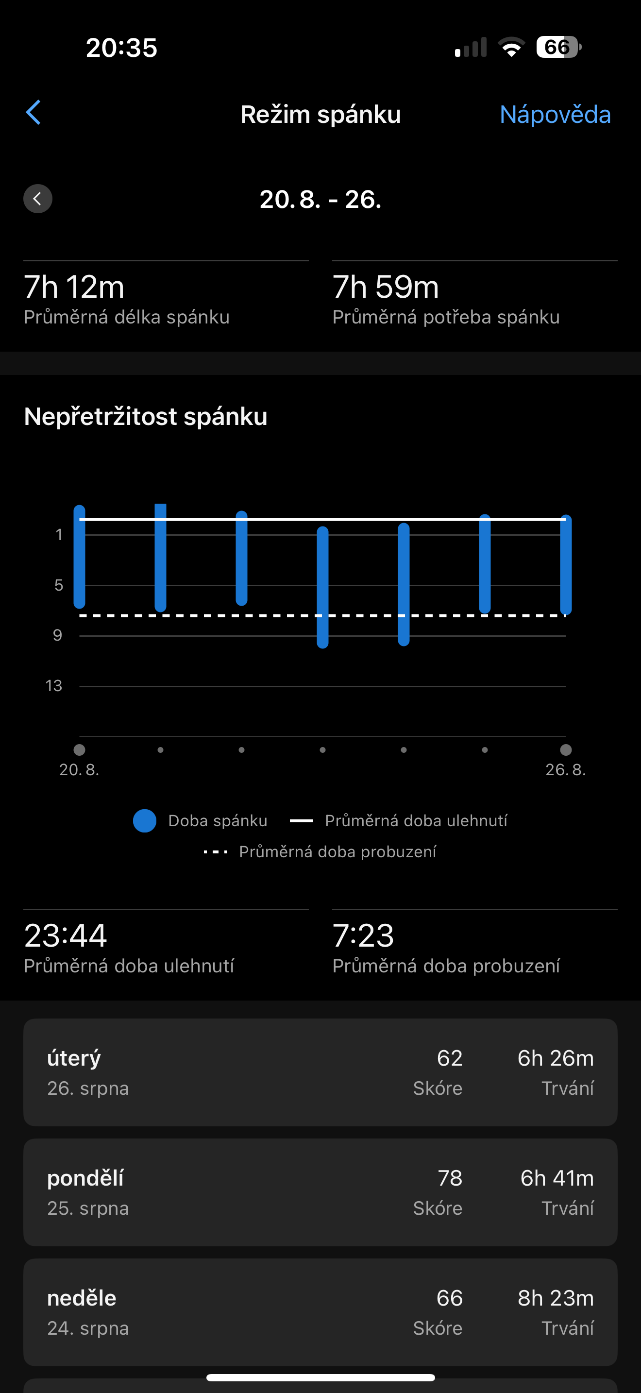 Můžete si toho všimnout, když stihnete přečíst ranní zprávu dřív, než se mezi sebou zařízení propojí. Zajímavé je, že Monitor mi při zkoušení spaní i s hodinkami na ruce naměřil vždy vyšší hodnoty. To přisuzuji jednoduše tomu, že si hodinky na noc na zápěstí povoluji, aby se mi v nich pohodlněji spalo, a proto nejsou naměřené hodnoty tak přesné.