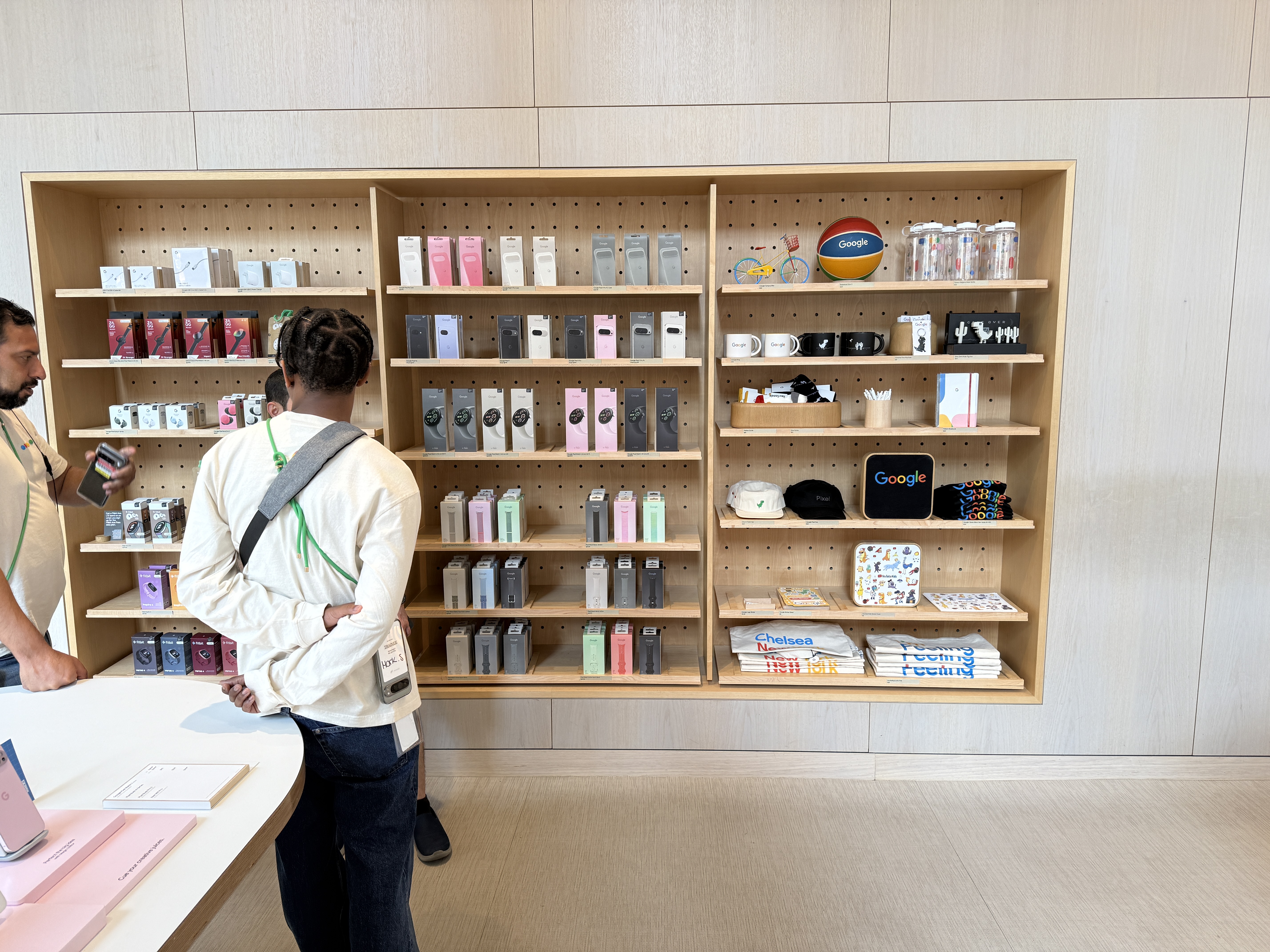 Na co jsem se osobně těšil nejvíc je merch, který na rozdíl od Applu nabízí Google přímo ve svých obchodech. Bohužel oproti online shopu, kde najdete stovky produktů, jsem si nakonec odnesl hrníček a tím to končilo. Miniatura ikonického kola byla sice cool, ale převážet ji do Evropy bylo celkem riskantní vzhledem k balení. Kvalita triček byla taková, že nevěřím, že by přežilo jedno praní a zbytek věcí mně nějak nezaujal. Jediné po čem jsem ještě sáhl jsou nálepky, kterými jsme ozdobil MacBook. Pokud tedy chcete merch od Google, je rozhodně lepší koupit jej online z jejich oficiálního eshopu, než spoléhat na to, že jej najdete v prodejně. Pokud budete poblíž, stojí Google Store za návštěvu, ovšem jet za ním přes půl města se vyplatí jen v případě, kdy si zde chcete něco koupit, za mě to rozhodně není podobný zážitek jako Apple Store a to bez ohledu na to, jaké značky jste fanoušek.