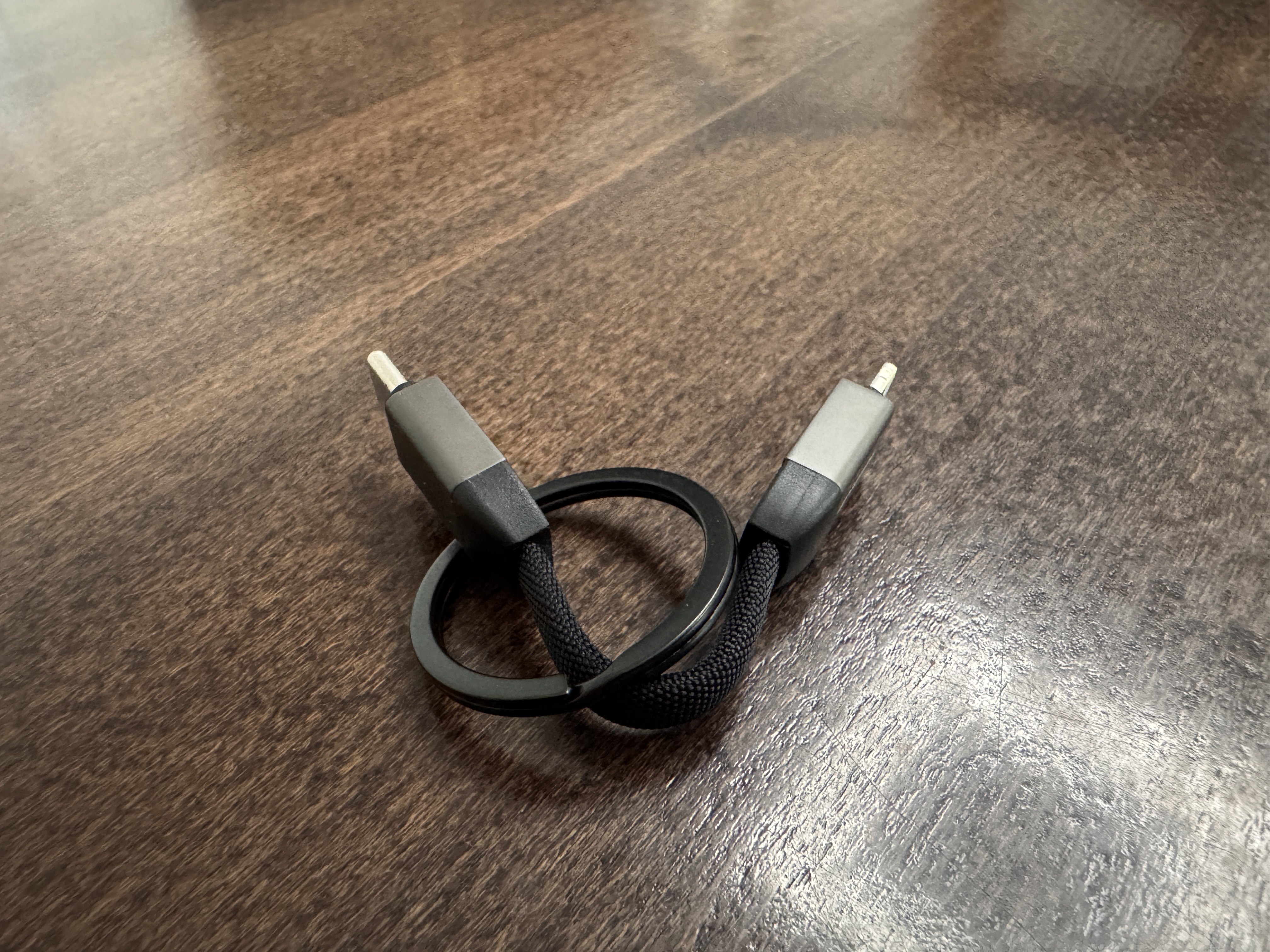 Klíčovým prvkem jsou dva neodymové magnety ukryté v koncovkách. Jakmile se k sobě přiblíží, spojí se do kompaktní smyčky, kterou jednoduše nacvaknete na kroužek s klíči nebo připnete ke karabině batohu. Spoj drží překvapivě pevně a při běžném nošení v kapse se kabel rozhodně nerozpojí, ale zároveň jej bez námahy odpojíte jednou rukou, když potřebujete telefon připojit k nabíječce.