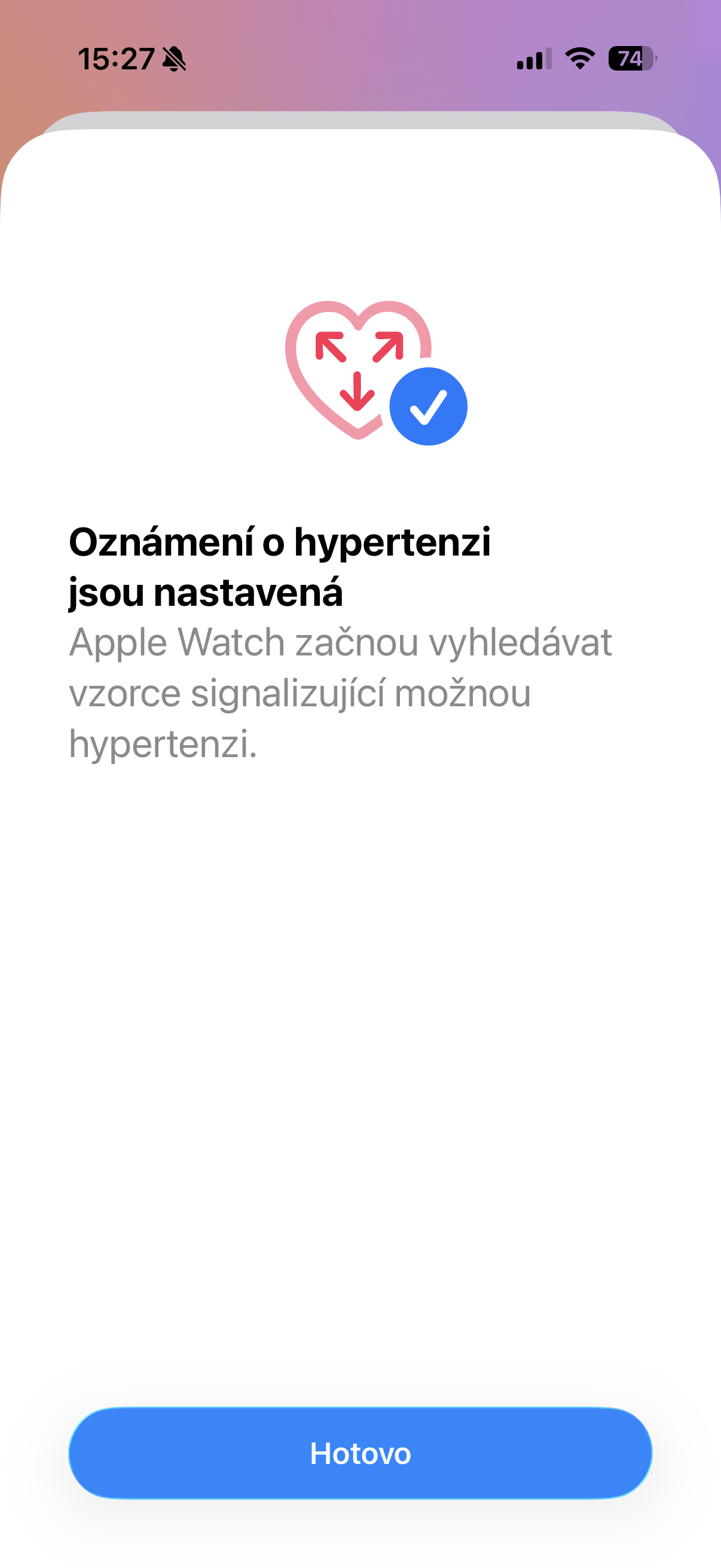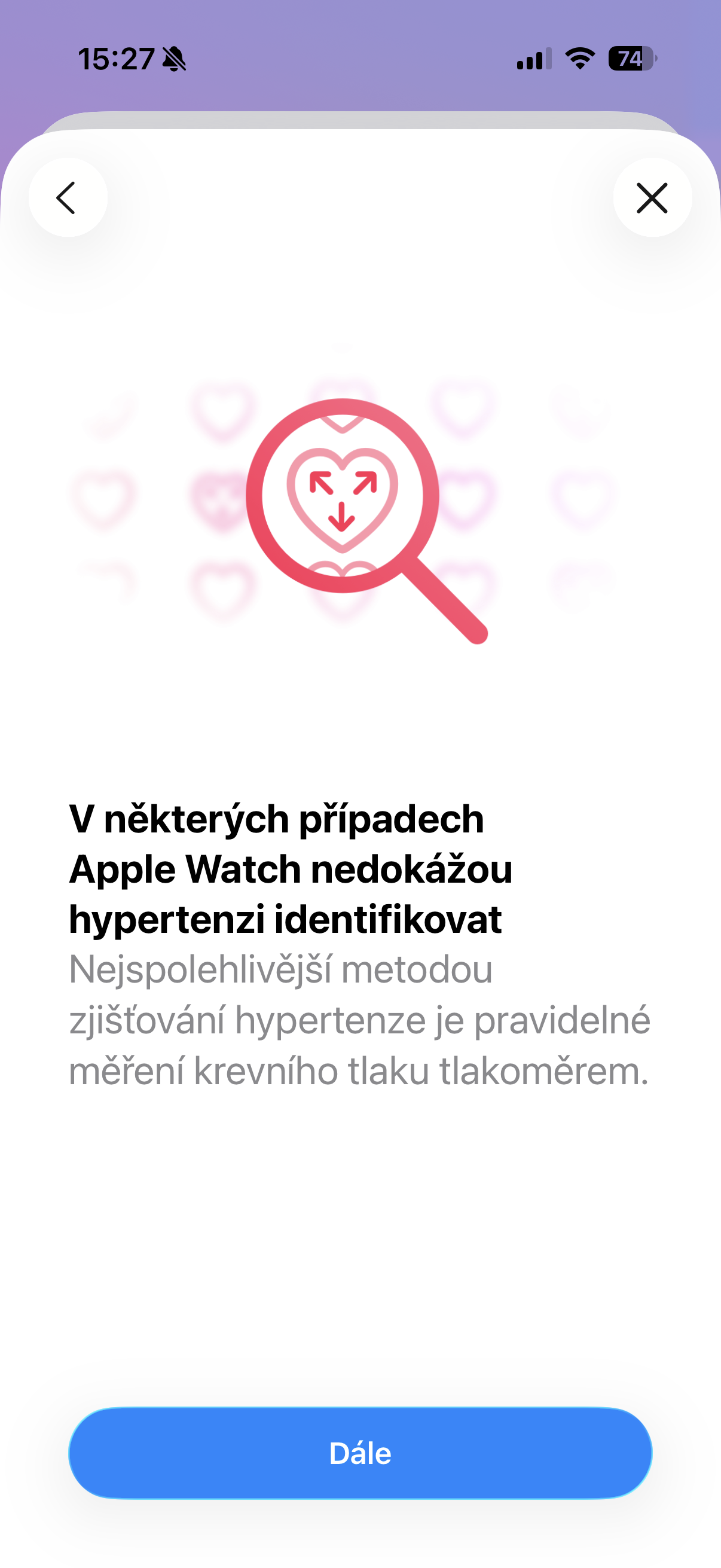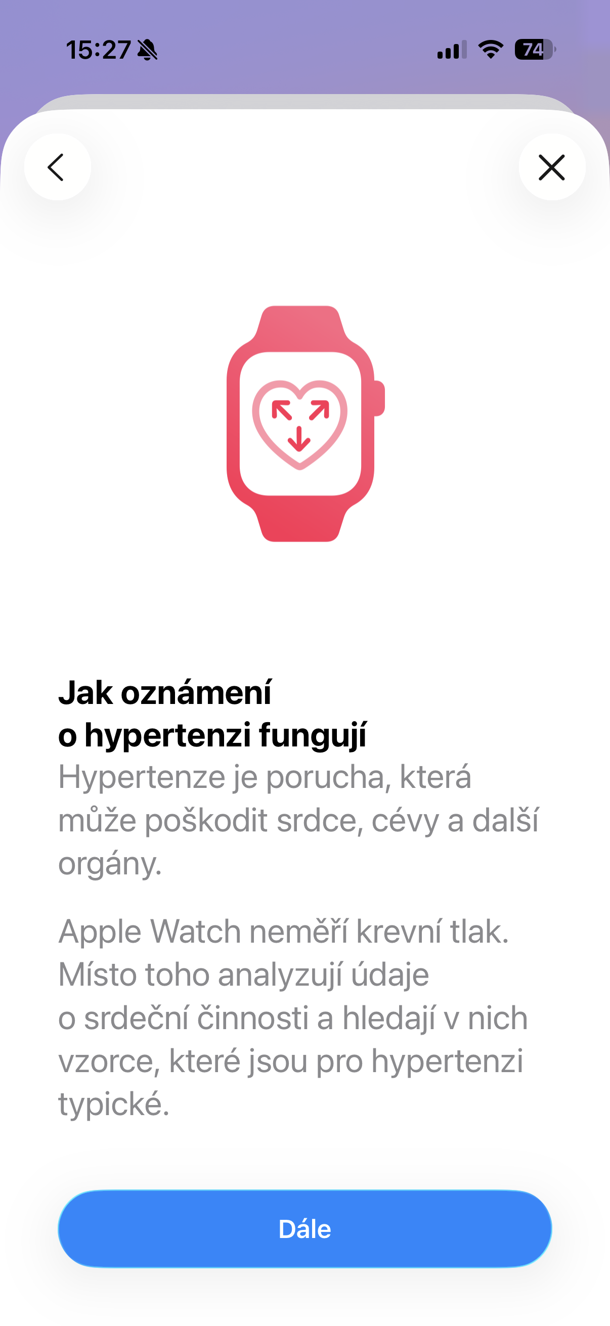 Princip fungování je poměrně jednoduchý. Jakmile si v aplikaci Zdraví na iPhonu zapnete upozornění na hypertenzi, začnou se shromažďovat data potřebná k vyhodnocení. Funkce vyžaduje minimálně 30 dní kontinuálních záznamů. Pokud během této doby Apple Watch vyhodnotí známky hypertenze, zobrazí se vám upozornění. Jde tak o dlouhodobou analýzu, která nehodnotí jednorázové výkyvy, ale až trend opakovaně zvýšených hodnot.