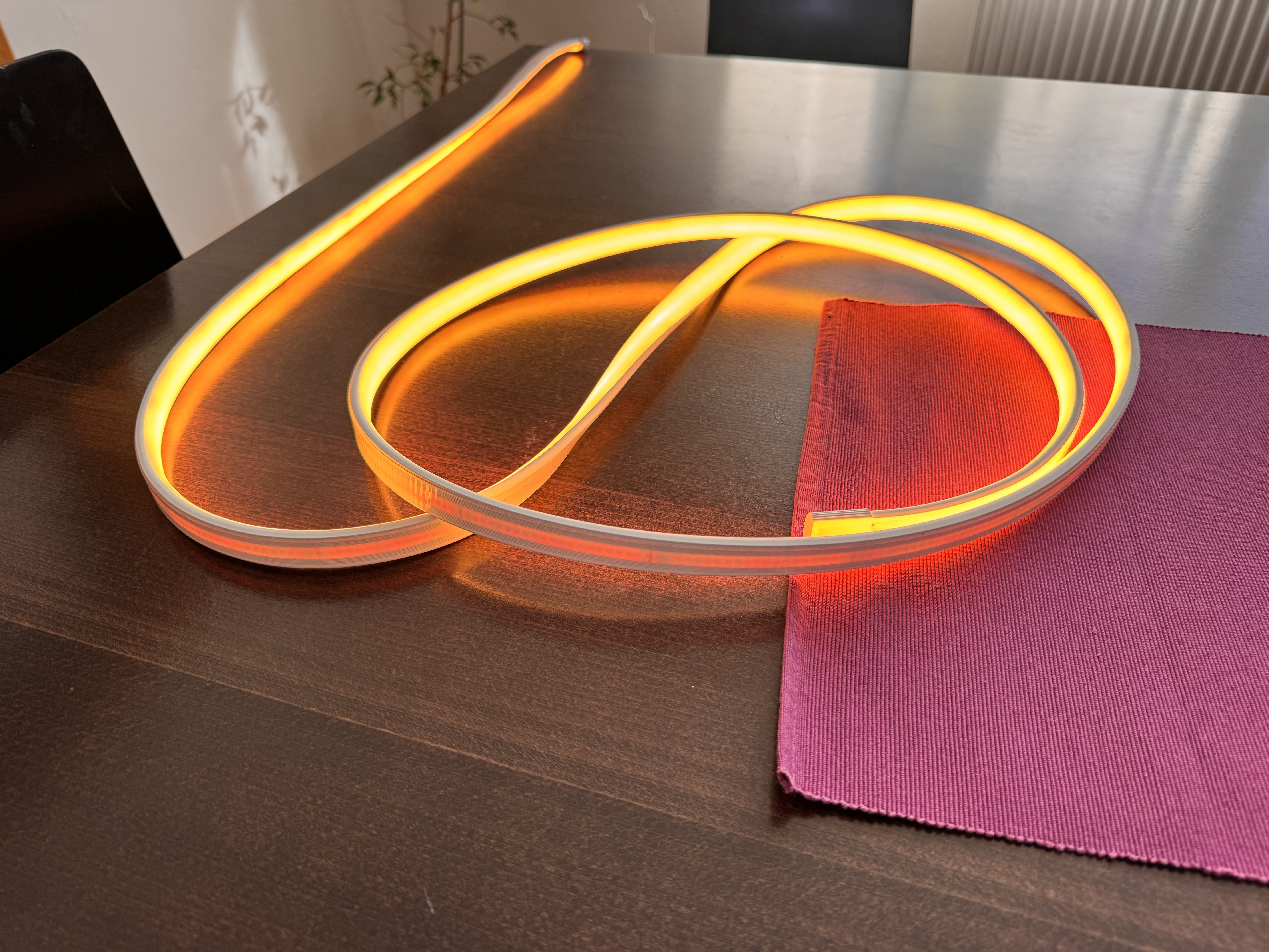 Největší a nejviditelnější inovací tohoto pásku je využití technologie COB (Chip on Board). Na rozdíl od klasických SMD LED pásků, kde jsou jednotlivé diody viditelně rozmístěny po délce pásku a vytvářejí tak typický „tečkovaný“ efekt, technologie COB integruje miniaturní LED čipy přímo na flexibilní desku plošných spojů a překrývá je souvislou vrstvou luminoforu. Výsledkem je dokonale homogenní, nepřerušovaná světelná linie, která připomíná spíše neonovou trubici než tradiční LED pásek.