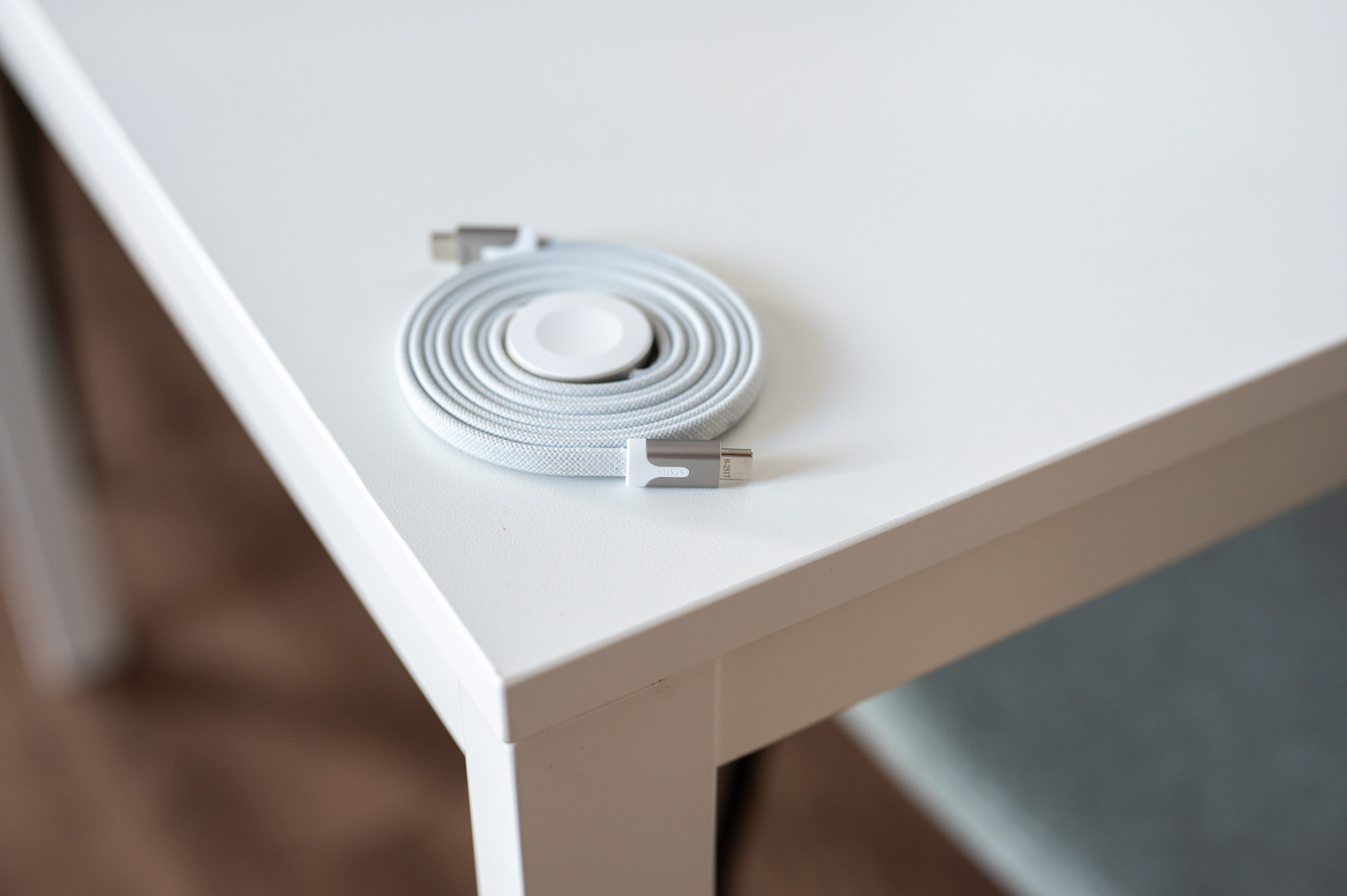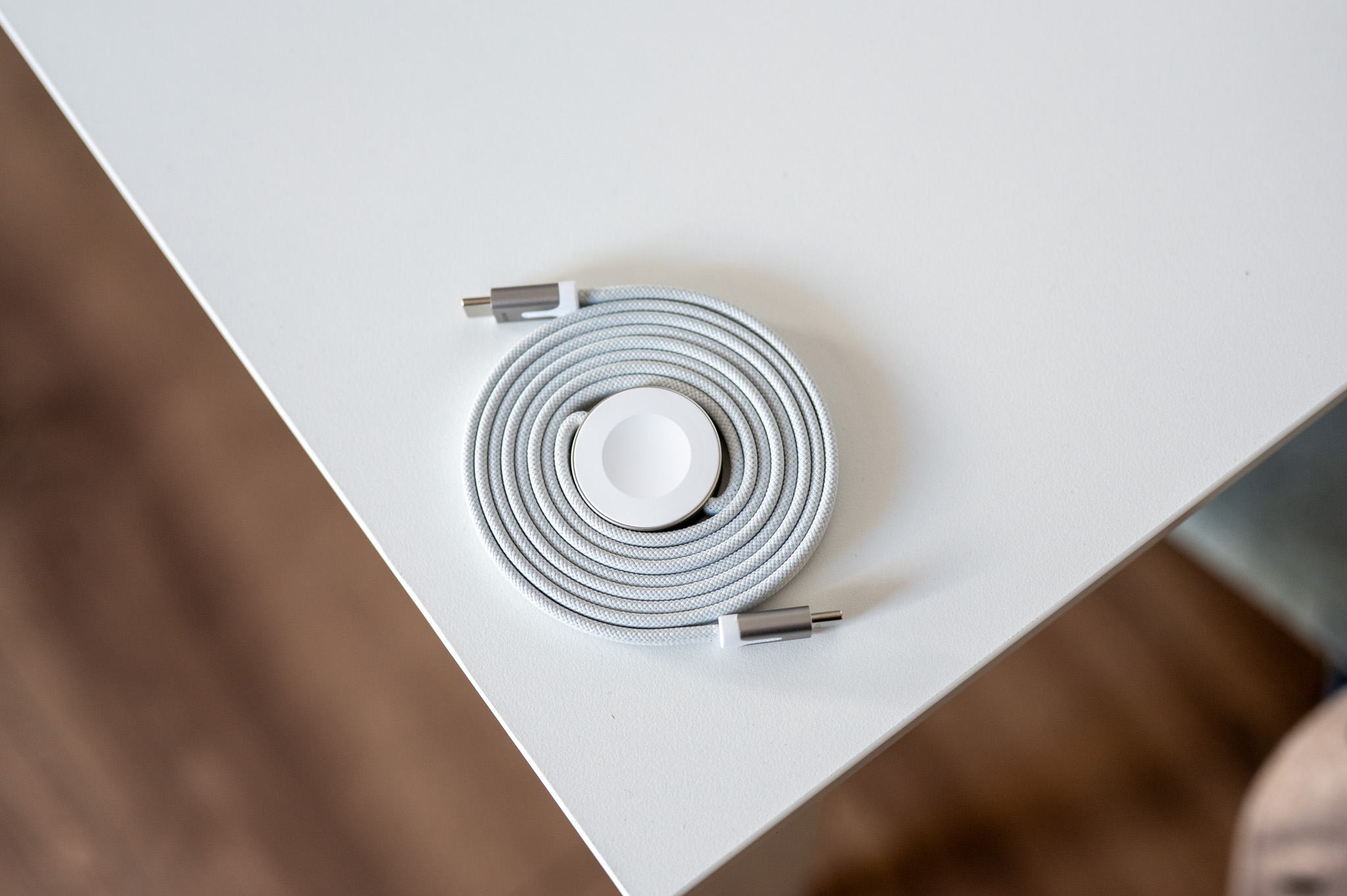 Nejvíce mě zaujala magnetická organizace kabelu. Kabel se sám pevně obtočí kolem těla nabíječky Apple Watch, čímž vznikne dokonale úhledný a přehledný kus, ze kterého nic „neplandá“ ani netrčí. Patentovaný systém eliminující zamotané kabely funguje zkrátka dobře a po týdnech používání jsem nezaznamenal jediný okamžik, kdy by se kabel nechtěl vrátit na své místo. Ano, je to svým způsobem drobnost, ale pro každodenní používání zásadní. Konečně se totiž nemusíte pokaždé zdržovat rozmotáváním zamotaného kabelu z tašky.