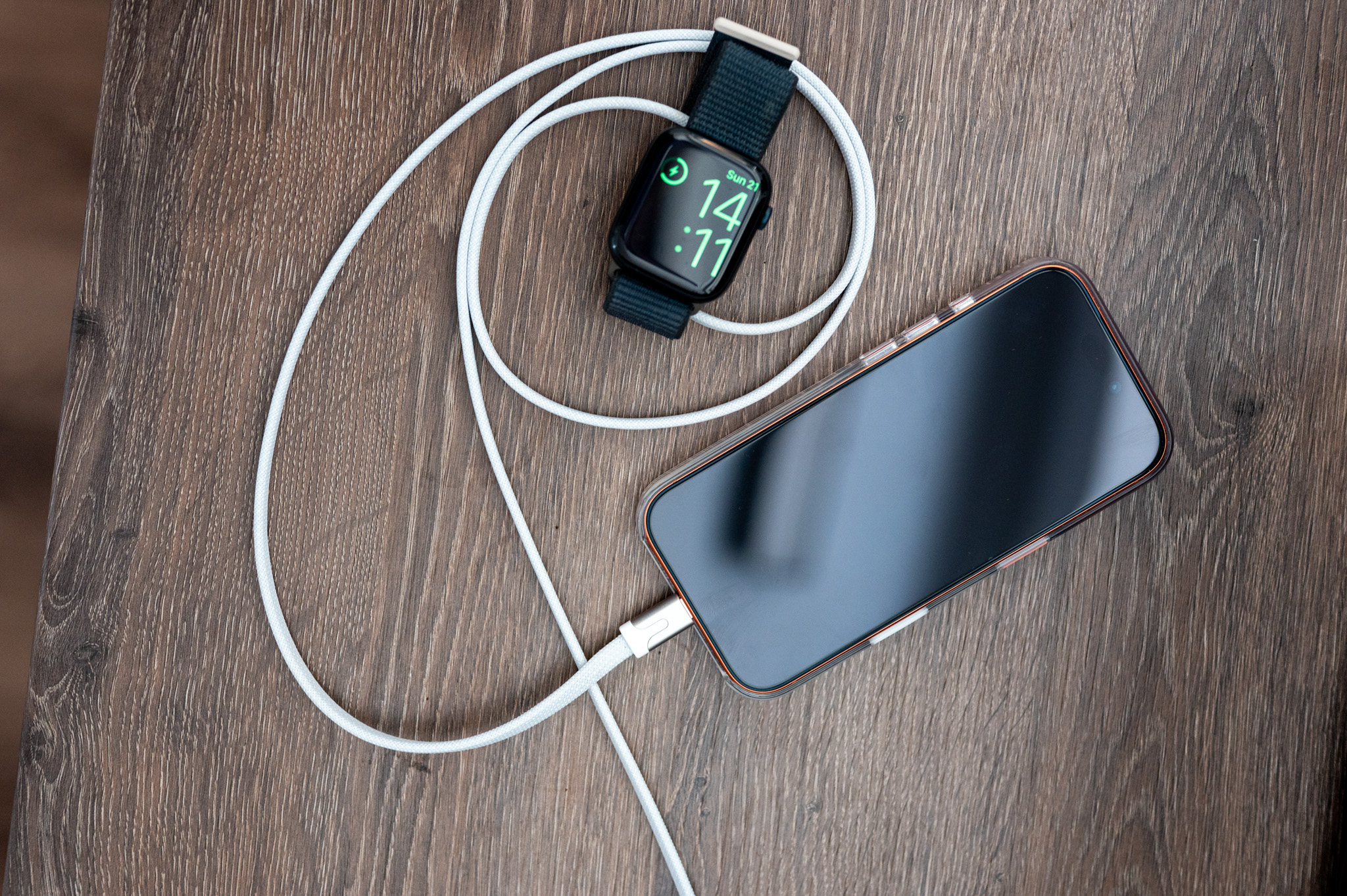 To nejdůležitější na každém nabíjecím kabelu je samozřejmě nabíjení a to je v tomto případě naštěstí rychlé a spolehlivé. Kabel USB-C na USB-C o délce 1,5 metru nabízí výkon až 60 W, takže telefon, tablet, notebook nebo powerbanku nabijete během chvilky (samozřejmě při využití vhodného adaptéru), a to i v případě, že se zrovna chystáte na cestu. Současně vestavěná bezdrátová nabíječka pro Apple Watch poskytuje stabilní 5 W výkon a je kompatibilní se všemi modely od Series 1 po Ultra 3, včetně SE a AirPods Pro 3. To znamená, že není třeba žádných dalších adaptérů, a vaše hodinky se vždy nabijí rychle a bezpečně. A protože je 5W výkon dostatečný pro rychlonabíjení Apple Watch, u novějších modelů si užijete skutečně bleskové nabití. Konkrétně u Series 10 a 11 je to 80 % baterie za 30 minut, u Series 9 pak 80 % baterie za 45 minut.