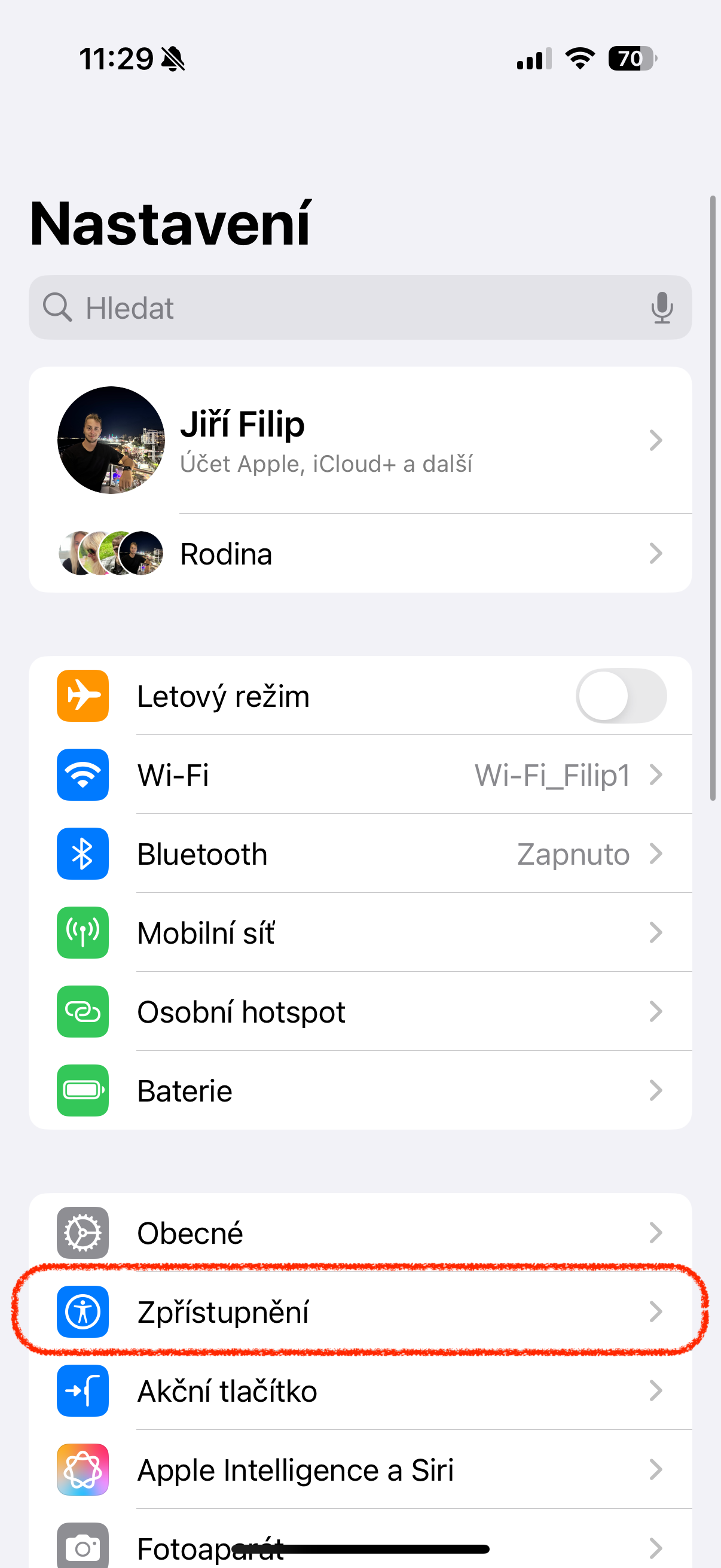 Abyste si pak mohli displej kdykoliv přepnout do ještě nižšího jasu, je třeba přidat do Ovládacího centra telefonu ikonku, která právě možnost snížení bílého bodu zaktivuje a to v nastavení, které si vy navolíte ve Zpřístupnění. Pro přidání ikonky pro snížení minimálního jasu stačí: