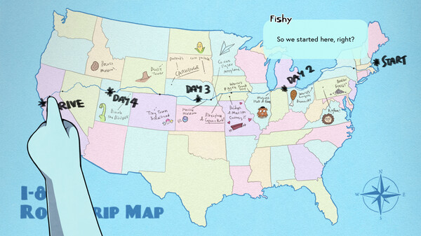 Road Trip to the End of the World je vizuální novela, která propojuje melancholii s nadsázkou a nabízí hráčům intimní cestu na pomezí reality a fantazie. Hlavní postava Andy se vydává na poslední dobrodružství po boku svého imaginárního kamaráda Fishyho, aby překazila svatbu bývalé nejlepší přítelkyně. Cesta autem se postupně mění v niternou výpravu do vzpomínek, bolestí i nevyřčených emocí, které formovaly Andyin život. Hra staví na silném příběhu o loučení a smíření, ale zároveň jej odlehčuje zvláštním humorem a originální stylizací, díky čemuž působí osobitě a autenticky.
