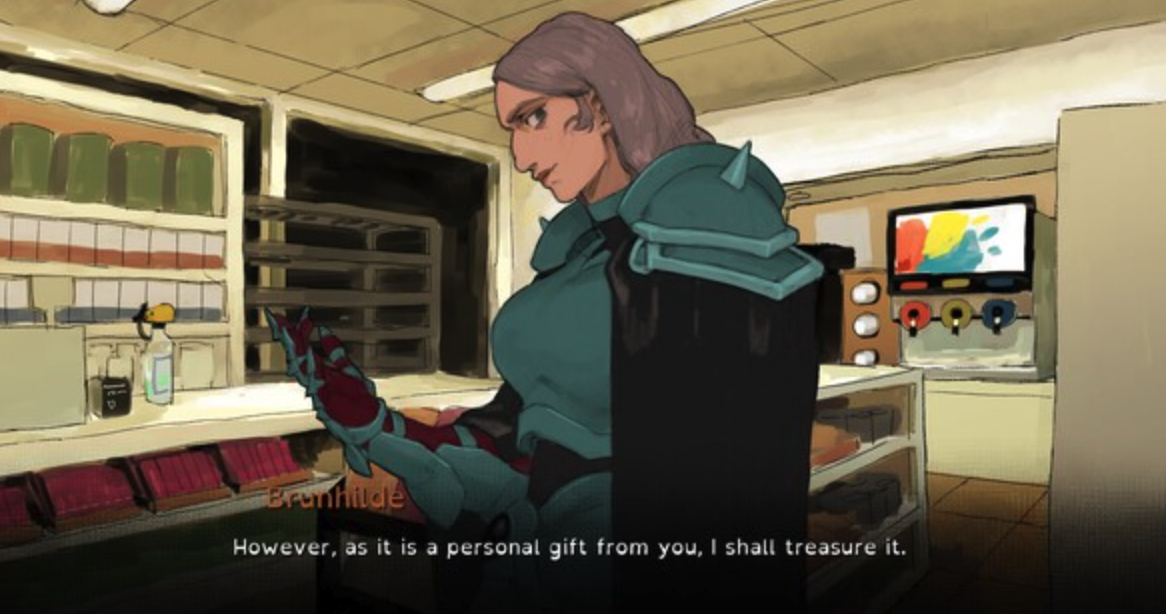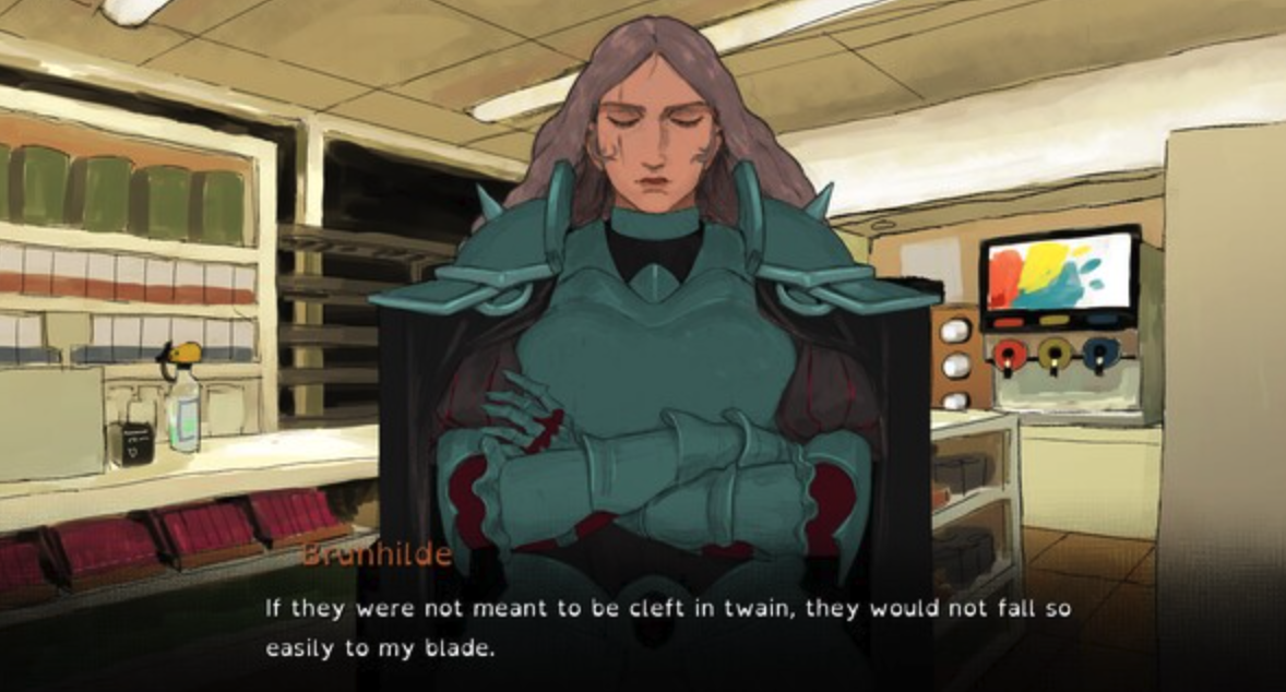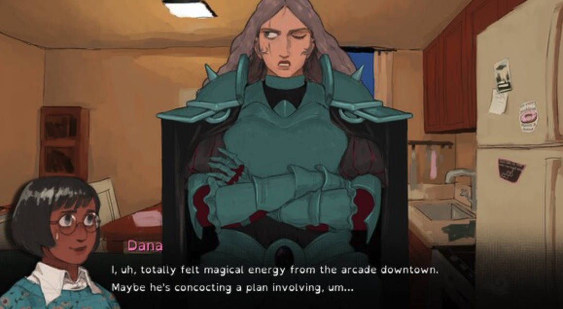 Taking my Dark Knight Girlfriend to the Corner Store je netradiční vizuální novela s humorným nádechem, která propojuje romantiku s prvky fantasy. Hlavní hrdina se ocitá ve zvláštní situaci – temná rytířka z jiného světa ho pověří úkolem pomoci jí porazit odpadlického kouzelníka, avšak během cesty se z nečekaného spojenectví vyvine partnerský vztah. Problém nastává ve chvíli, kdy vyjde najevo, že protagonista vůbec netuší, kdo onen Šedý čaroděj vlastně je. Hra tak originálně kombinuje komediální zápletku, romantické linky i napětí vyplývající z fantasy dobrodružství.