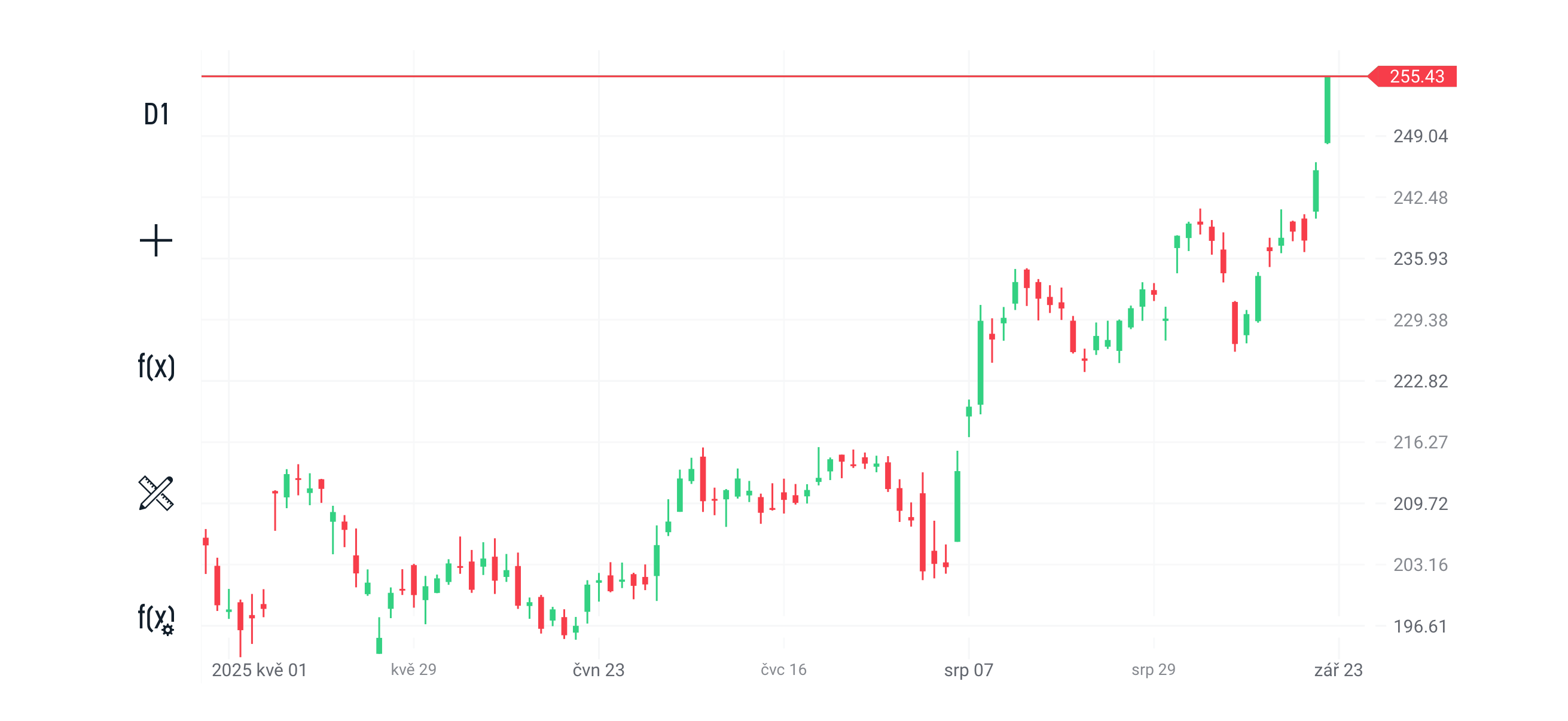 Trhy posilují zejména kvůli tomu, že se Applu daří prodávat iPhone 17, alespoň podle analytiků. To těší akcionáře z toho důvodu, že zatím co prodeje vlajkové lodi Applu byly vždy vynikající, tak u modelů střední třídy se mu dlouhé roky nedařilo bodovat až tak, jak letos. Uvidíme, na jakém výsledku nakonec akcie uzavřou obchodování v dnešní den a kam se podívají v příštích dnech nebo týdnech. Očekává se také, že se Apple pochlubí výsledky prodejů za první prodejní víkend, což by mohlo v případě pozitivních výsledků zvýšit cenu akcií ještě výraznějším způsobem.