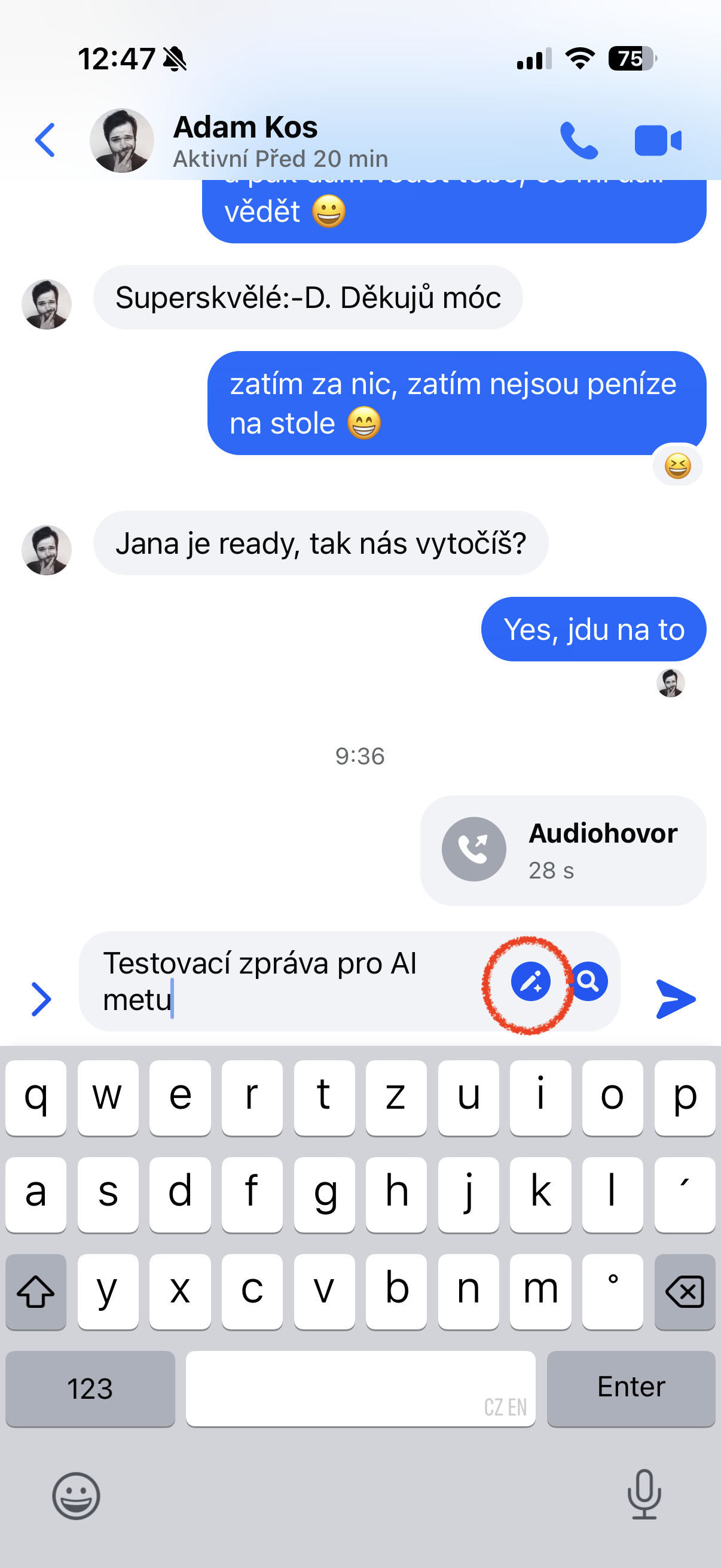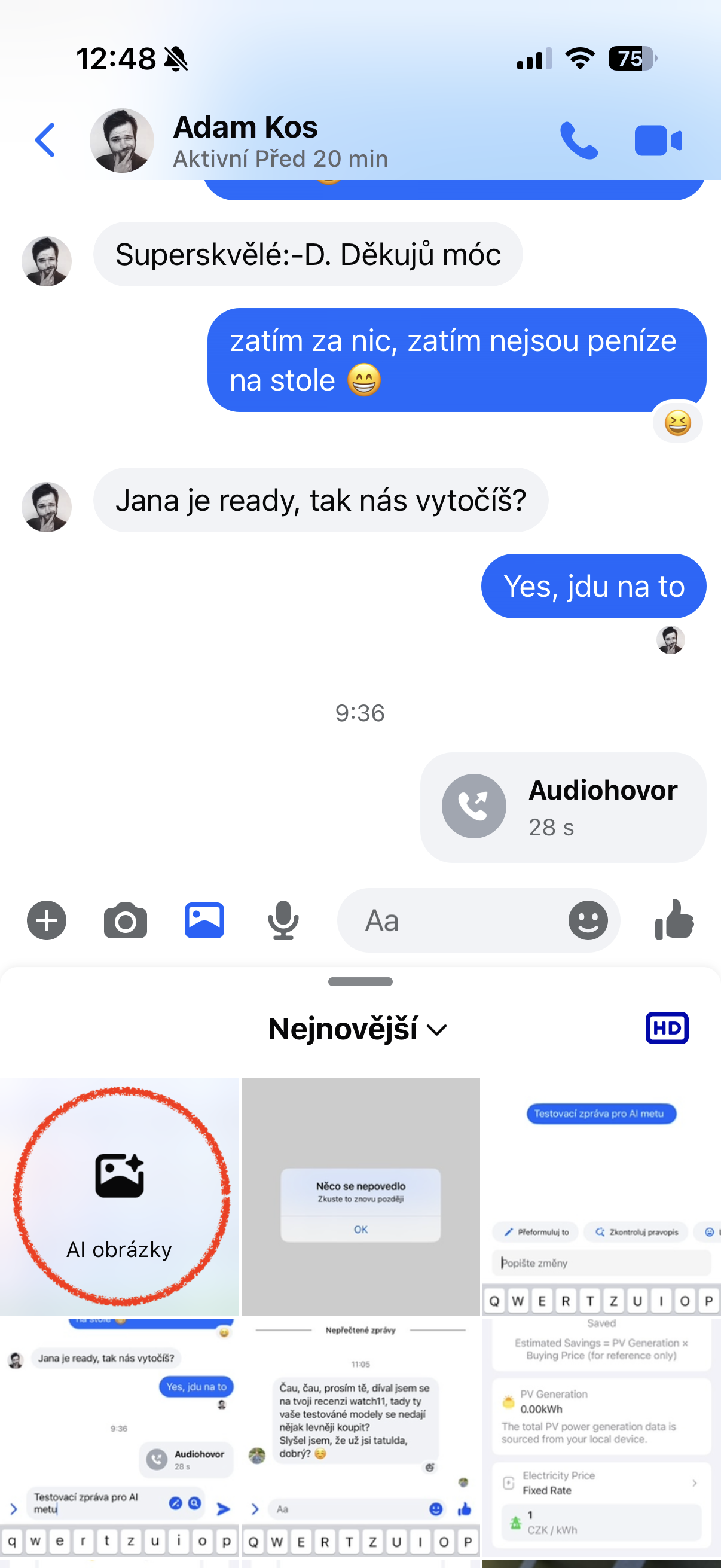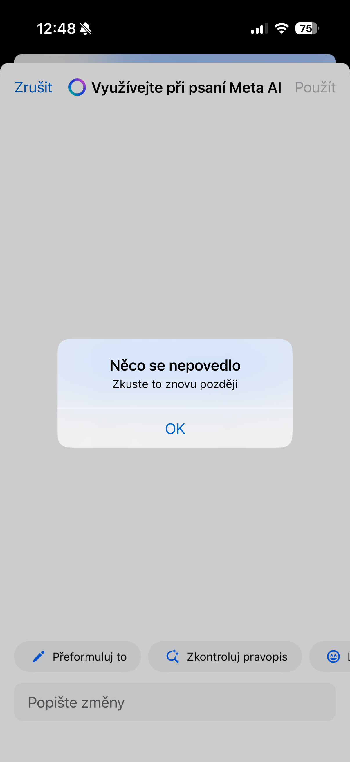 Jak můžete sami vidět, do Messengeru přibyly nové ikony pro AI funkce při psaní či posílání fotek. Háček je však v tom, že jakmile na ně tapnete, vše je v nich sice k dispozici v češtině, nicméně nic se nestane, protože daná funkce vždy selže a oznámí to hláškou „Něco se nepovedlo“. Stejně tak se stále nechce mluvit česky Meta AI ve vlákně chatu. I nadále je sice v jeho rozepsané zprávě vidět, že česky umí docela dobře, nicméně nakonec se vám odešle zpráva, ve které Meta AI tvrdí, že češtinu zatím neovládá. Nechme se tedy překvapit, na jak dlouho. Přípravy na spuštění jsou totiž čím dál tím evidentnější.