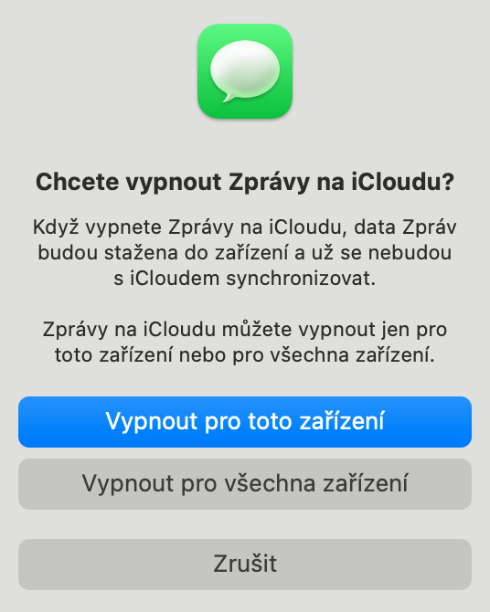 - Odhlaste se z Apple ID nebo vypněte synchronizaci. Zde máte dvě možnosti – odškrtněte volbu „Zapnout zprávy na iCloudu“ – tím přerušíte synchronizaci zpráv mezi Macem a dalšími zařízeními, nebo klikněte na Odhlásit se u Apple ID, pokud chcete úplně zrušit propojení iMessage s tímto Macem.
