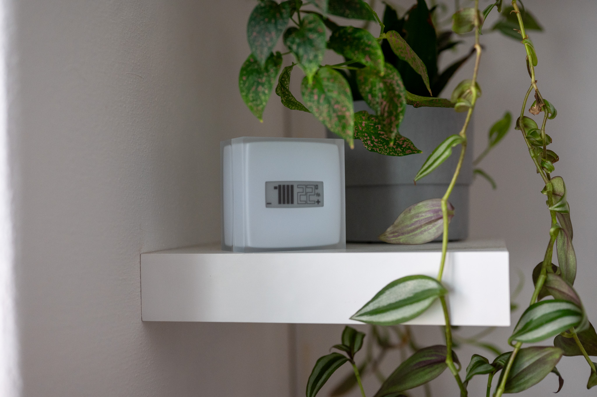 Vizuálně termostat zaujme čistým čtvercovým tvarem a minimalistickým displejem, doplněným o čtyři vyměnitelné barevné fólie, díky nimž jej snadno sladíte s interiérem. Co se týče obrazovky, displej typu e-paper zaručuje skvělou čitelnost a minimální spotřebu energie.