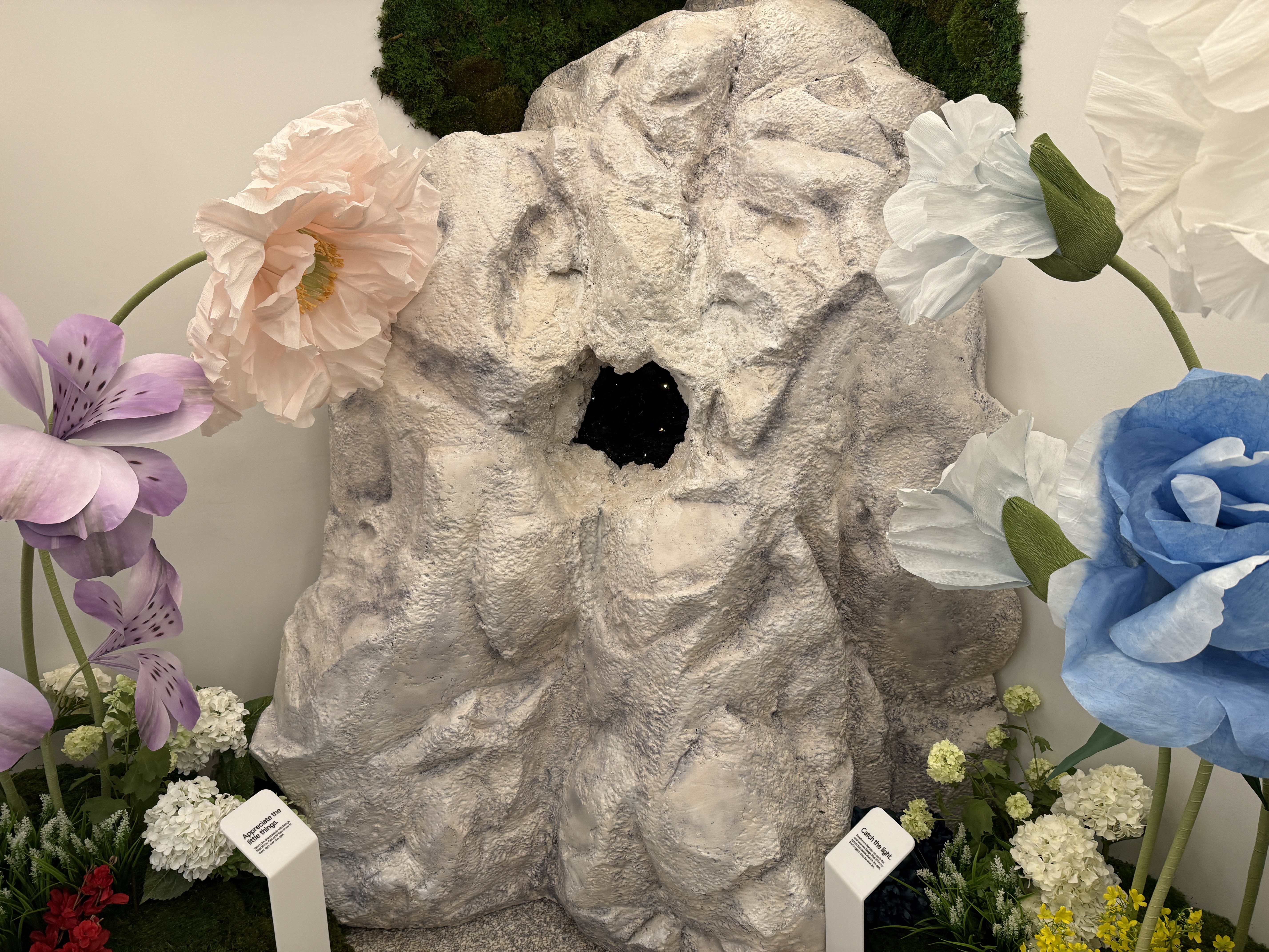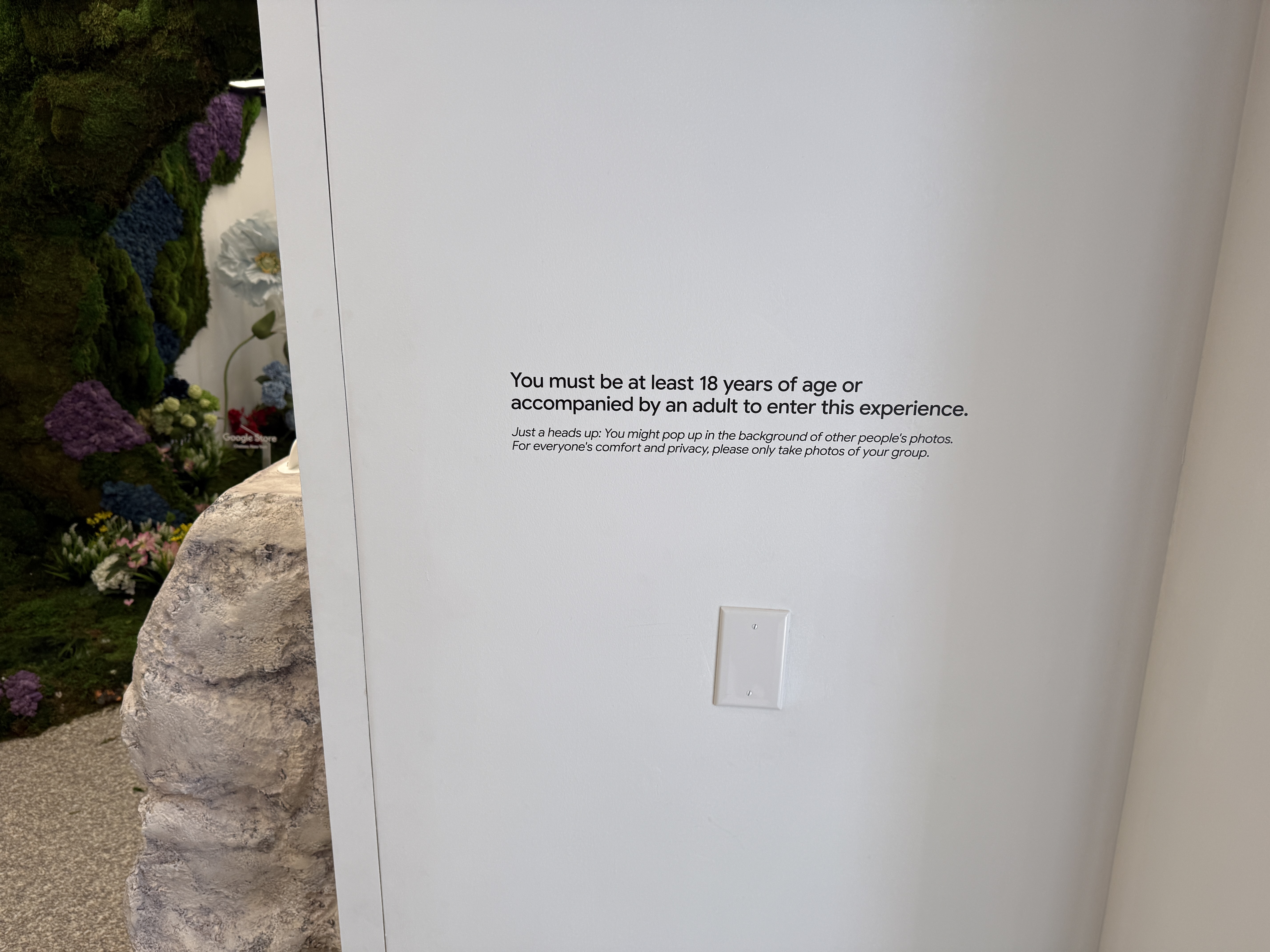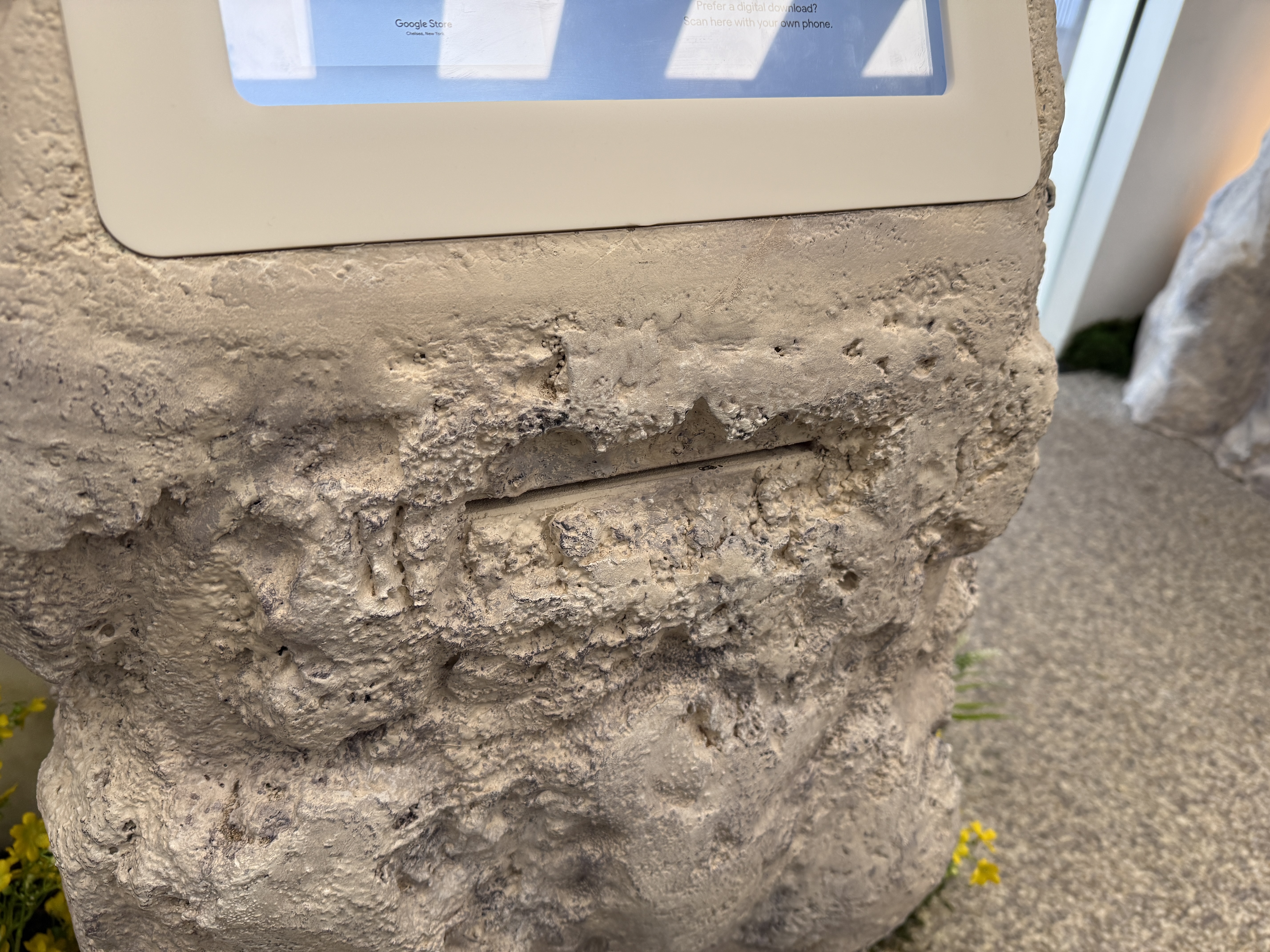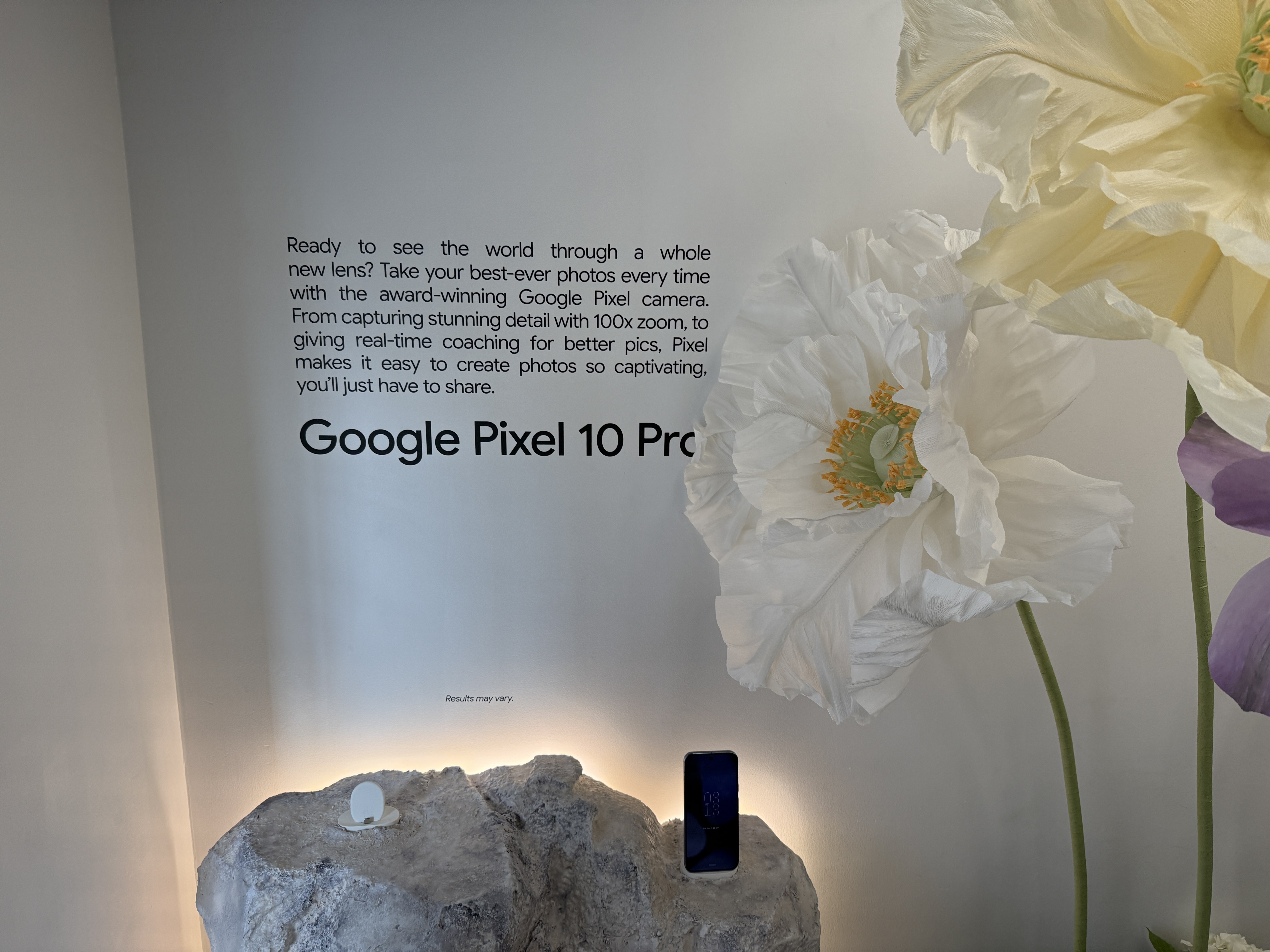 V rámci mísnosti Pixel Camera si vezmete jeden ze čtyř telefonů Pixel 10 a projdete mísnost, ve které najdete květiny, umělou jeskyni, zrcadla, mech a další věci, které jsou fotogenické. Můžete si jednoduše vzít jeden ze čtyř telefonů a nafotit cokoli, co se vám líbí a co vás jen napadne. Vyzkoušíte si tak focení v různých podmínkách. Jakmile vyfotíte svoji nejlepší fotografi, jednoduše zapojíte telefon Pixel 10 do tiskárny, a fotografii si samozřejmě zdarma okamžitě vytisknete a odnesete domů na památku.
