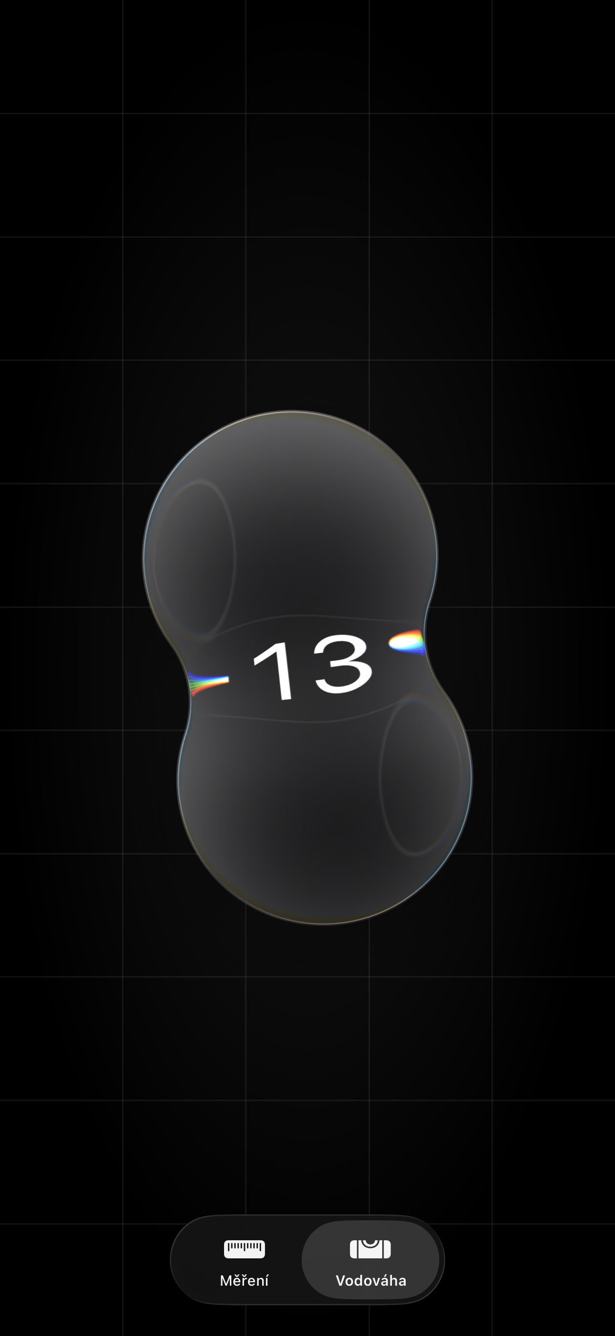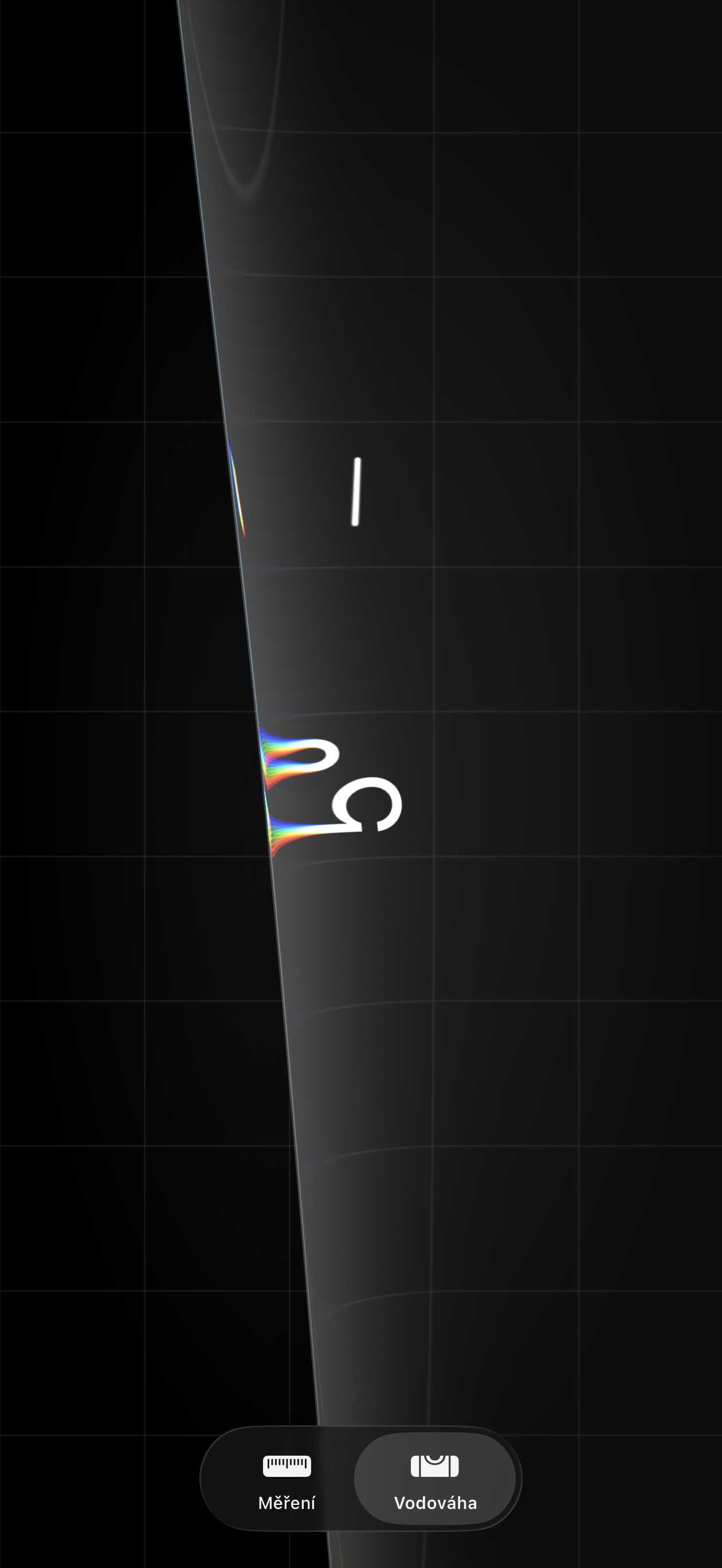 Nový vzhled totiž přidává do rozhraní optické zkreslení a barevné odlesky, které připomínají kapky tekutého skla přelévající se po obrazovce. V praxi to znamená, že když ukazatel vodováhy prochází horizontem, uživatel vidí jemné chromatické aberace a deformaci pozadí, která se mění podle úhlu naklonění zařízení