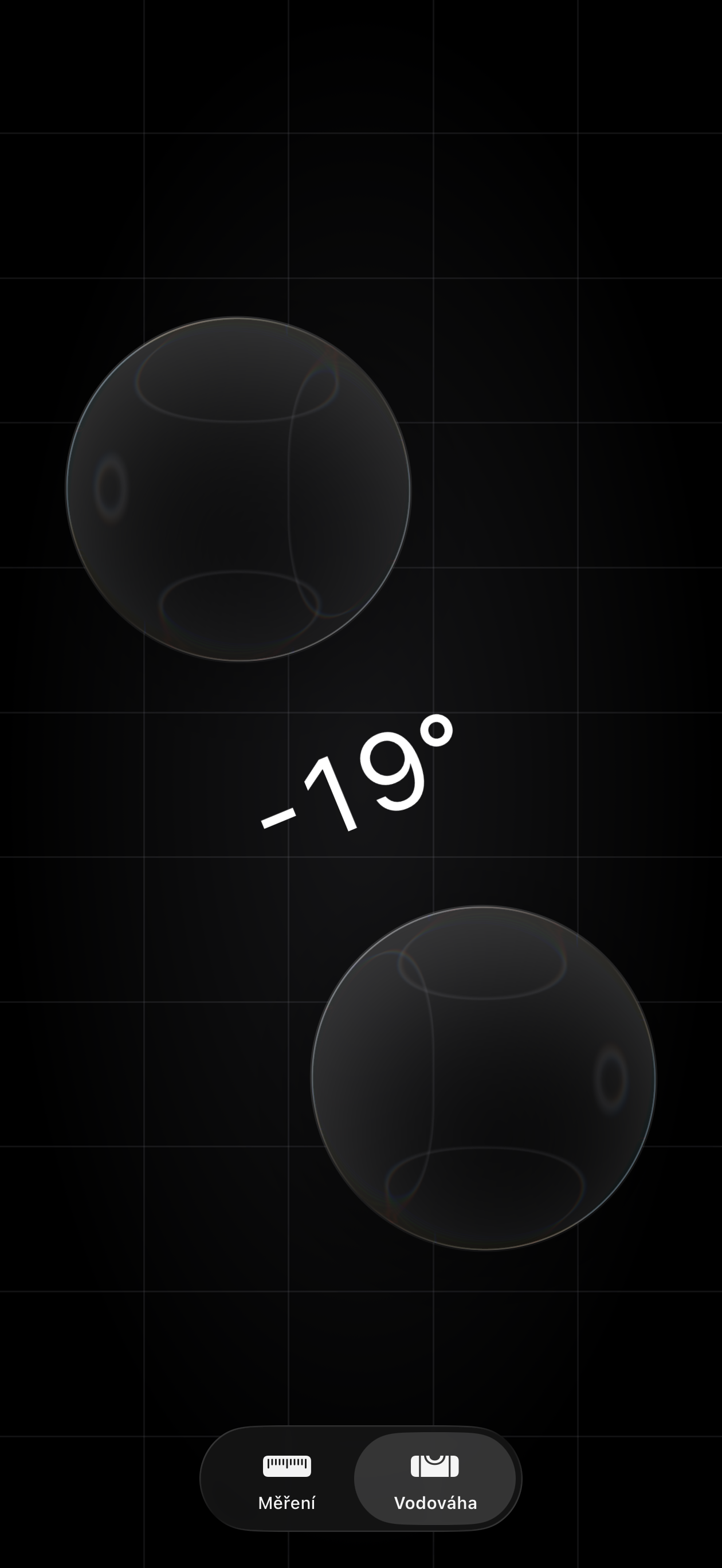 Apple šel ale ještě dál. Pokud měříte vodorovnost například stropu nebo podlahy, místo starých plochých kruhů se teď zobrazí dvojice tekutých kroužků, které se organicky deformují a reagují na každý pohyb. Čísla i mřížka v pozadí se při tom lehce „vlní“, což vytváří dojem, že celý prvek skutečně žije. Apple si tedy opět hraje s detaily, které většina výrobců úplně přehlíží, a i z tak obyčejné funkce, jako je vodováha, dokáže udělat něco, co stojí za to si otevřít jen kvůli efektu samotnému.