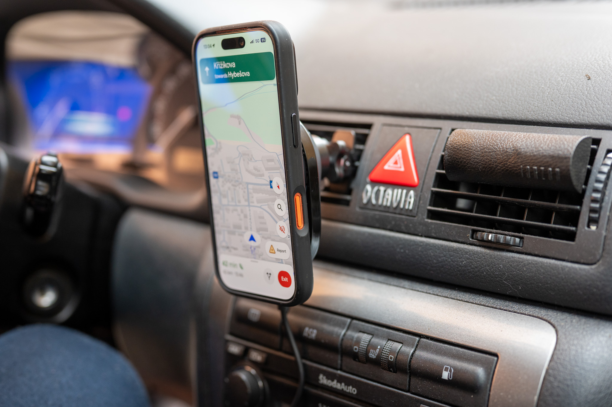 Velkou roli pak samozřejmě hraje i aktivní chlazení. Při dlouhých cestách v navigaci, kdy se iPhone běžně zahřívá, držák díky ventilátoru držel vždy teploty na uzdě. Nabíjení tak nepřeskakuje do omezených režimů, nezpomaluje a výkon je rovnoměrný i po desítkách minut. Přestože ventilátor běží kontinuálně, ve skutečnosti ho v kabině prakticky není slyšet. Zvukově dle mého spíš připomíná velmi tichý notebookový ventilátor na nejnižší otáčky.