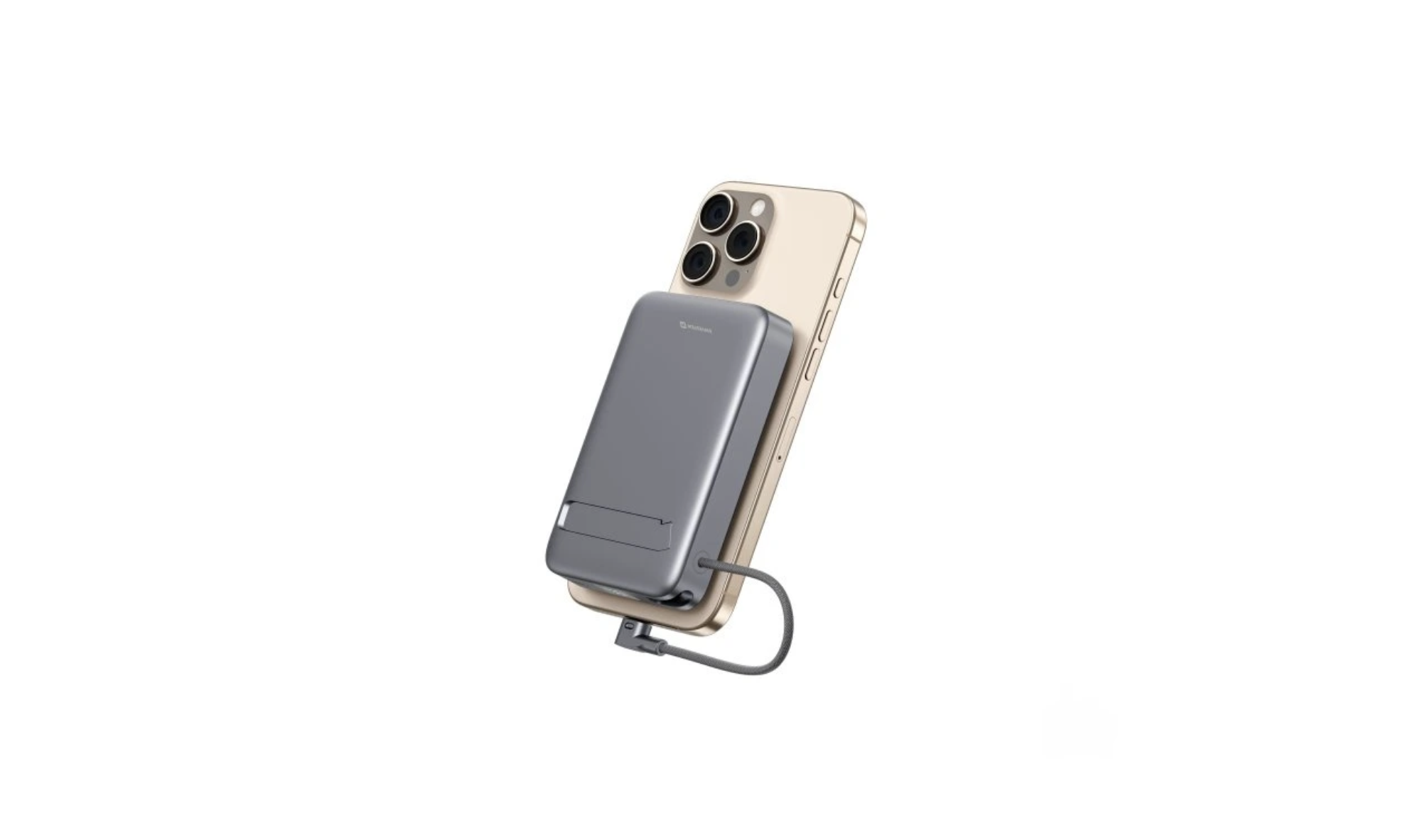 Tato moderní MagSafe powerbanka je skvělým tipem pro všechny, kdo chtějí nabíjet pohodlně a bez kompromisů. Nový standard Qi2 umožňuje bezdrátové nabíjení až 15 W, a to jak pro iPhone, tak pro kompatibilní telefony s Androidem. Přes USB-C dokáže dodat až 35 W, takže si poradí i s tabletem nebo menším notebookem. Integrovaný kabel a praktický stojánek oceníte doma i na cestách. Digitální displej přehledně ukazuje kapacitu i rychlé nabíjení. Cena je 1199 korun.