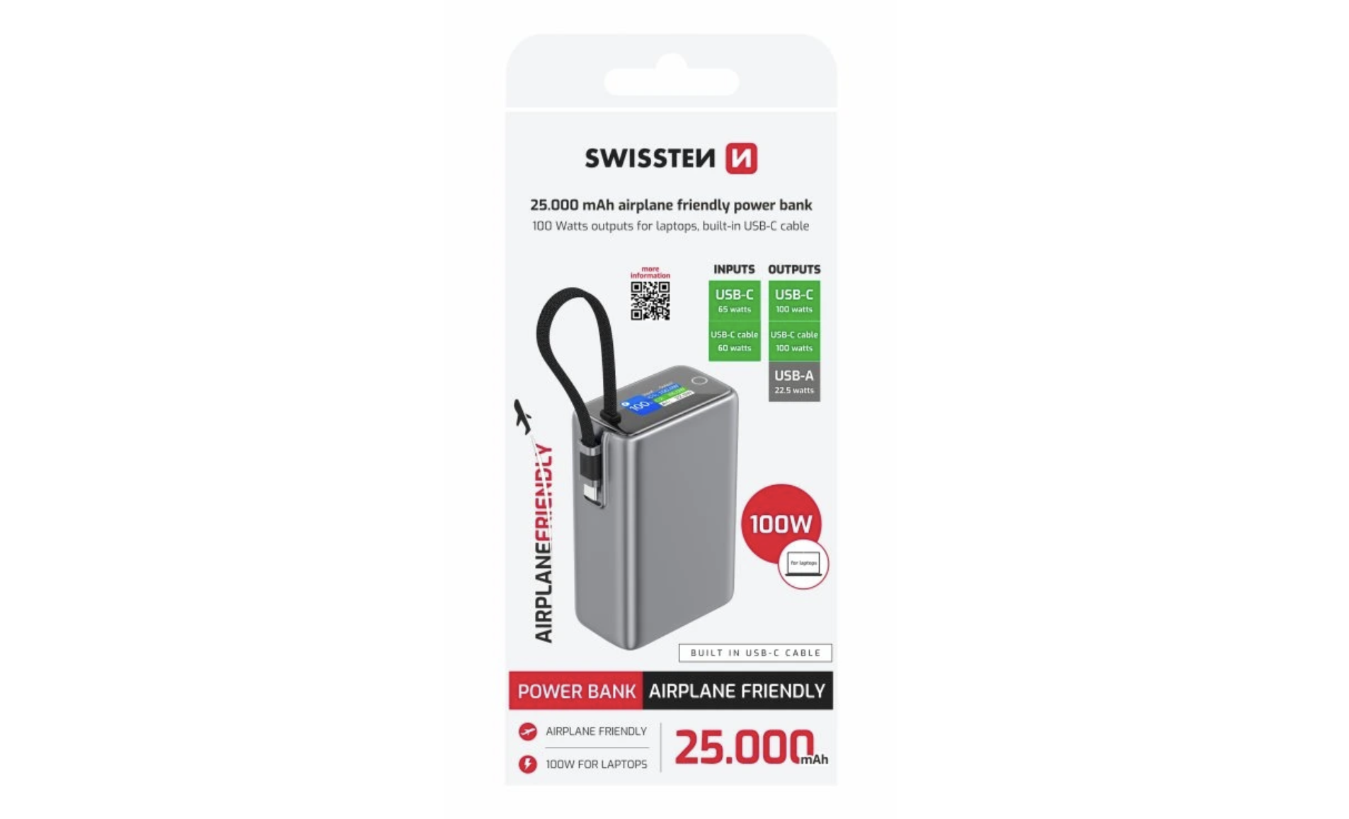 1. Swissten Powerbanka 25 000 mAh – ideální na cesty