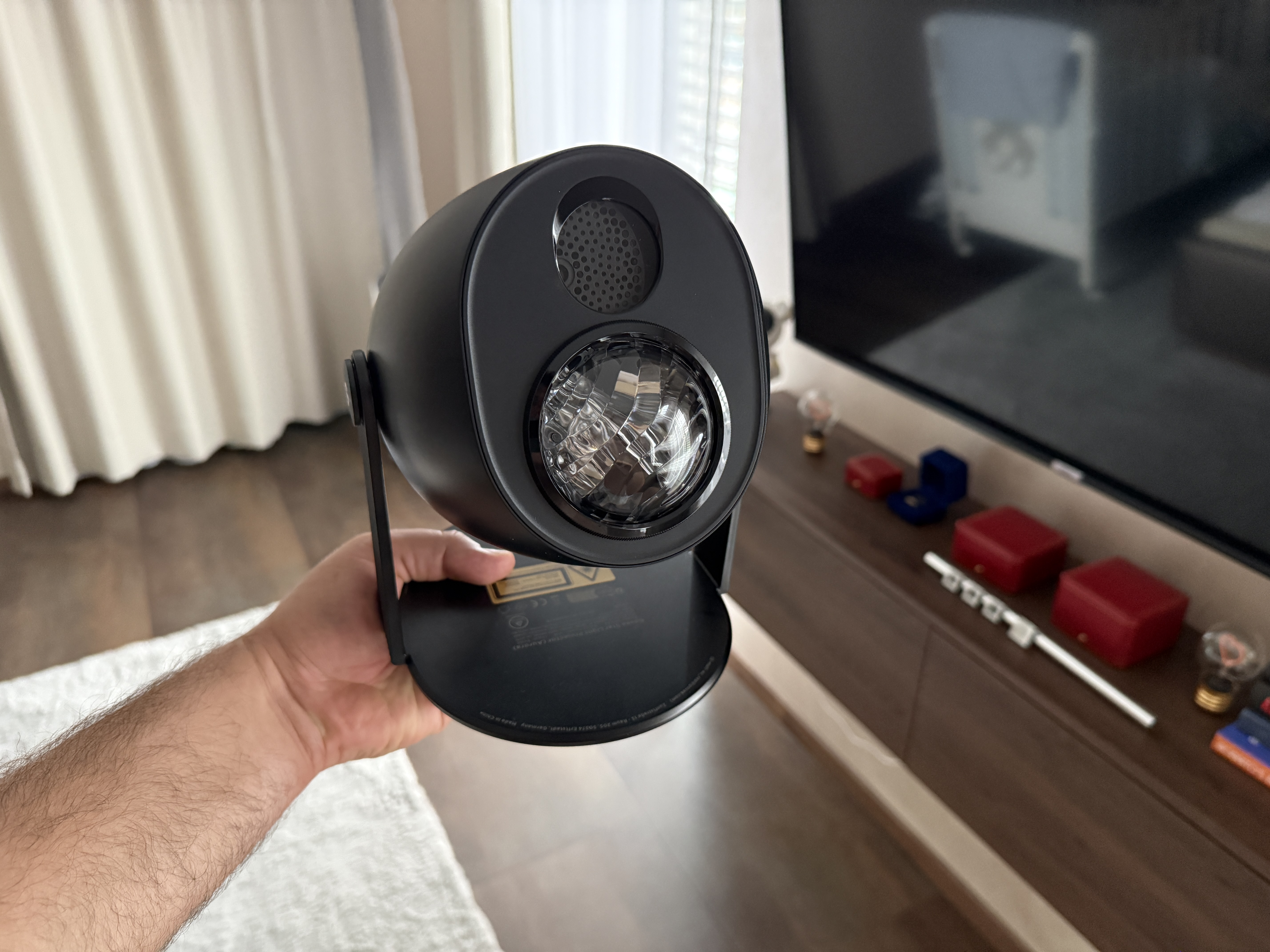 Na první pohled působí projektor nenápadně. Kompaktní tělo ve tvaru půlkoule s decentním podstavcem se snadno hodí do dětského pokoje, ale zároveň se neztratí ani v moderním obýváku. Kvalita zpracování je na velmi slušné úrovni. Plast působí pevně, nikde nic nevrže a celý produkt působí prémiovým dojmem.