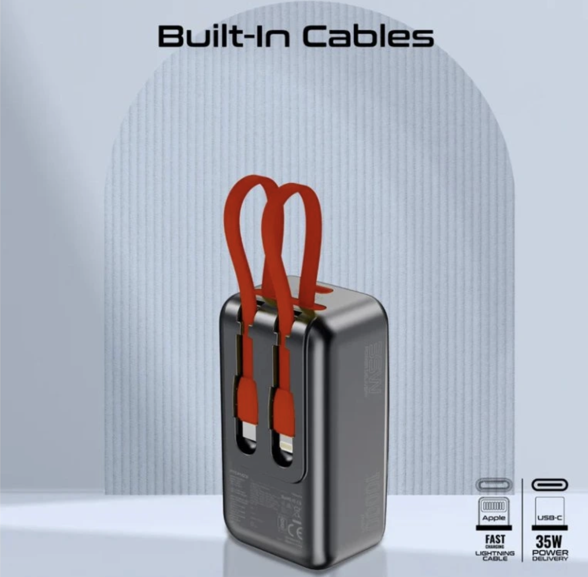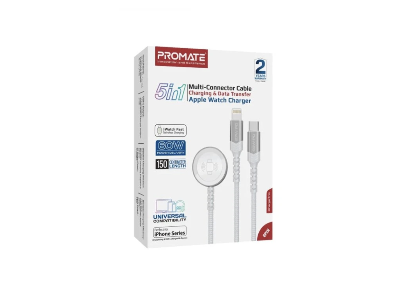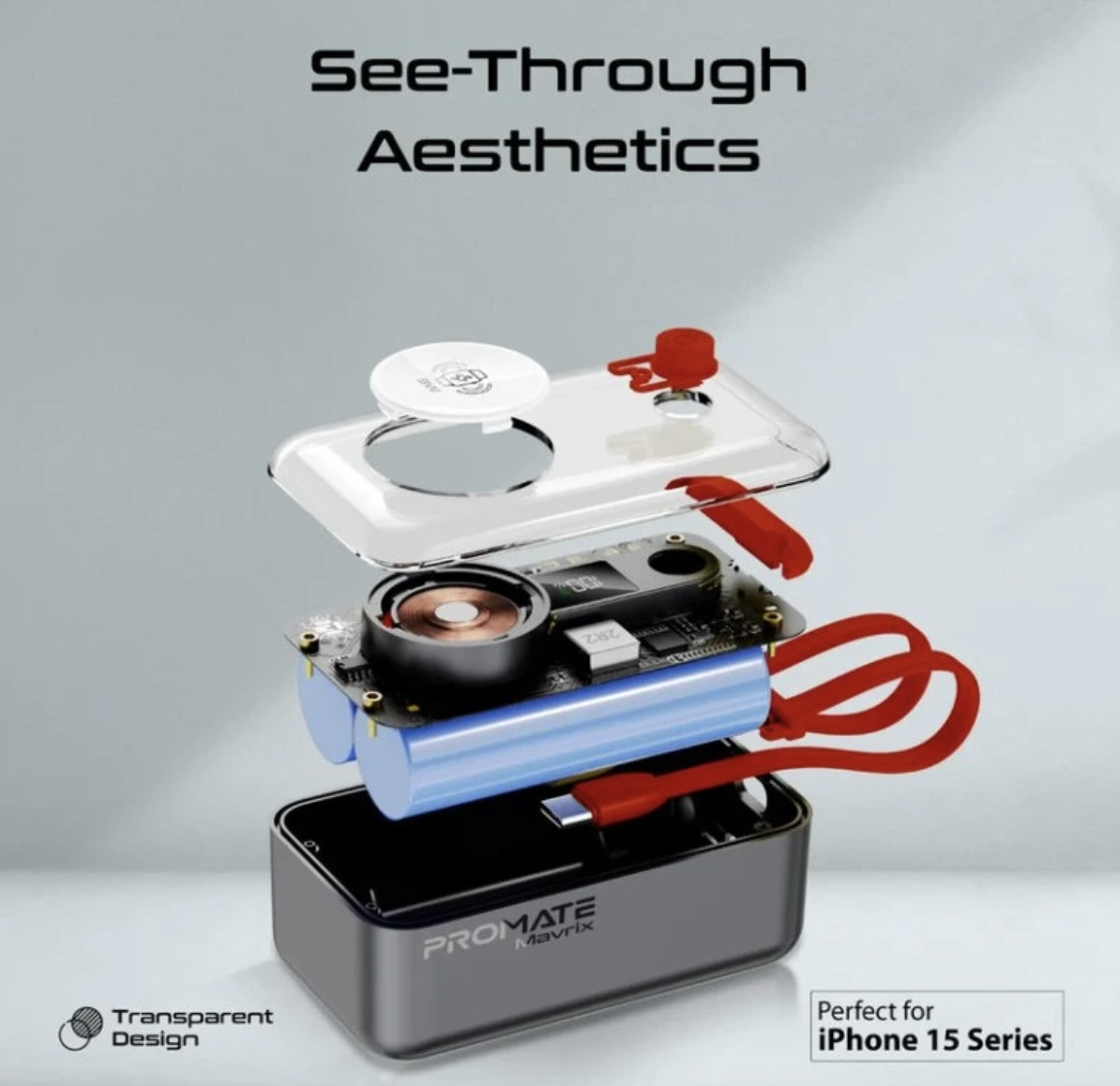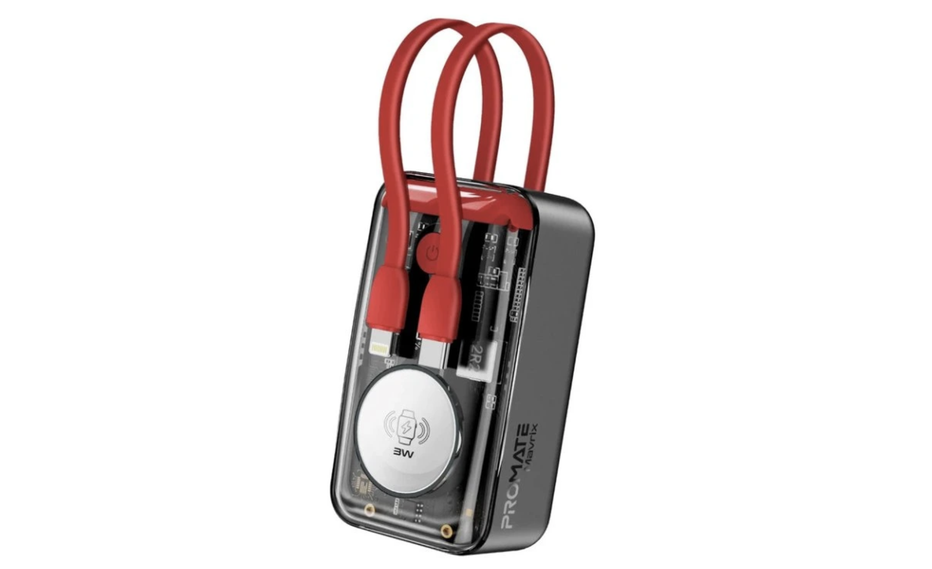 1. PROMATE Mavrix – průhledná powerbanka s kabely a nabíjením Apple Watch