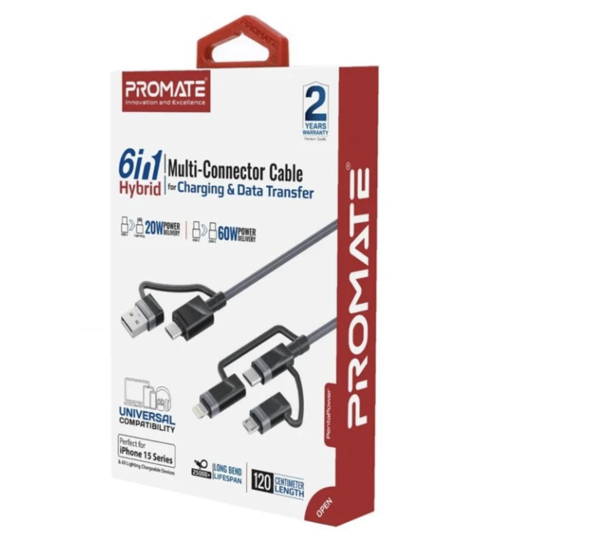 3. PROMATE PentaPower 6v1 – univerzální hybridní kabel