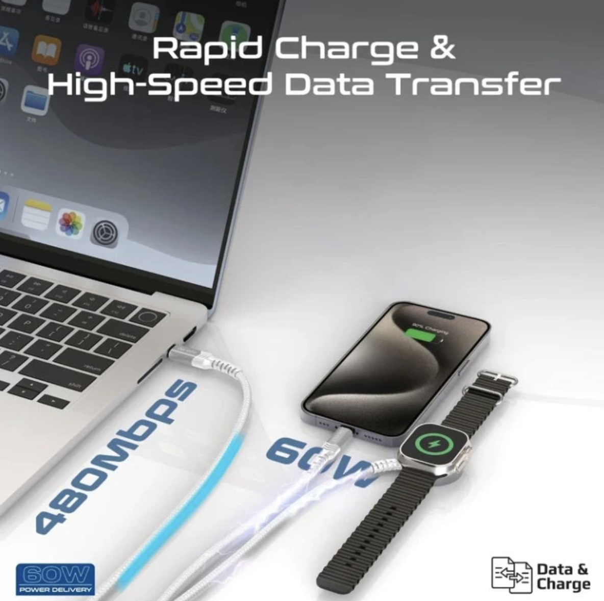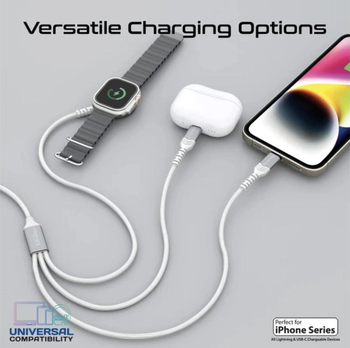iCharge-Trio je kabel, který skoro nahrazuje malé příruční servisní centrum. Nabízí jediný vstup USB-C a tři výstupy v podobě USB-C, Lightning a bezdrátovou nabíječku pro Apple Watch. Díky výkonu 60 W zvládne napájet i MacBook, což z něj dělá skvělý doplněk na cesty i do kanceláře. Oplet z textilie brání zamotávání a zvyšuje odolnost, takže jej můžete bez obav házet do batohu. Podporuje přenos dat rychlostí 480 Mb/s, takže není určen jen na nabíjení, ale i rychlou synchronizaci. Stojí 899 korun.
