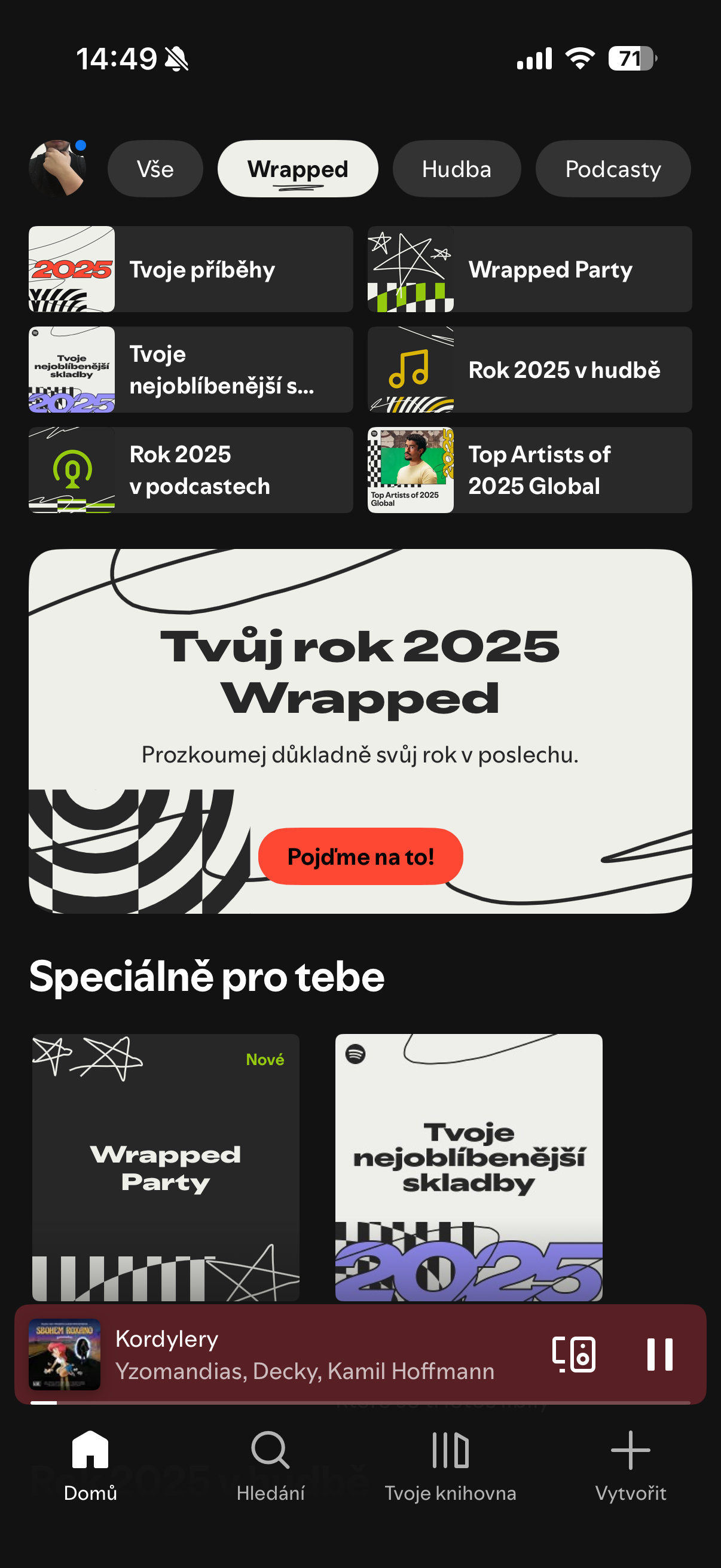 Oblíbený souhrn Wrapped je tu! Spotify totiž začalo během dnešního odpoledne uživatelům ukazovat, jaký byl jejich rok 2025 v kostce, respektive, co za uplynulý rok poslouchali nejčastěji, aby si tak udělali obrázek o svém „posluchačském“ životě v uplynulých 12 měsících. V přehledech nechybí váš nejoblíbenější umělec, nejoblíbenější skladba, počet minut, po které jste Spotify poslouchali a tak podobně. Jako menší dárek pak od Spotify dostává každý automaticky vytvořený Playlist, který koresponduje s tím, co jste nejvíce poslouchali a také možnost tyto statistiky přehledně sdílet na sociálních sítích.