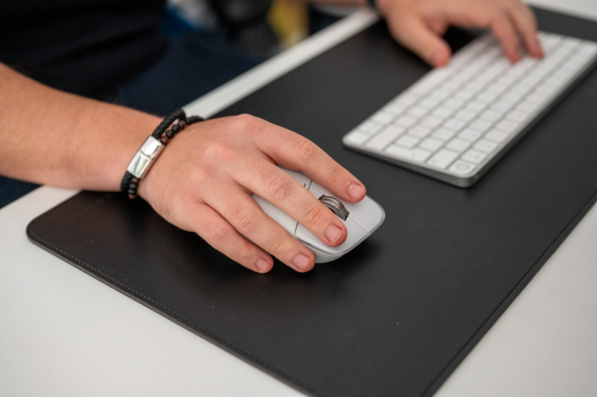 Velmi kladně musím zhodnotit i to, jak moc je myš tichá při klikání. Extrémně ztlumená tlačítka jsou totiž malým, leč velmi příjemným bonusem, který nyní coby novopečený rodič, jehož dítko rádo často spí kousek od něj v košíku, opravdu oceňuji. Logitech uvádí snížení hlučnosti o 90 % a musím říci, že tišší myš jsem doteď opravdu neslyšel. Kliky jsou příjemně měkké a tlumené, ale stále s jasným definovaným bodem stisku, takže člověk neztrácí kontrolu ani při rychlém přepínání nástrojů v editorech.
