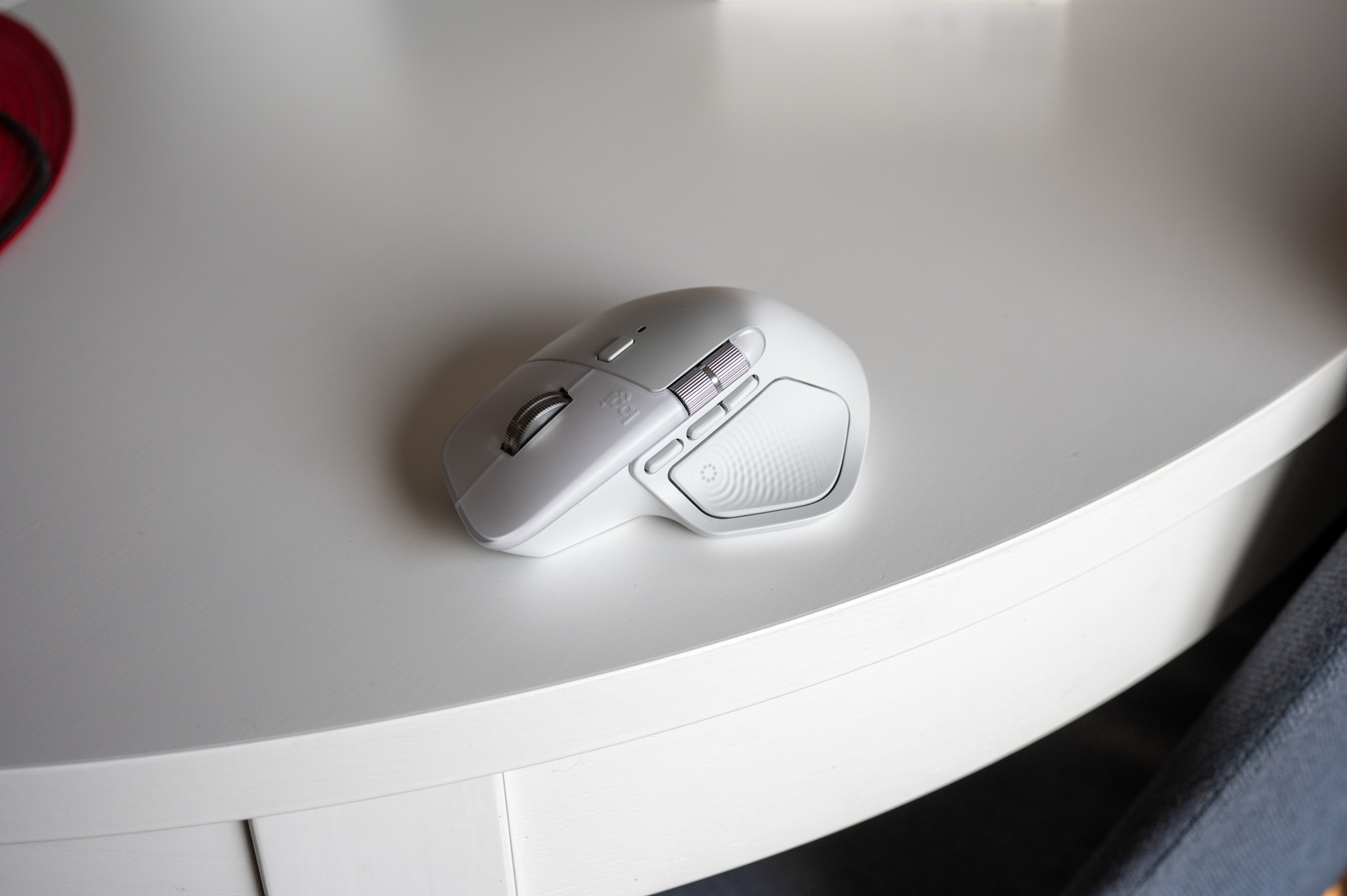 Co mě ale dostalo hned po vybalení, je konstrukce. Tvarově vychází z předchozích generací, kdy úhel náklonu i celková ergonomie jsou dotažené přesně do té podoby, díky čemuž ruka konečně přestane bloudit vzduchem jako u trackpadu a najde si pevnou a zároveň opravdu příjemnou a přirozenou oporu. Rozložení tlačítek je instinktivní – palec dopadne přesně tam, kde má, horizontální kolečko kopíruje jeho pohyb a hlavní MagSpeed scroll je pořád tím malým technickým zázrakem, který umí proletět tisíc řádků za sekundu nebo se naopak uklidnit do přesných kroků podle toho, co zrovna děláte. Byla by však chyba si myslet, že je MX Master 4 jen mírně vylepšenou verzí předešlé generace.
