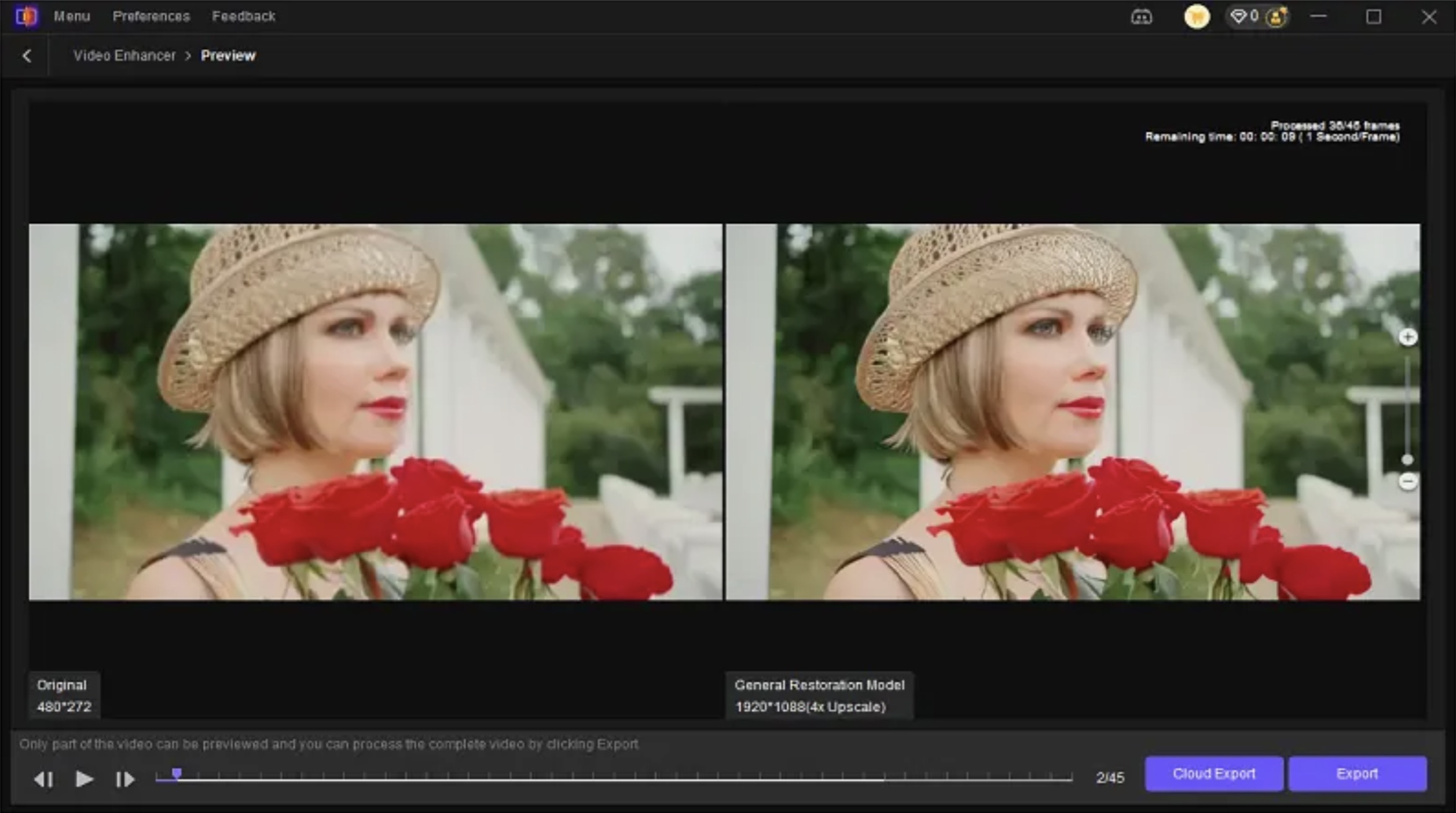 Krok 4: Klikněte na „Náhled“ a počkejte, až software dokončí obecné zvýšení rozlišení.