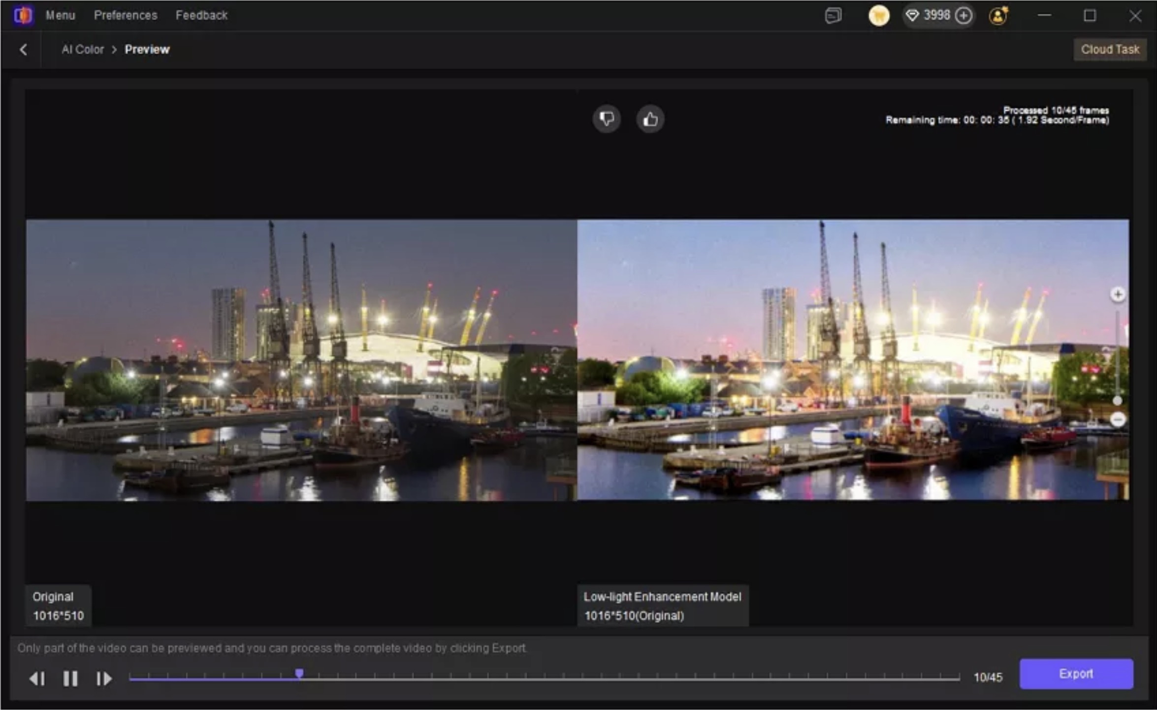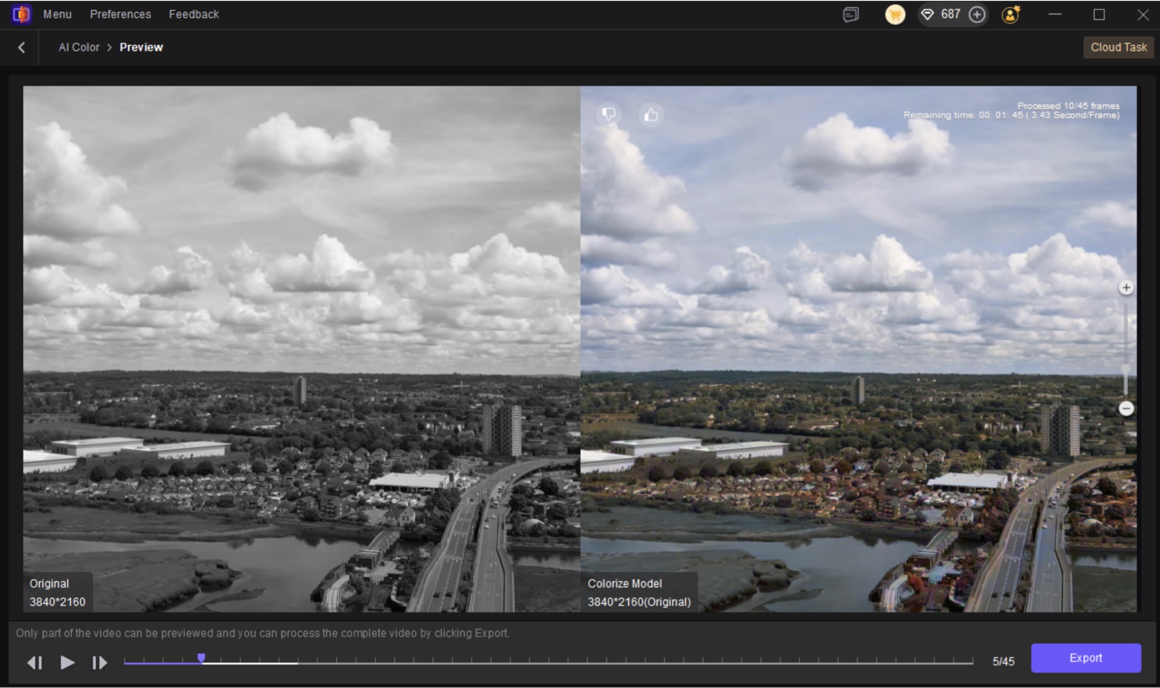 Díky podpoře cloudu nemusíte čekat na dokončení velkých vylepšení, jako je upscaling na 4K a 8K, a pomáhá to plynulejšímu přehrávání videa i na starších počítačích. Je to užitečná funkce pro uživatele, kteří chtějí rychlost, aniž by potřebovali špičkový hardware.