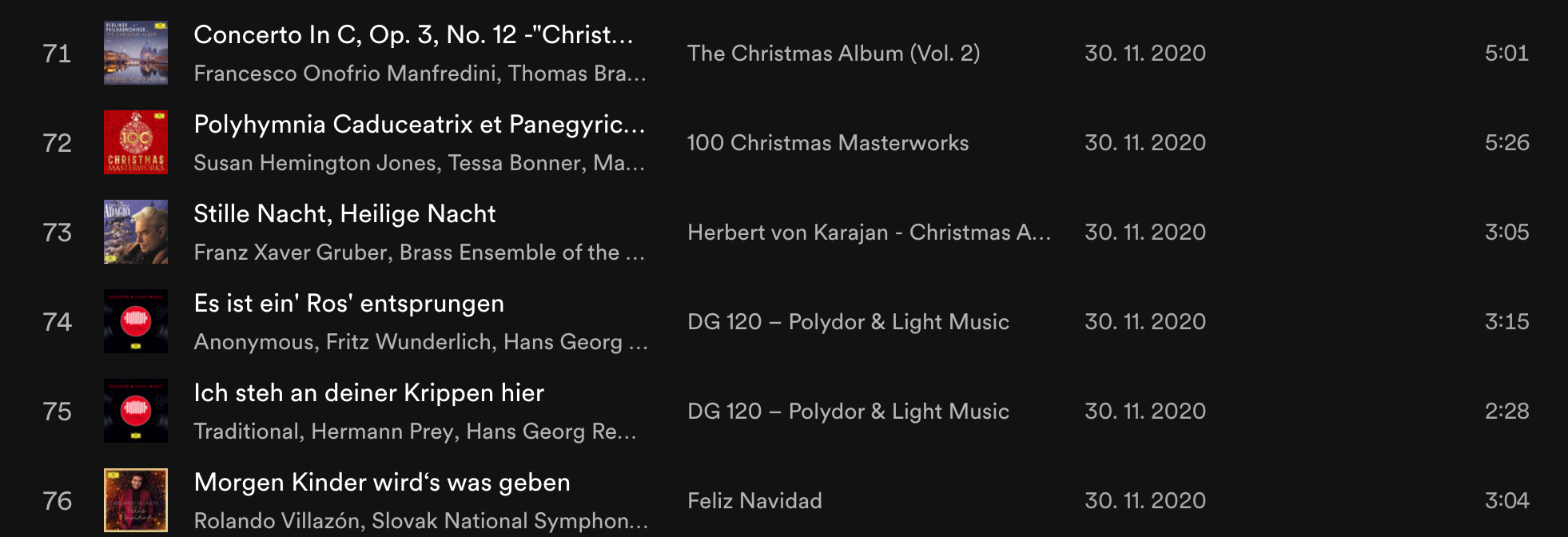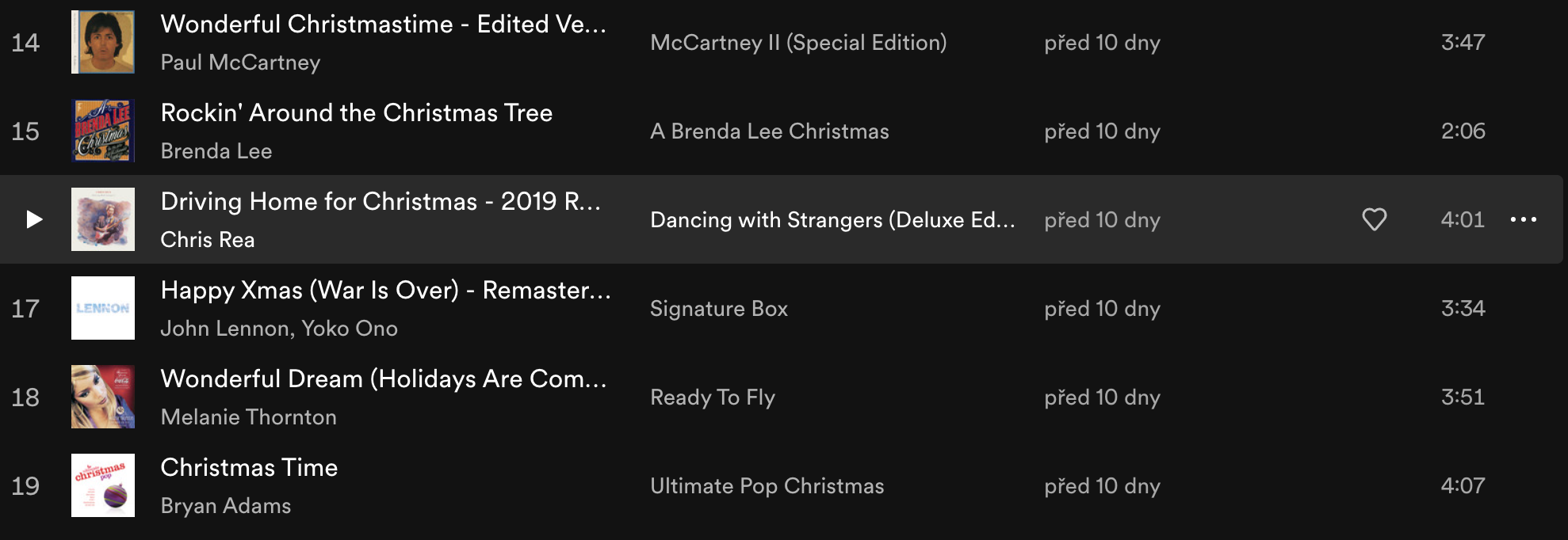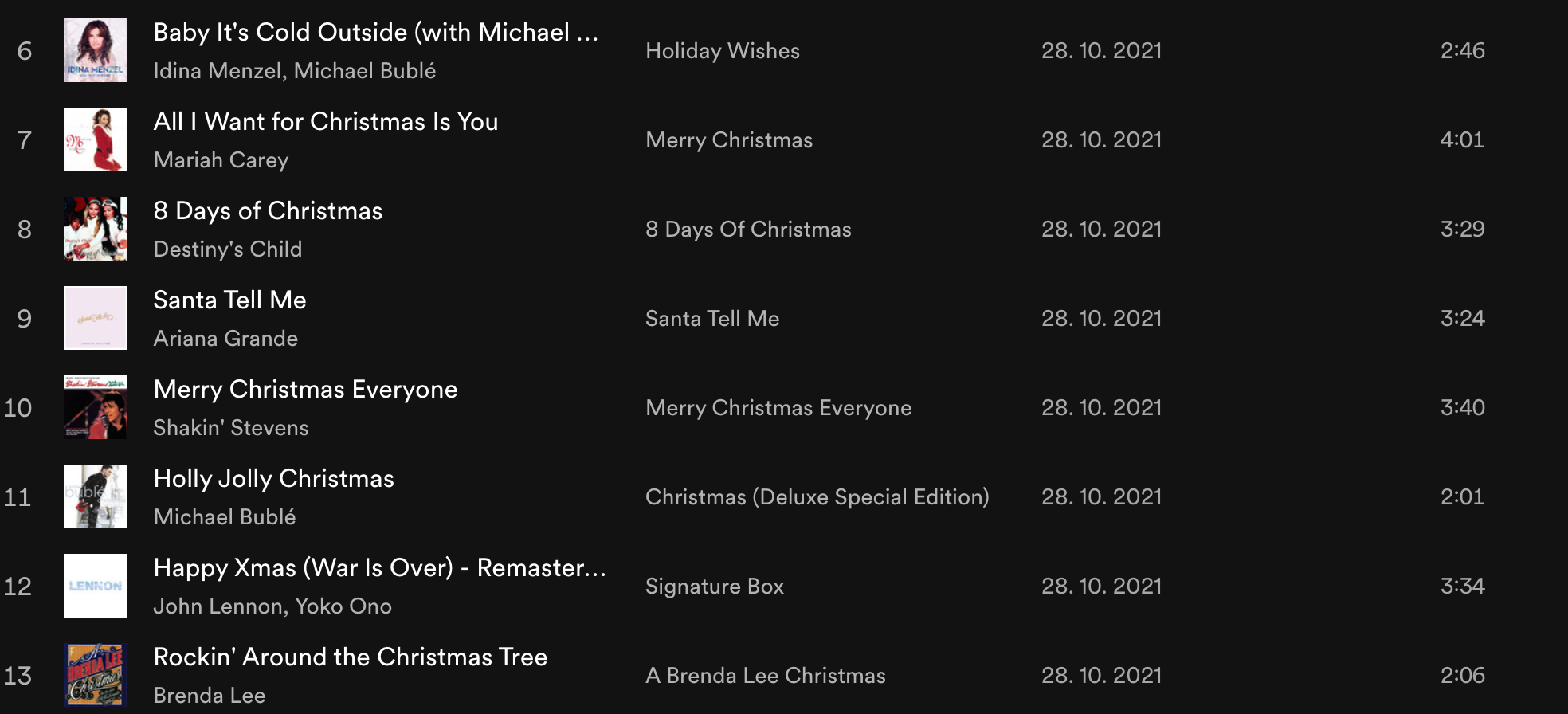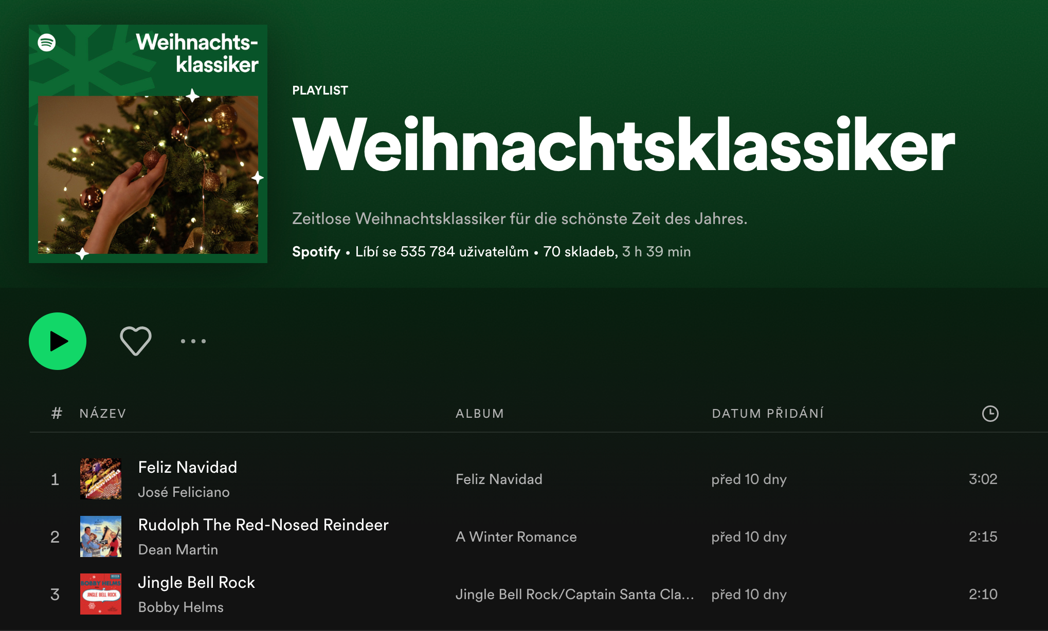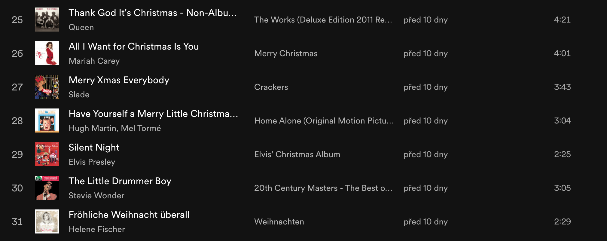 Spotify tento seznam pravidelně aktualizuje, takže se do něj dostávají i čerstvé novinky. Skvěle funguje při pečení cukroví nebo balení dárků – prostě v momentech, kdy potřebujete hudbu, která vás zahřeje u srdce.