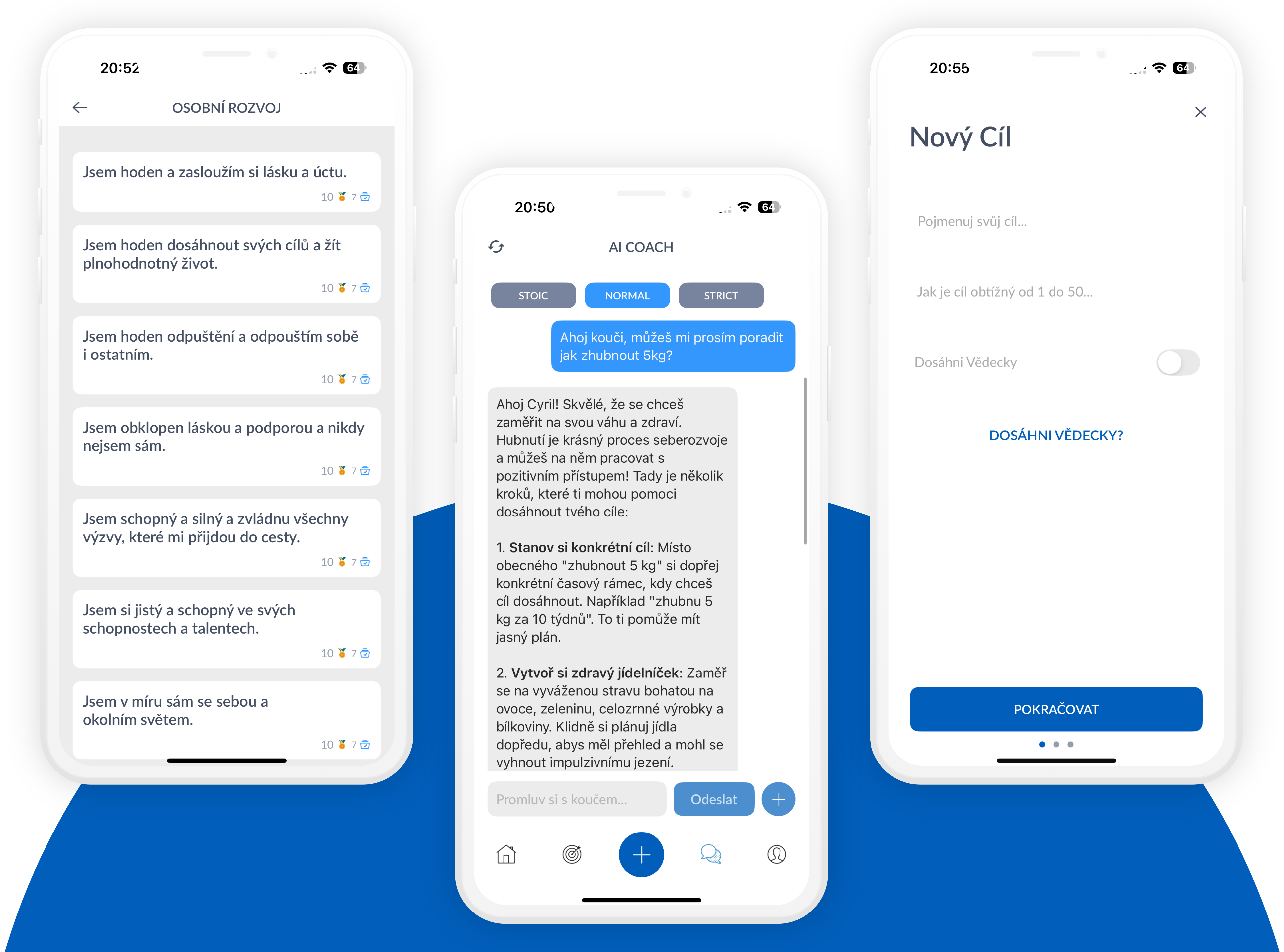 AchieveMe přichází s inteligentním AI Coachem, který vám nejen poskytne motivaci, ale také vám pomůže vytvořit personalizované cíle na základě vašich potřeb. AI Coach vás provede celým procesem stanovení cíle a během dosahování se na něj můžete kdykoli obrátit. Pro vytvoření cíle z vaší konverza ce stačí kliknout na tlačítko plus a AI Coach vám navrhne plán, jak krok za krokem vašeho cíle dosáhnout.