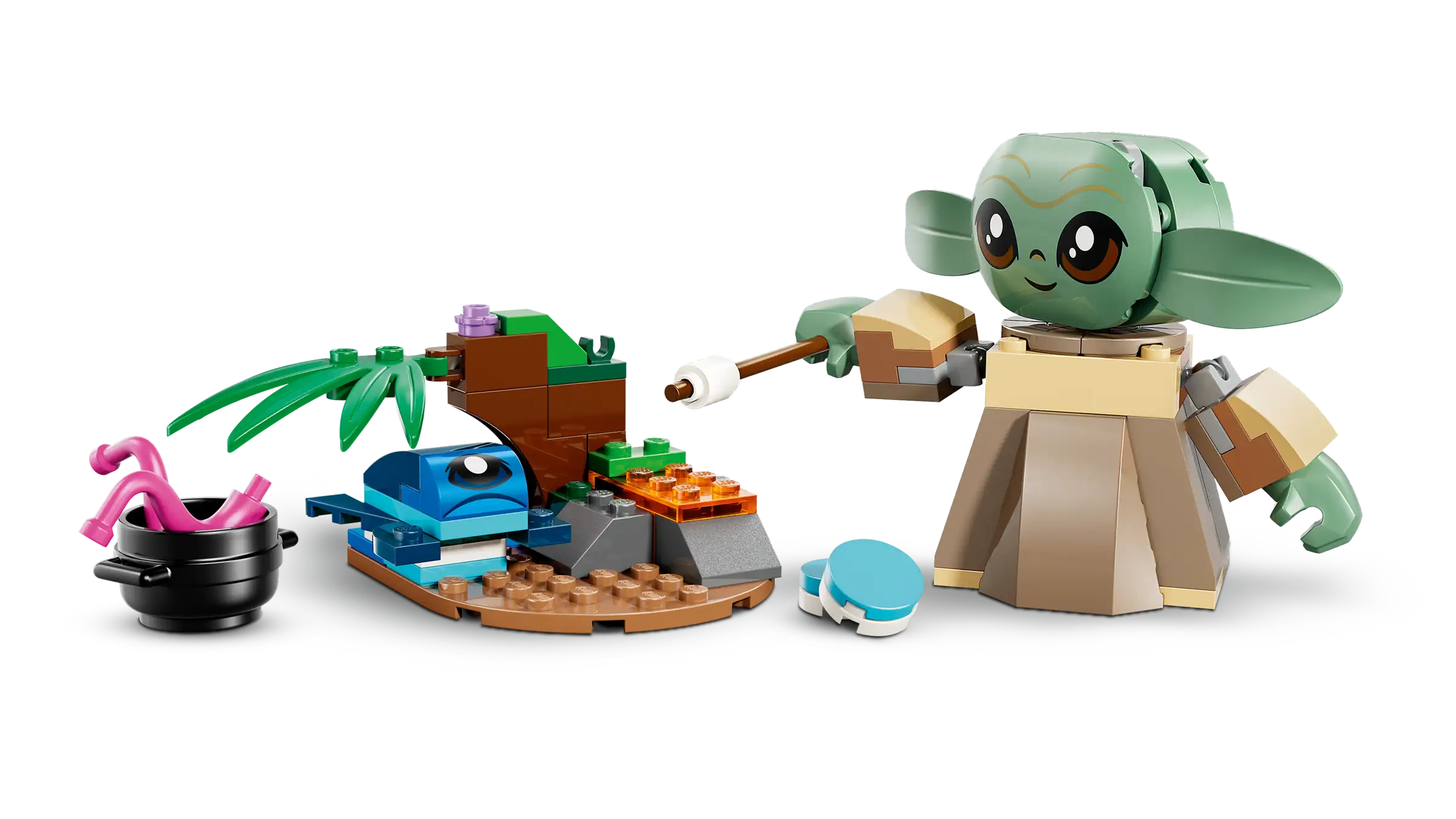Groguova usedlost je ideální první stavebnice LEGO Star Wars pro děti od 4 let, které chtějí vstoupit do světa Mandaloriana. Nabízí snadno sestavitelný model s pohyblivým Grogem, sorganskou žábou a drobnými doplňky inspirovanými seriálem – od ohniště až po modré makronky, z nichž jednu může Grogu „schovat do bříška“.