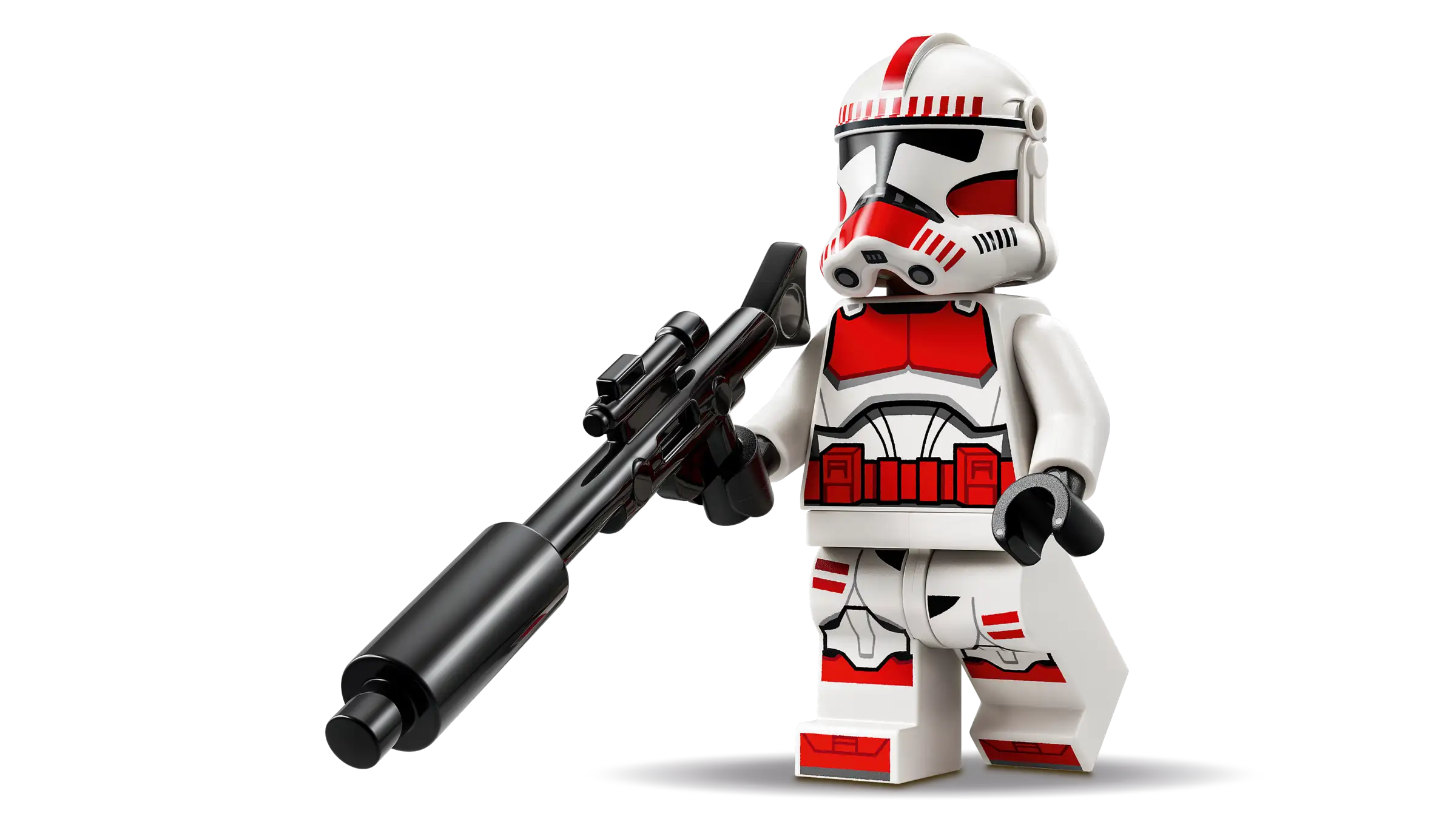 Robotický oblek klonového šokového vojáka je ideální vstupní stavebnice LEGO Star Wars pro děti od 6 let, které si chtějí užít akční hraní i jednoduché stavění. Nabízí pohyblivou figurku obleku s kokpitem pro minifigurku, místem pro blasterovou pušku a vystřelovačem, takže může okamžitě vyrazit do boje.