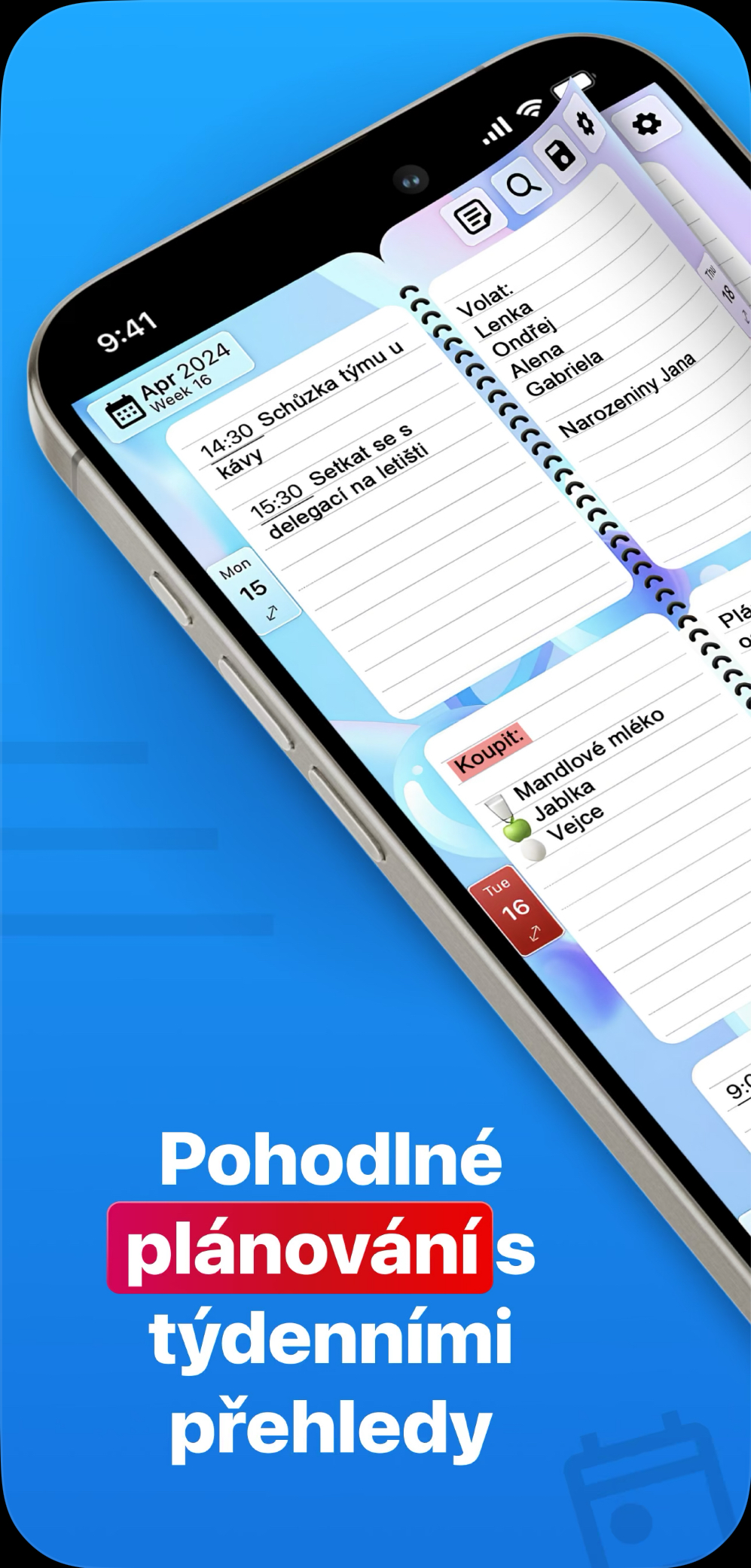Skvělá aplikace pro všechny, kteří chtějí mít své týdny a denní úkoly dokonale organizované. Díky jednoduché a přehledné struktuře můžete snadno sledovat všechny své aktivity a úkoly na týdenním přehledu. Umožňuje nastavit připomínky, což je ideální, abyste nezapomněli na žádné důležité schůzky nebo termíny, ať už jde o vánoční přípravy nebo pracovní povinnosti. Aplikace se také synchronizuje mezi více zařízeními.