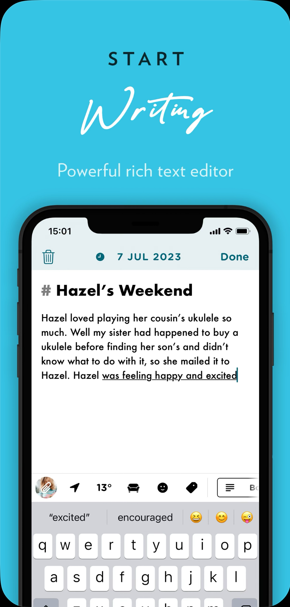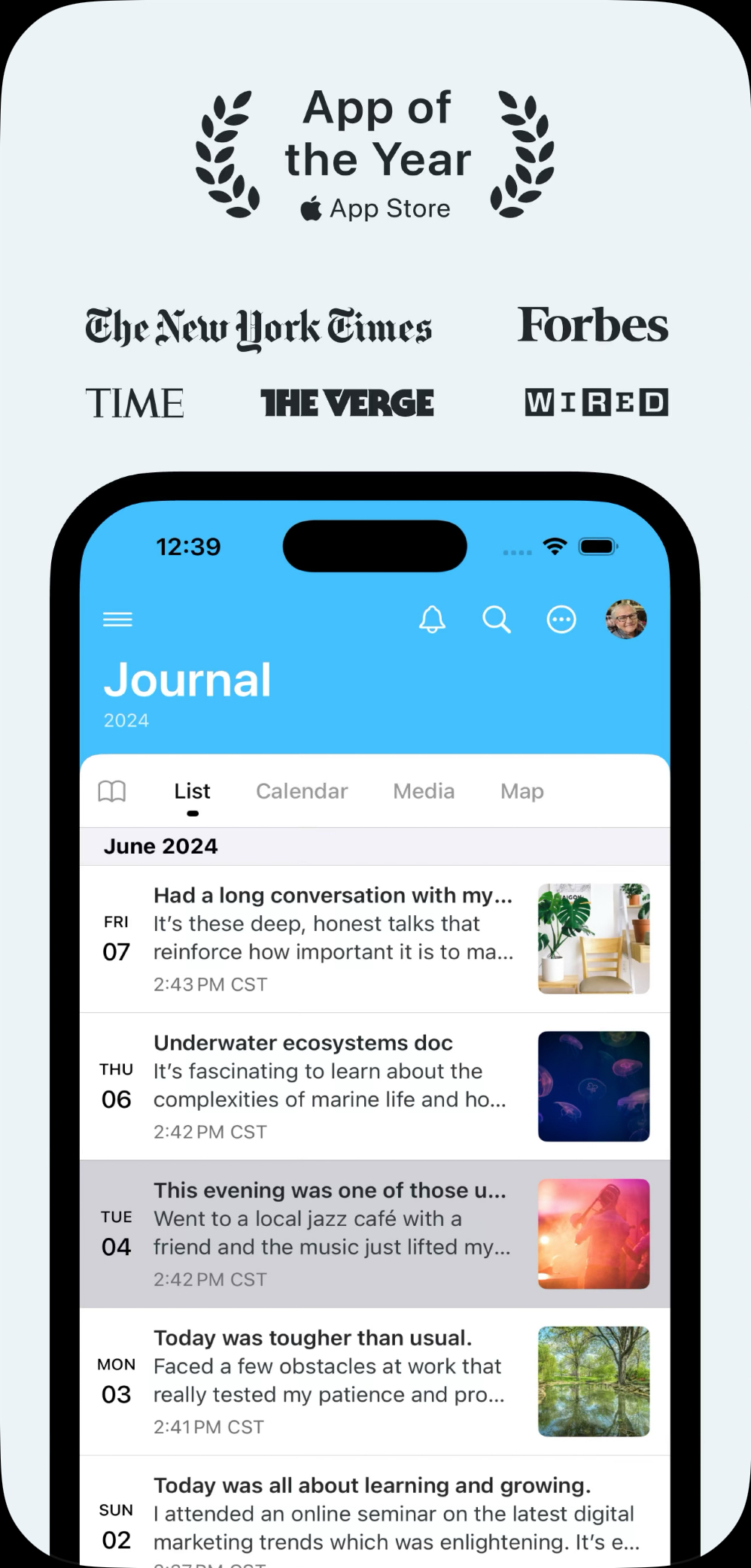 Jedna z nejlepších aplikací pro psaní deníku, která kombinuje jednoduchost s pokročilými funkcemi. Nabízí možnost ukládat nejen vaše myšlenky a události, ale také fotografie a zvukové nahrávky, díky čemuž si můžete uchovat důležité vzpomínky v různých formách. Elegantní a intuitivní rozhraní usnadňuje vytváření záznamů o významných okamžicích, doplněných o geolokační údaje a automatické tagy, které pomohou udržet vaše zápisky přehledné.