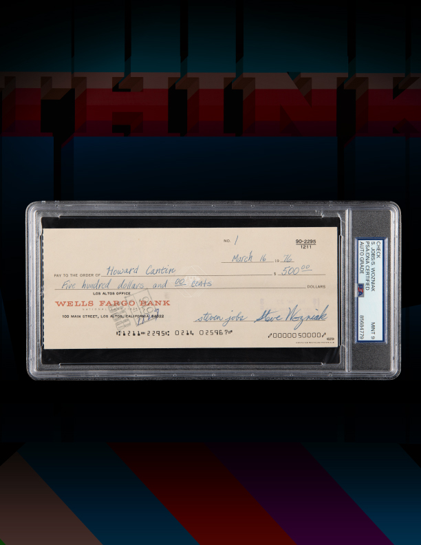 Mezi nejvýraznější položky patří vůbec nejstarší známý prototyp počítače Apple I. Ten má vyvolávací cenu 50 000 dolarů a odhadovanou hodnotu přesahující půl milionu dolarů. Stejně vysoký odhad má i první šek, který kdy společnost Apple vystavila – jeho vyvolávací cena je 25 000 dolarů. Jde o mimořádně cenné artefakty, které dokumentují samotné zrození dnes jedné z největších technologických firem světa.