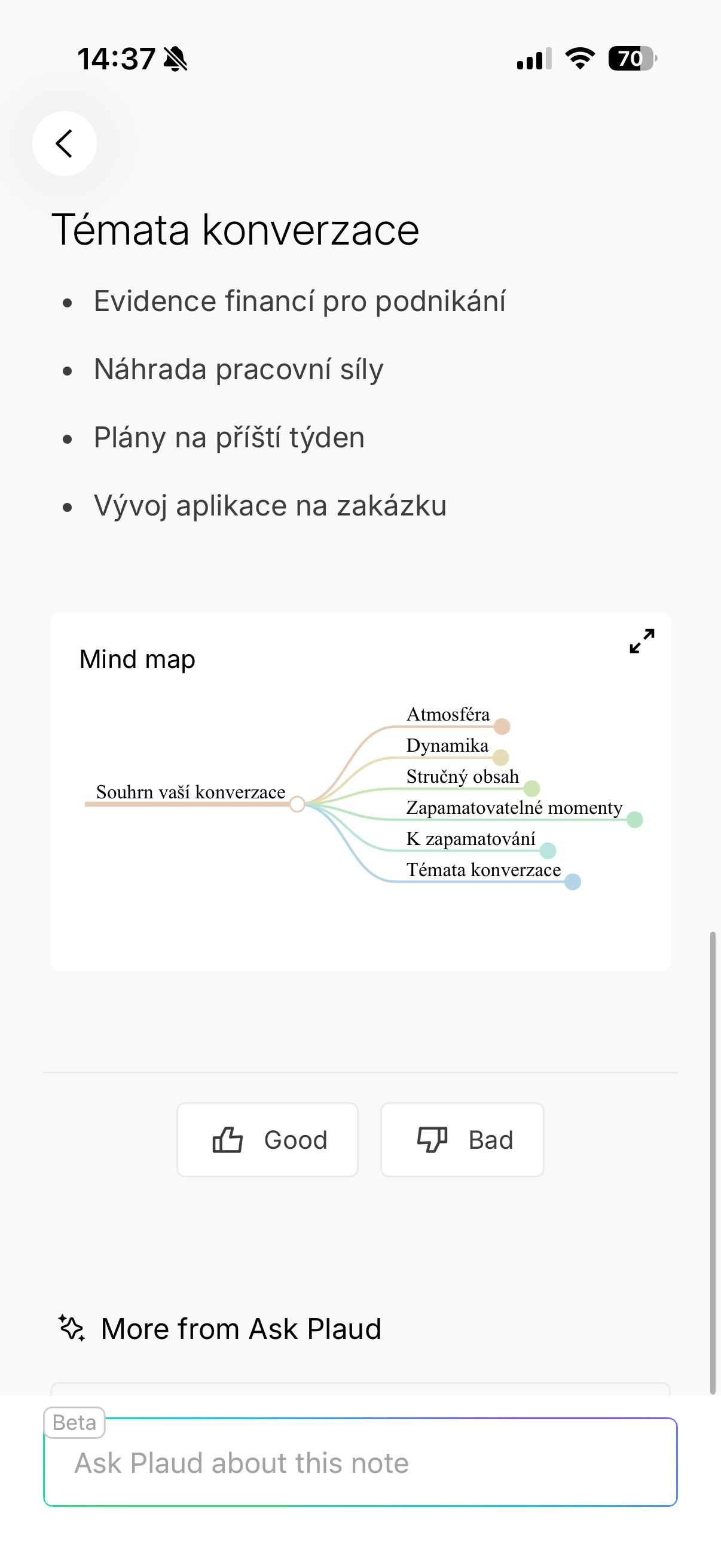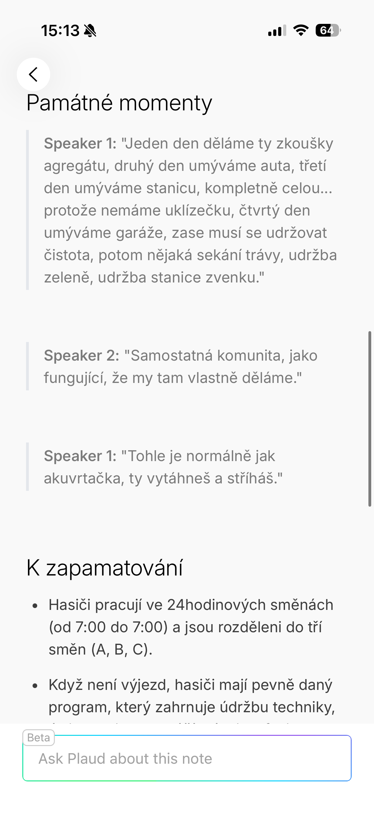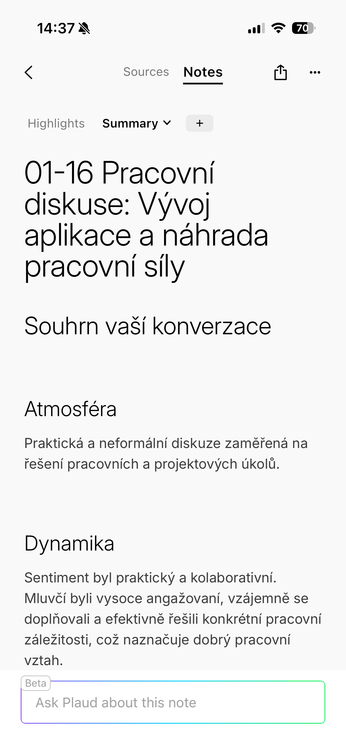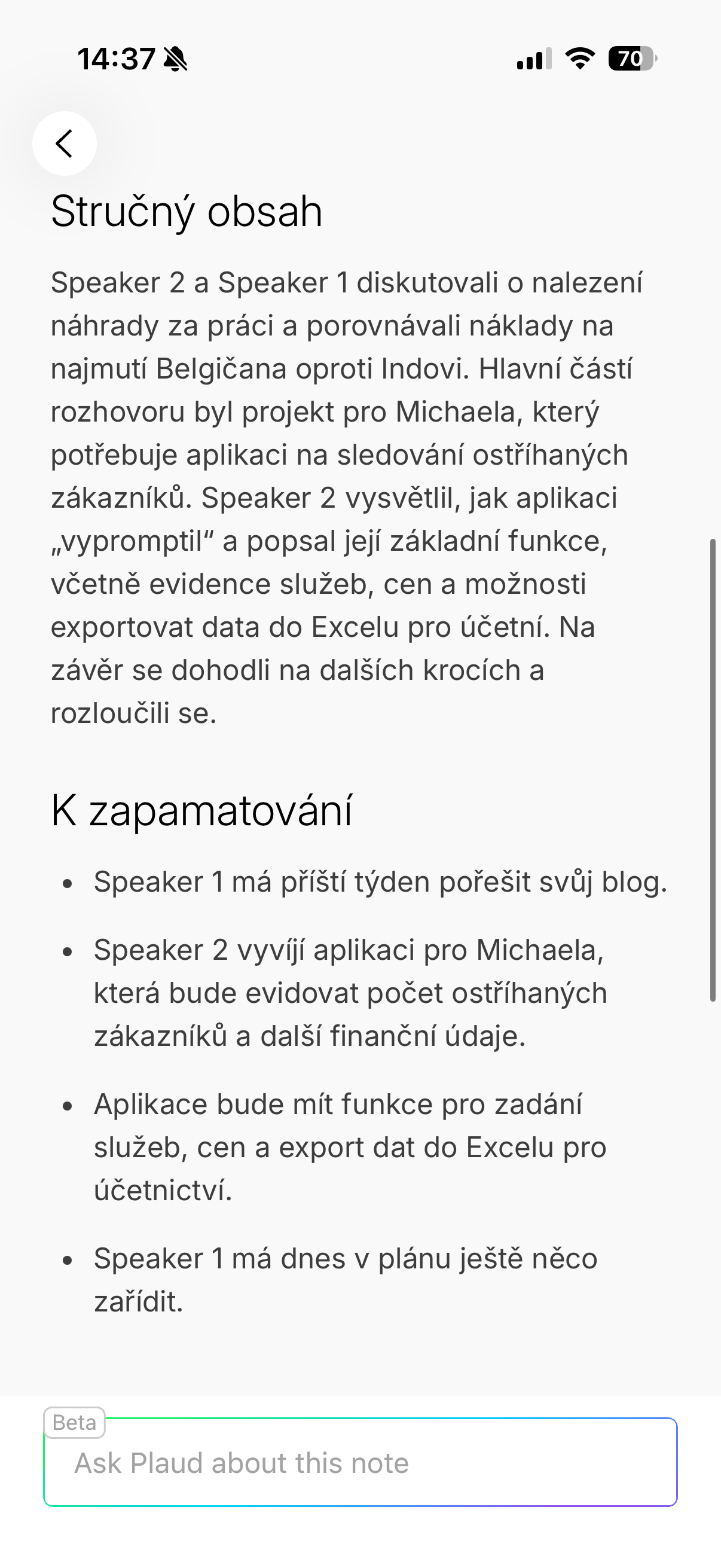 Upřímně řečeno, během používání se mi několikrát stalo, že jsem si až zpětně uvědomil, jak moc se tahle funkce hodí. Typicky u delších pracovních hovorů, kde padá spousta detailů, termínů a nápadů se tato funkce hodí opravdu dost. Místo horečného zapisování se totiž můžete soustředit na samotný rozhovor s vědomím, že se k němu kdykoliv vrátíte a navíc dostanete automatický přepis i souhrn. A když budu úplně upřímný, záznam lze brát do jisté míry i jako jakousi berličku ve chvíli, kdy už nejste schopni úplně udržet pozornost, což se mě osobně stává zejména při podvečerních hovorech docela často. Po celodenní práci je totiž soustředění už složité a právě v tuto chvíli přichází na scénu genialita Plaudu.