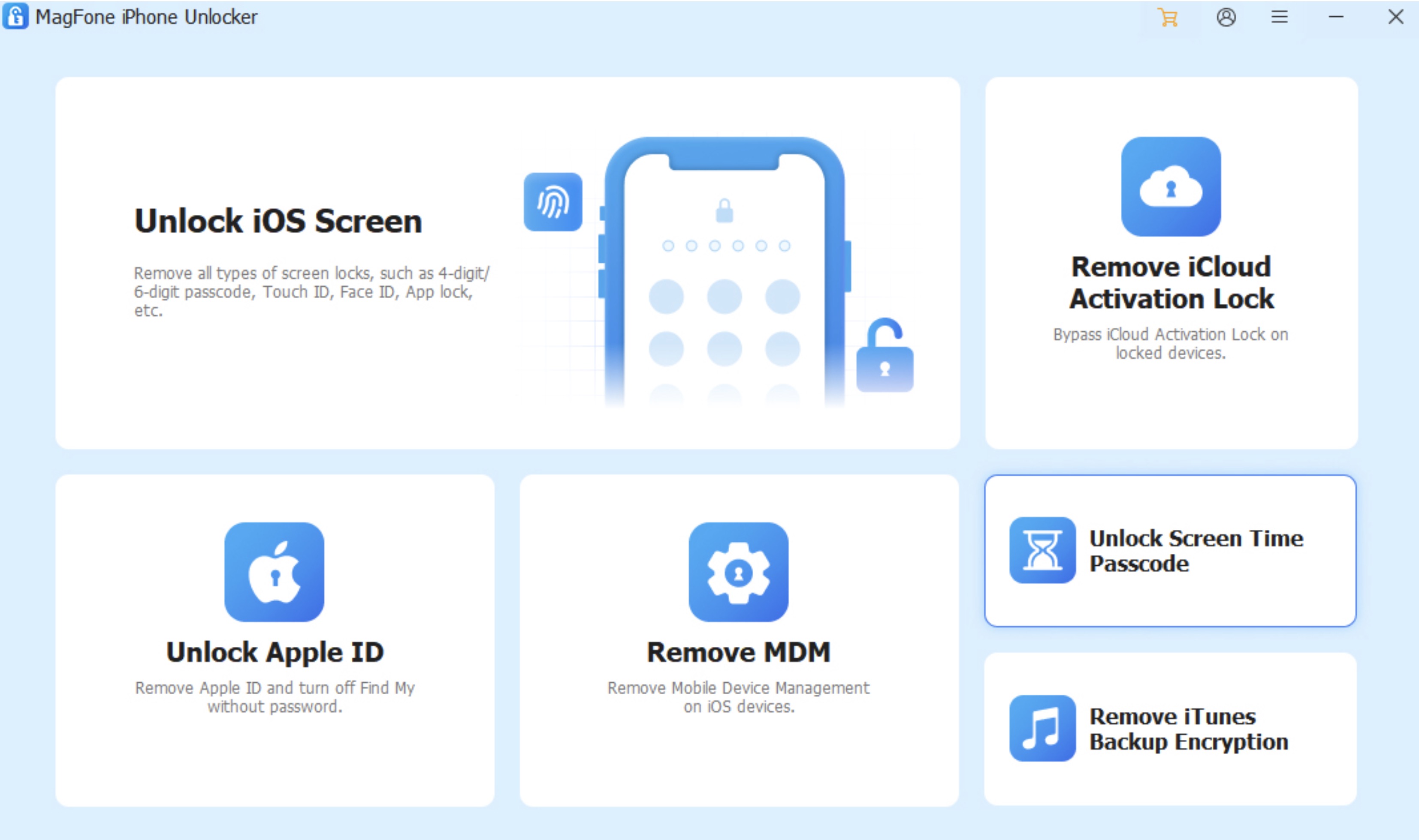 Níže je uveden jasný, na uživatele zaměřený přehled toho, jak se MagFone iPhone Unlocker obvykle používá k obejití zámků souvisejících s iCloud. Tato část je informativní a má uživatelům pomoci porozumět procesu předtím, než se rozhodnou, zda je nástroj vhodný pro jejich situaci. Zde jsou kroky, jak odblokovat iPhone pomocí MagFone iPhone Unlocker.