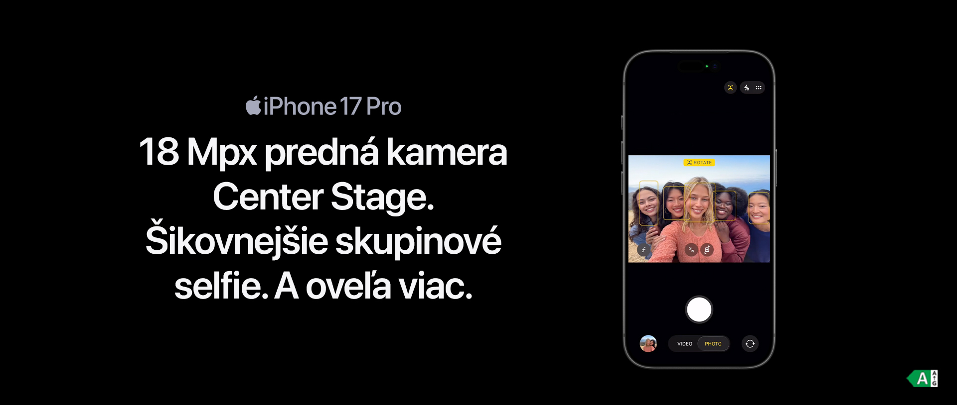 Jednoliata konštrukcia umožnila zväčšiť batériu tak, že iPhone 17 Pro zvládne až 33 hodín prehrávania videa. A keď je potrebné rýchlo dobiť energiu, nabitie na 50 % za približne 20 minút ťa udrží v pohybe bez zbytočného čakania.