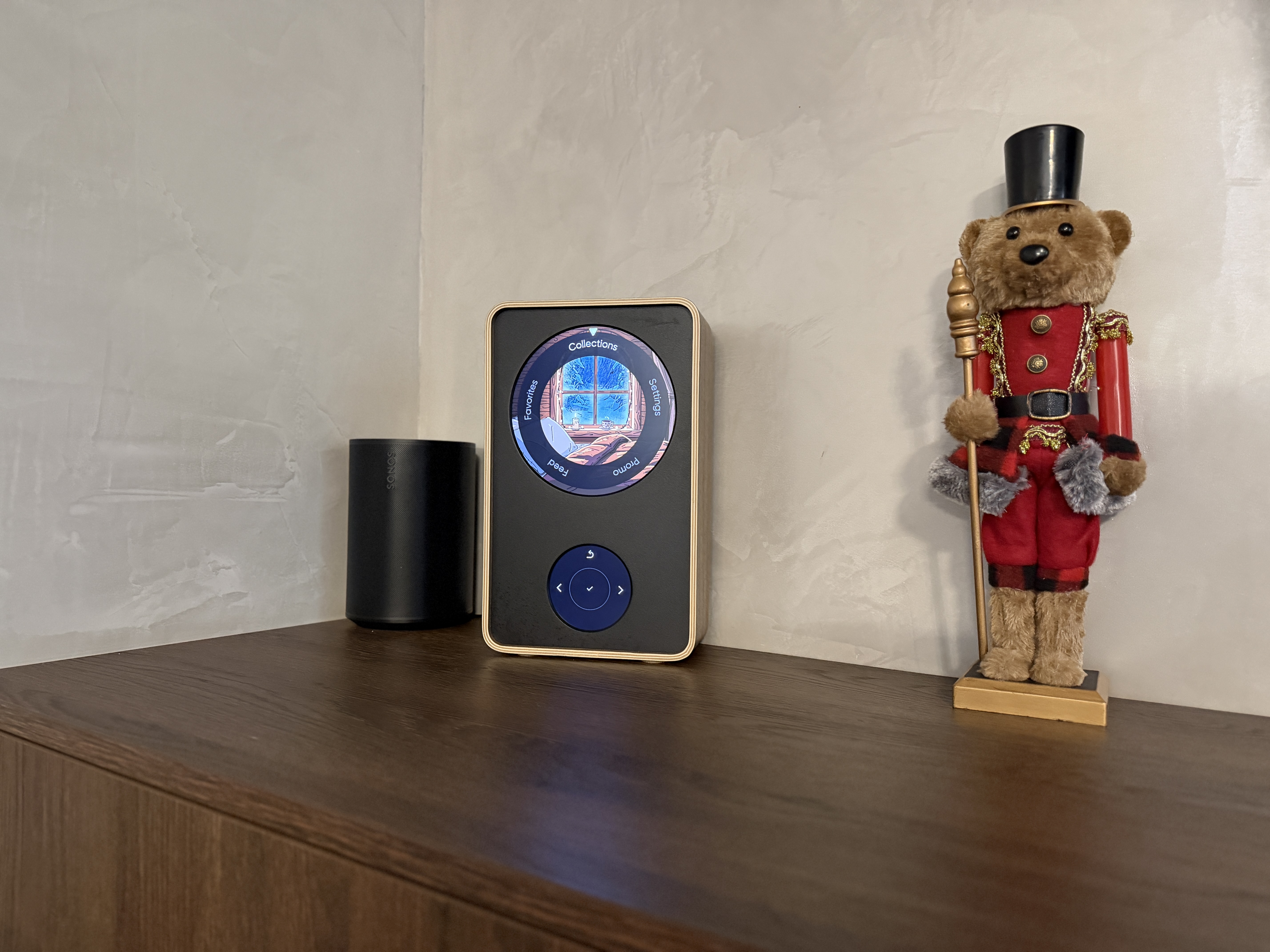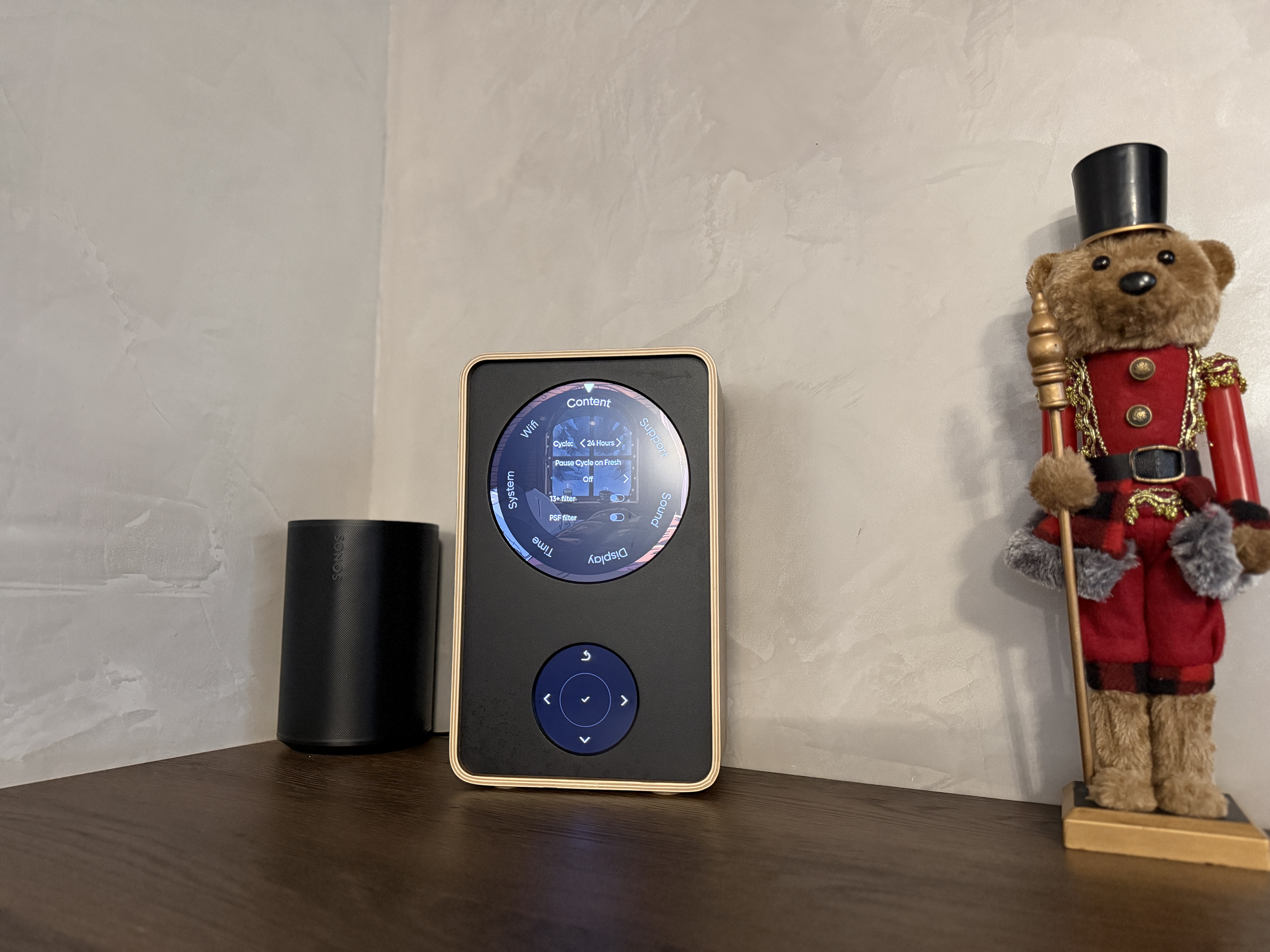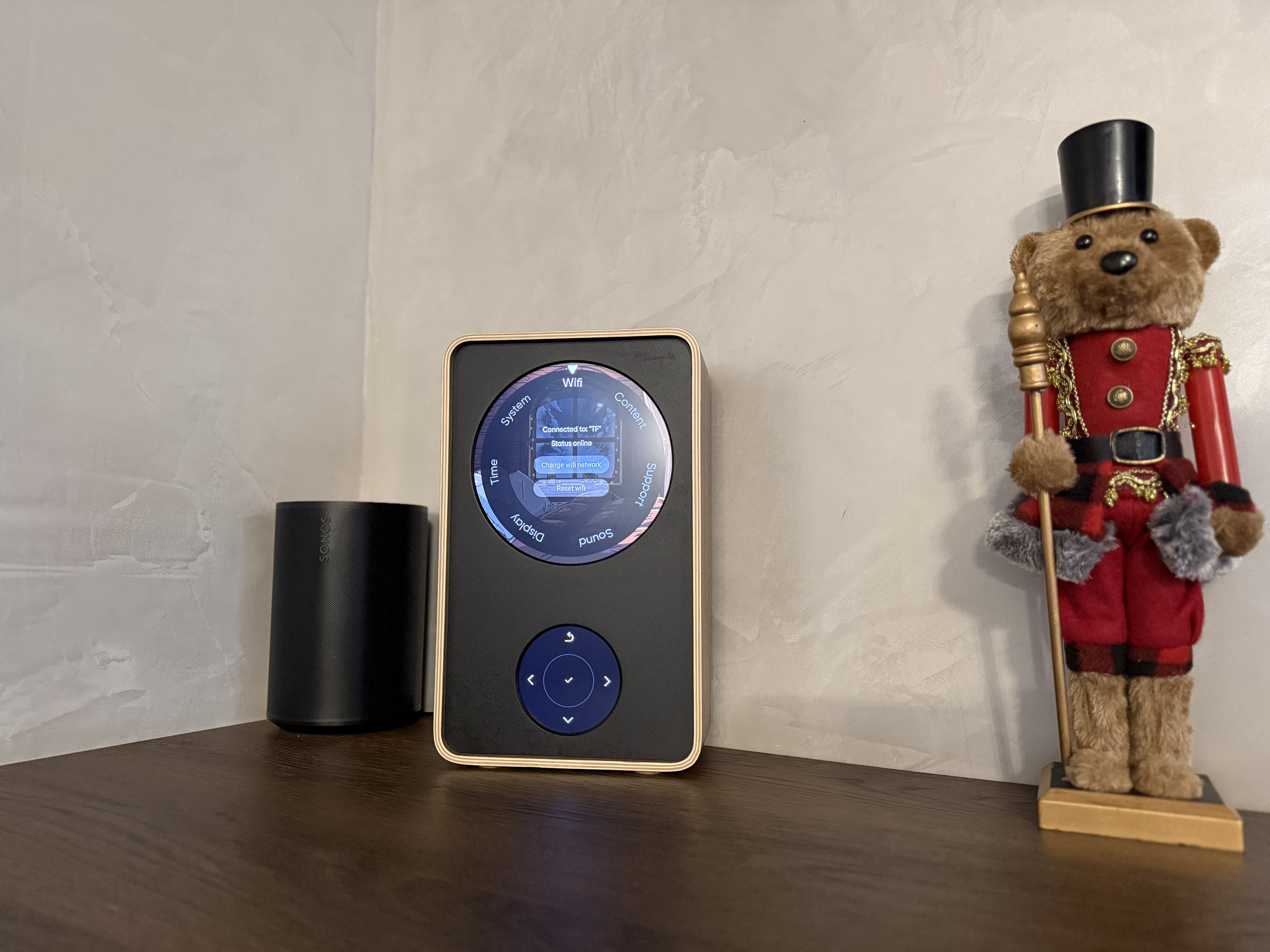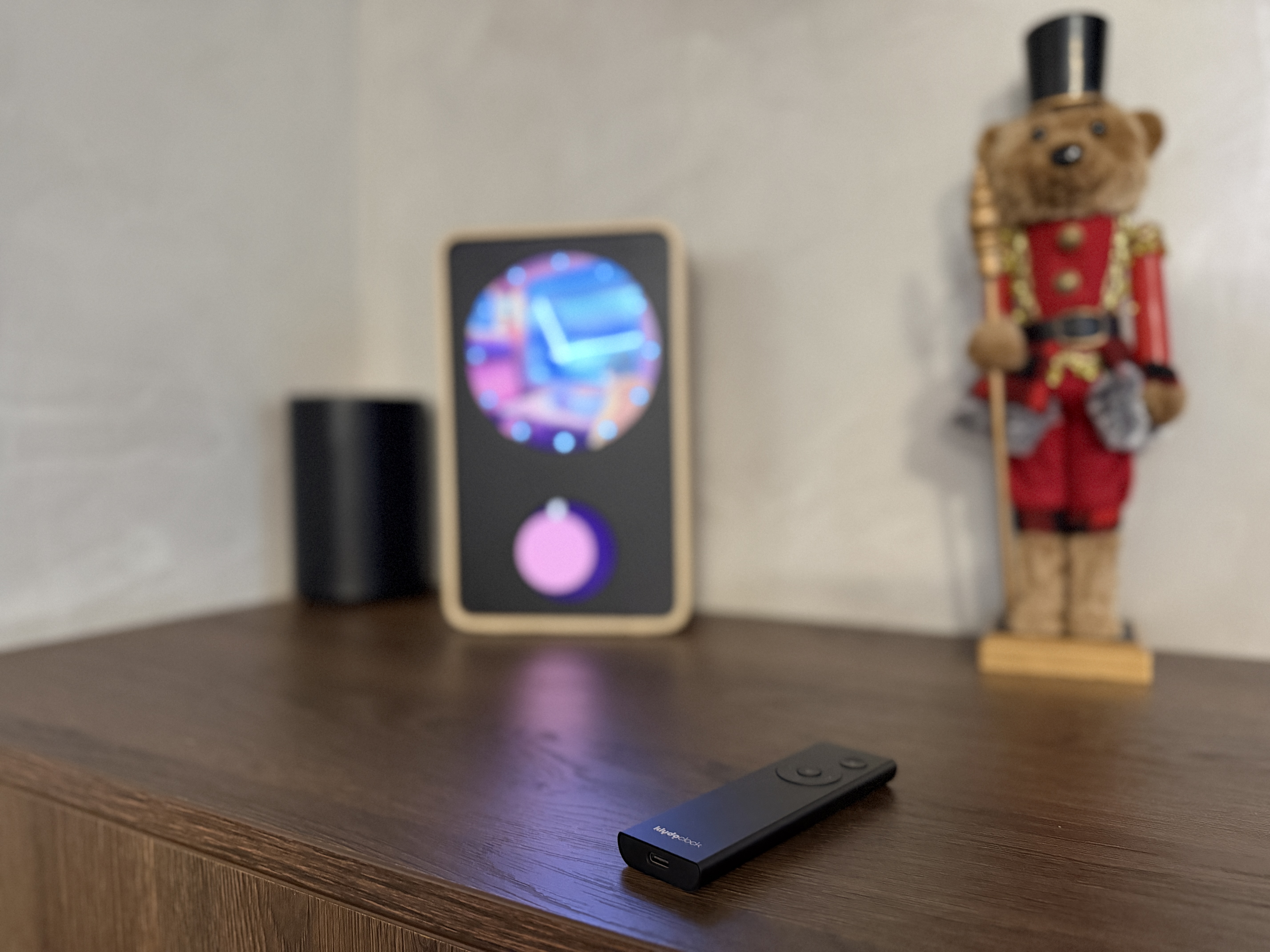 Samotné hodiny jsou 30 centimetrů vysoké a 18 centimetrů široké, díky čemuž se ideálně hodí na poličku nebo stůl, případně je můžete přimontovat na zeď. Tělo je tvořeno ohýbanou překližkou a lakovaným hliníkem a o napájení se postará klasický USB-C adaptér s napětím 12 V, který je součástí balení. Kromě toho v balení naleznete také dálkový ovladač, který tvarem připomíná ten od Apple TV, ovšem zpracování a design jsou zde ještě na vyšší úrovni. Je opravdu vidět, že se jedná v každém ohledu o designový prvek a výrobce si dal extrémně záležet na každém detailu. Tomu odpovídá i kvalita samotných displejů.