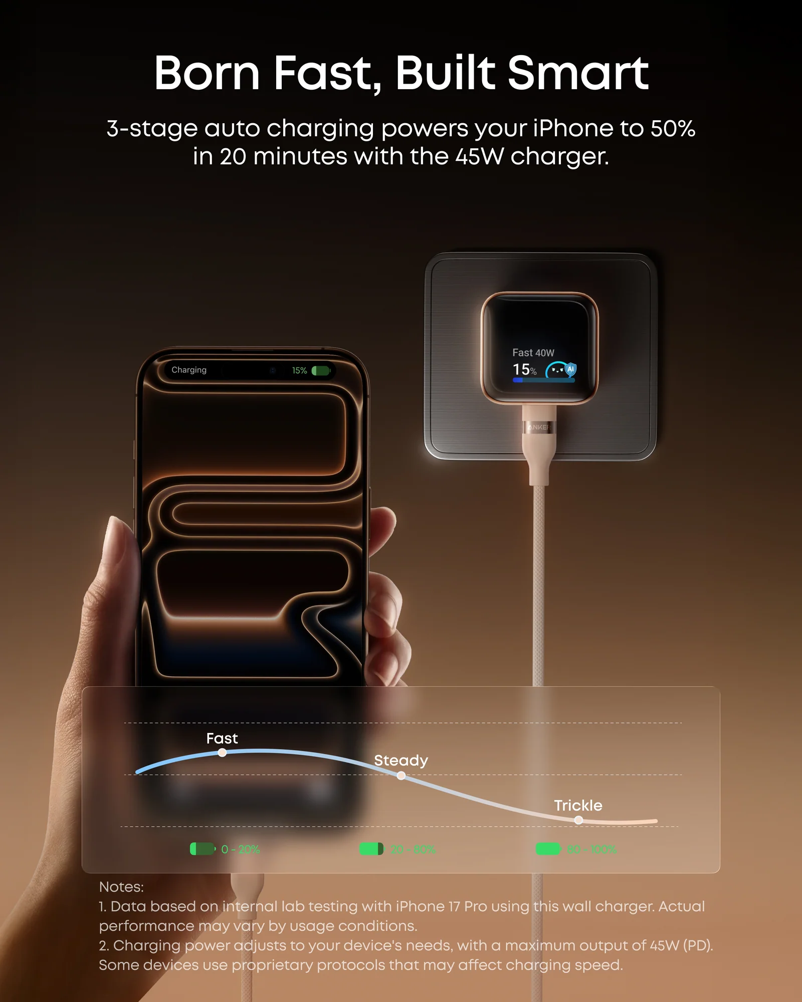 V praxi to funguje tak, že nabíječka průběžně vyhodnocuje chování připojeného zařízení. Jakmile není potřeba plný výkon, začne ho inteligentně snižovat. Typicky při nabíjení přes noc nebo ve chvíli, kdy se baterie blíží vyšším hodnotám. Výsledkem je nižší zahřívání telefonu, menší stres pro baterii a dlouhodobě pomalejší degradace kapacity. To je něco, co většina běžných adaptérů vůbec neřeší.