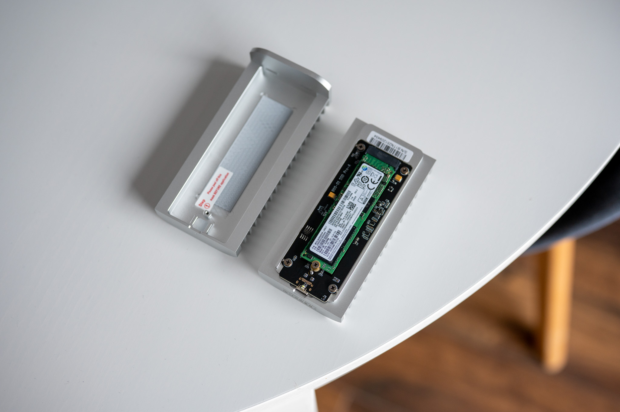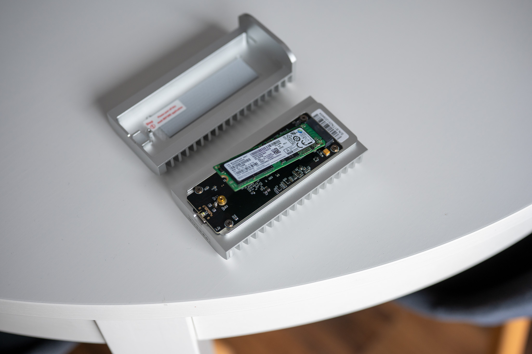 Zpracování je přesně takové, jaké od profesionálního příslušenství očekávám. Celohliníkové tělo nepůsobí jen bytelně, ale hlavně funkčně. Konstrukce s výraznými žebry není designová manýra, ale čistě praktická záležitost. Při delší práci, kdy disk jede naplno, je cítit, že se tělo zahřívá rovnoměrně, nikde nic nepálí a výkon nijak nekolísá. Osobně mám s externími boxy špatnou zkušenost právě v tomhle ohledu, kdy po pár minutách přijde zpomalení. Tady se nic takového neděje.