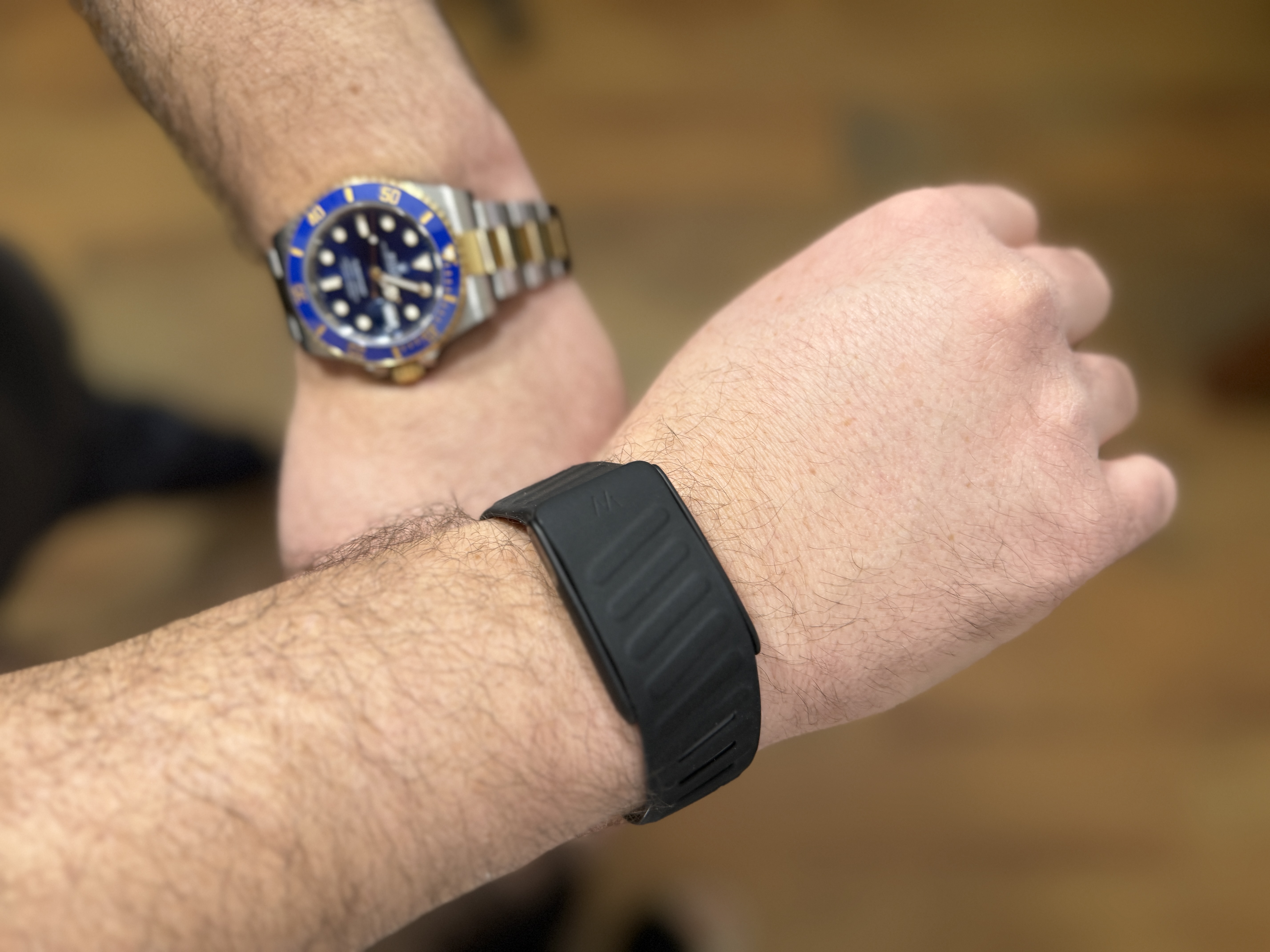 Tím pro mě zcela zásadním důvodem, proč jsem sáhl po WHOOP, je absence jakéhokoli displeje, LED diod nebo čehokoli, co by vás jakkoli rušilo. Nosím klasické mechanické hodinky a protože si nechci připadat jako blázen, který má dvoje hodinky, je Whoop ideální řešení. Na pravém zápěstí mám náramek, který není nijak výrazný ani rušivý, a na levém zápěstí mohu nosit hodinky tak, jak jsme zvyklí. Samotný náramek si můžete pořídit ve spoustě barevných i materiálových variant a je jen na vás, po čem sáhnete. Samotný Whoop, tedy zařízení se senzory, je opravdu velmi malý a po pár dnech nošení jej na zápěstí v podstatě ani nevnímáte. Samozřejmě by bylo fajn, kdyby byl ještě menší, ale nemůžeme mít všechno.