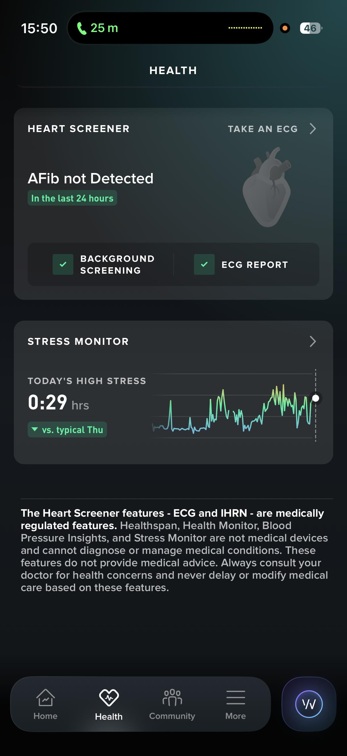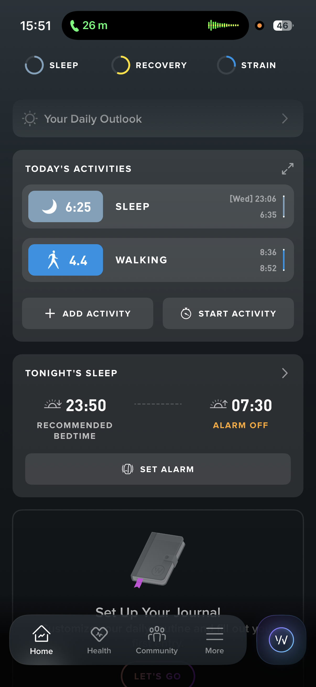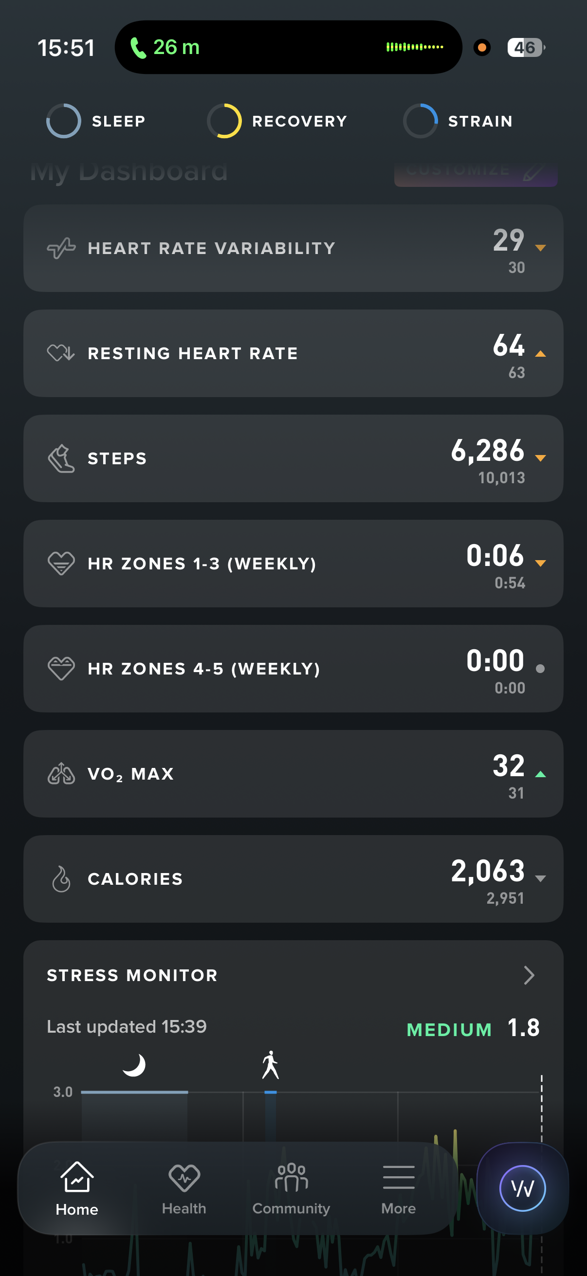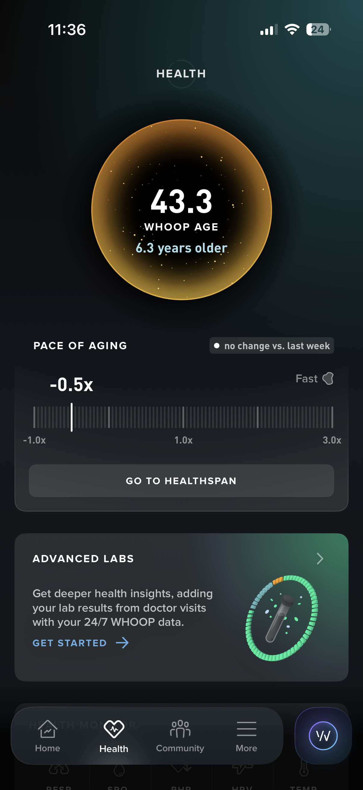 Za oněch 399 € mám k dispozici vše, co Whoop umí. To zahrnuje měření EKG, upozornění na nepravidelný srdeční rytmus, denní odhad krevního tlaku, klidovou tepovou frekvenci, HRV, frekvenci tepu během celého dne, respirační frekvenci, teplotu kůže, délku spánku, spánkové fáze, Sleep Score, Recovery Score, doporučenou potřebu spánku, denní zátěž (Strain), automatickou detekci aktivit, VO₂ max, kardio zátěž, denní připravenost k výkonu, Healthspan (biologický věk), Pace of Aging neboli rychlost stárnutí a trendy jejího vývoje. Důležité je si uvědomit, že veškerá data jsou sbírána 24/7/365. Pokud navíc Whoop představí během vašeho předplatného nějaký nový lepší náramek, tak jej získáte zdarma, pokud máte nejvyšší předplatné, pokud nižší, získáte možnost výhodně přejít na vyšší členství.