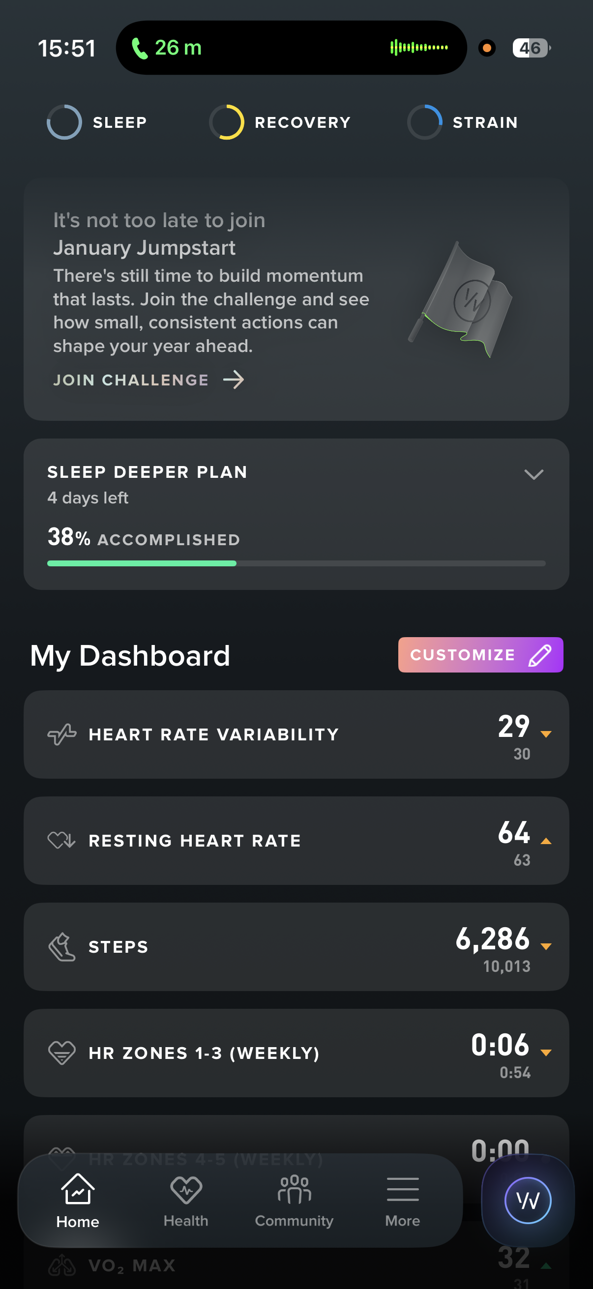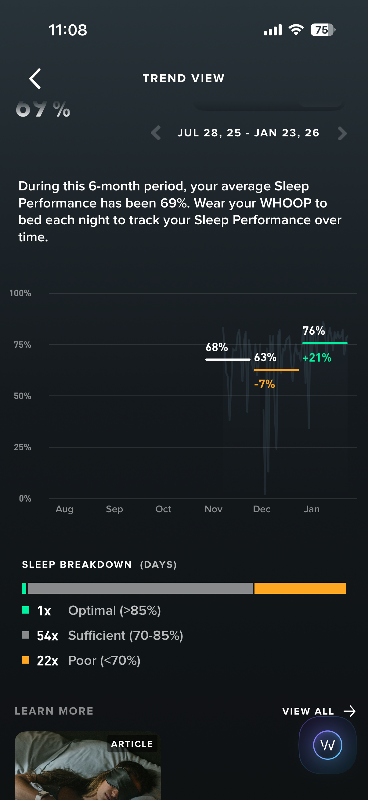 Na změnu dat totiž nemají vliv jen základní věci, jako že když začnete každý den chodit hodinu se psem, pravděpodobně se vám po měsíci zlepší okysličení, sníží se klidový tep a také nějaké to kilo zhubnete. Whoop vám tato data samozřejmě změří, ale je na vás, abyste je dali do nějakých rámců, například že jste minulý měsíc pili kávu v 18:00 a nyní ji pijete ve 14:00 a právě na základě toho se vám zlepšil spánek.