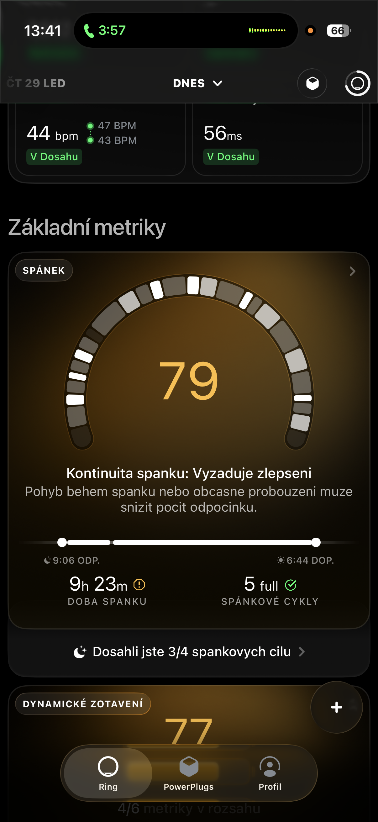 Jak můžete vidět, rozkol spánkového skóre, které vám ukáže Apple Zdraví a aplikace Ultrahuman, je naprosto brutální a nebojím se říci, že v případě Applu jde o dost zkreslená data. Když si totiž zpětně zrekapituluji posledních pár nocí, které mi Apple Zdraví vykresluje jako velmi dobré, ne-li dokonalé, absolutně jsem se po nich ráno takto kvalitně vyspaný necítil. A to jednak proto, že se dcerce začínají pomaličku prořezávat zoubky a tedy se docela často budí a jednak proto, že momentálně zápolím s nachlazením, které spánek také nepříjemně poznamenává kvůli rýmě, bolesti v krku a celkové slabosti. Daleko smysluplnější je tedy za mě skóre z Ultrahuman.