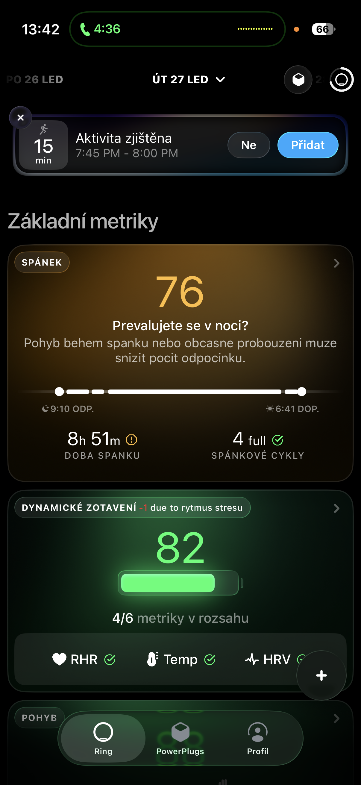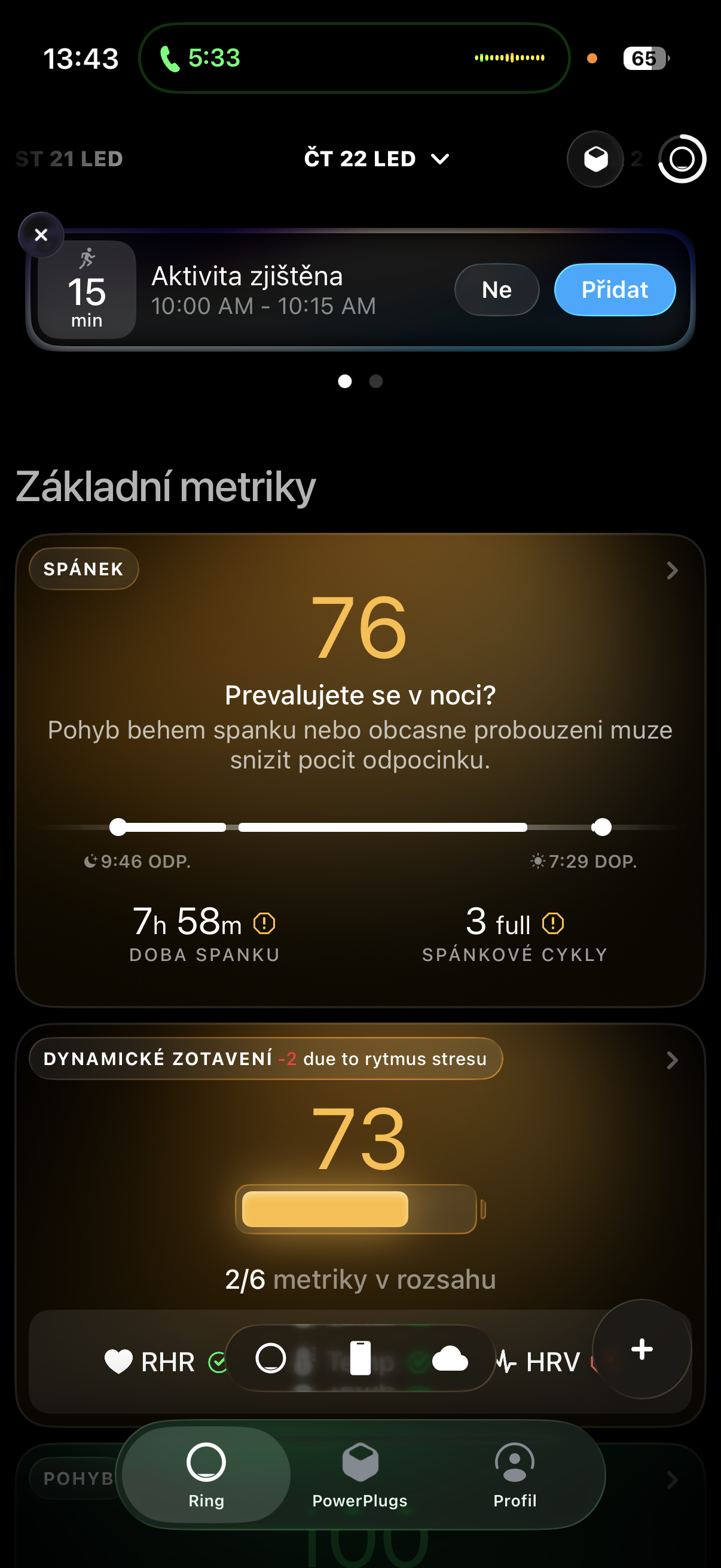 Neřešme teď to, zda jsou data z prstenu více či méně přesná oproti Apple Watch – výstup jsou totiž vždy „surová“ data, která jsou u obou hardwarů zpracována aplikací a následně interpretována tak, aby jim byl schopen uživatel porozumět. A zde přichází alespoň pro mě osobně opravdu velké překvapení, na které ostatně můžete sami mrknout v galerii níže.